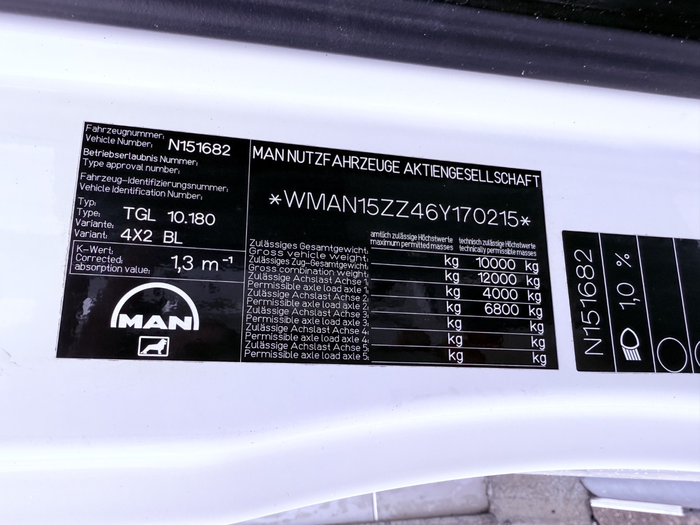 Totalvægt: 10000 kg.