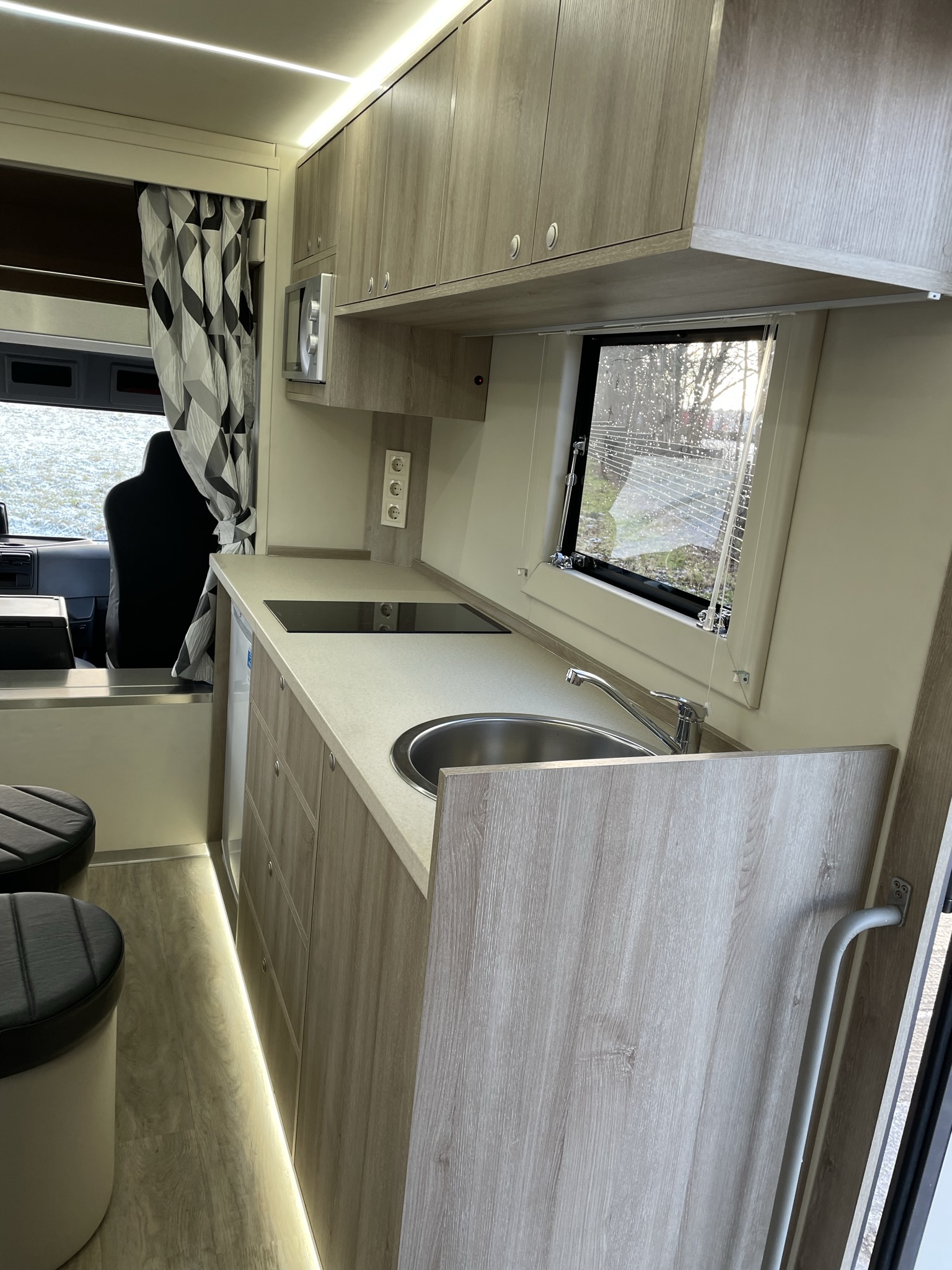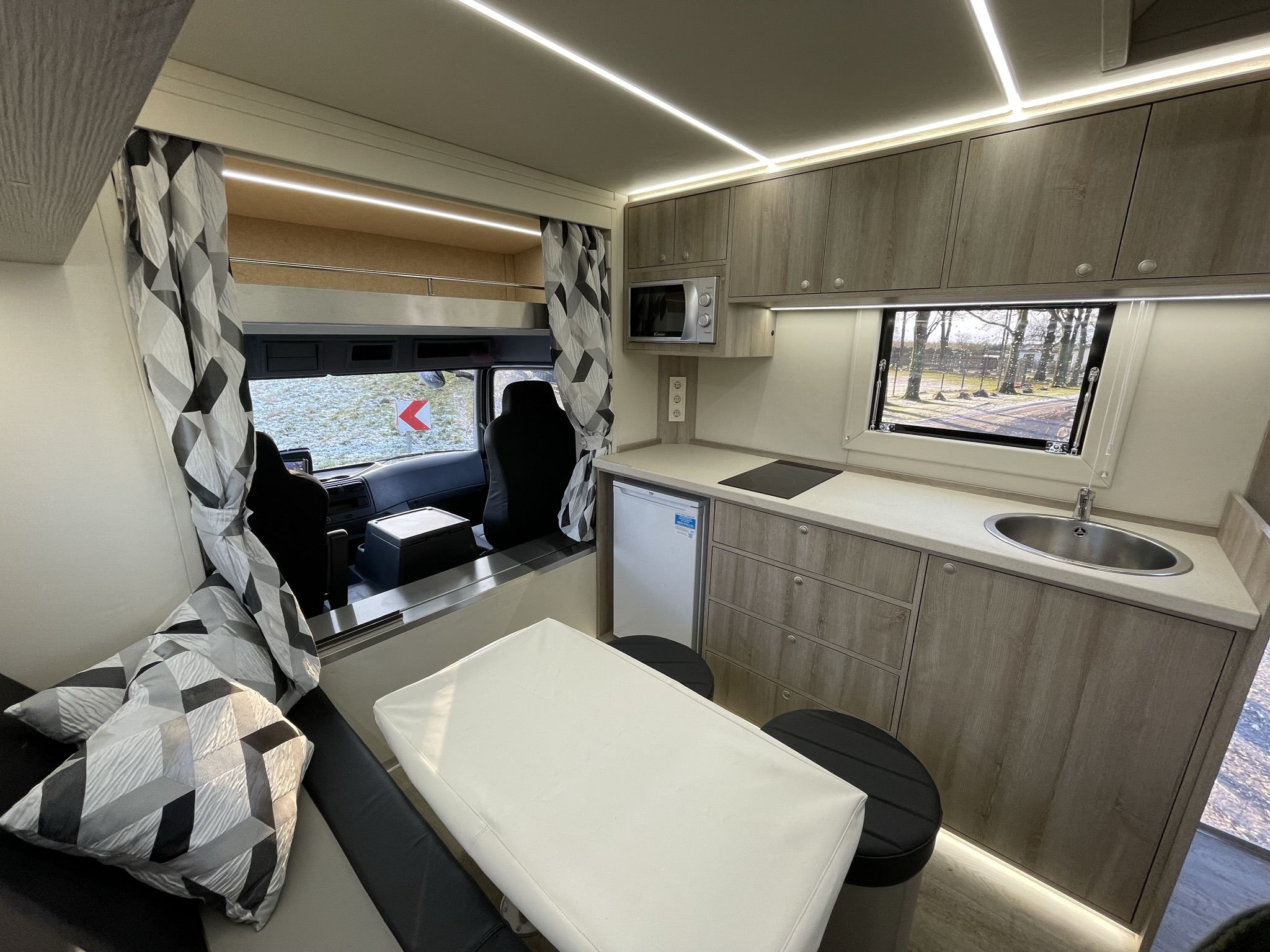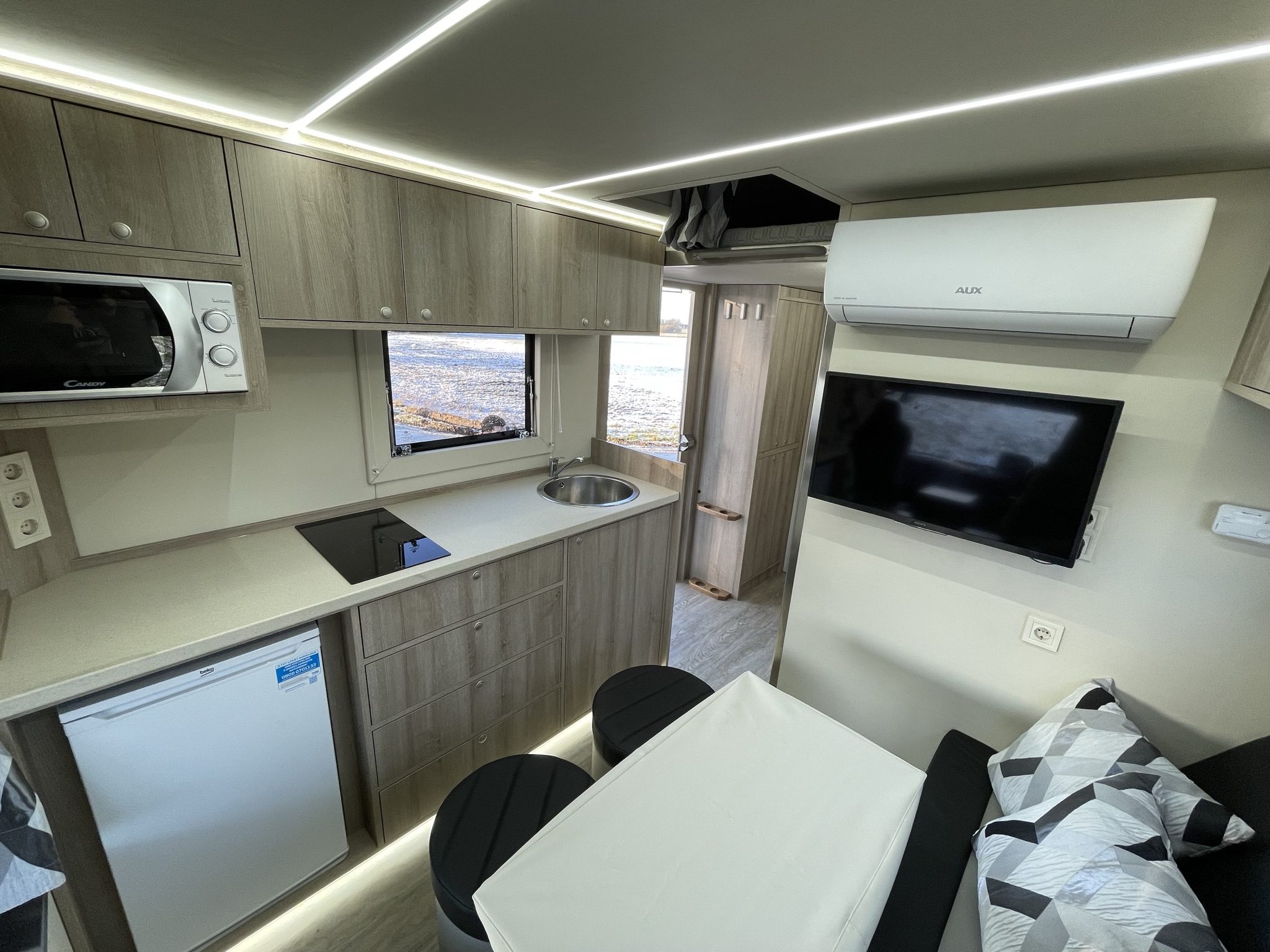 Luksus living med komplet køkken, sofagruppe, TV og klima anlæg