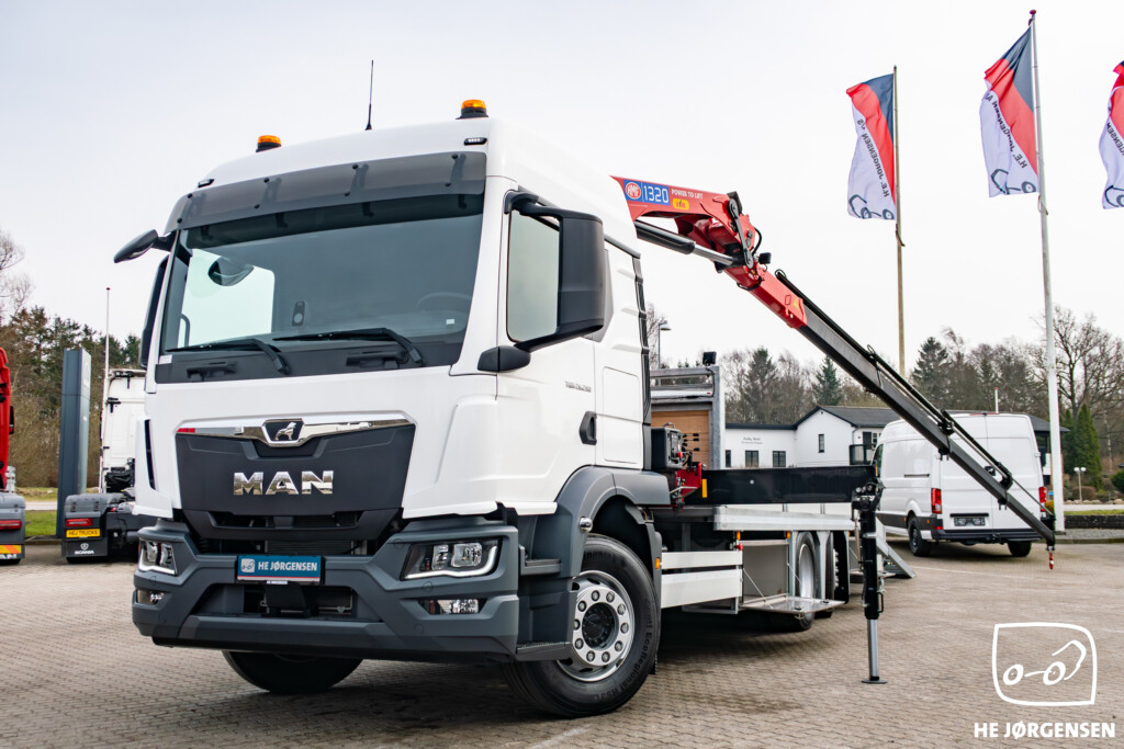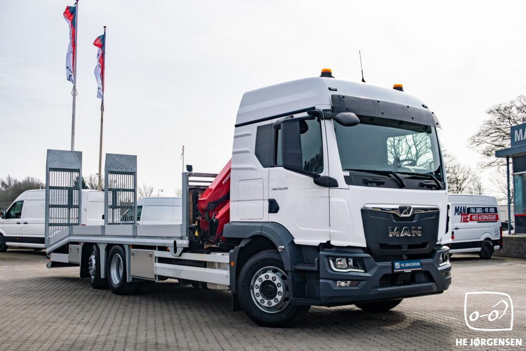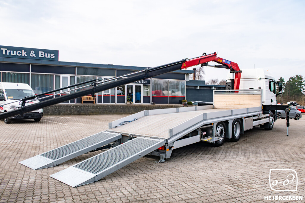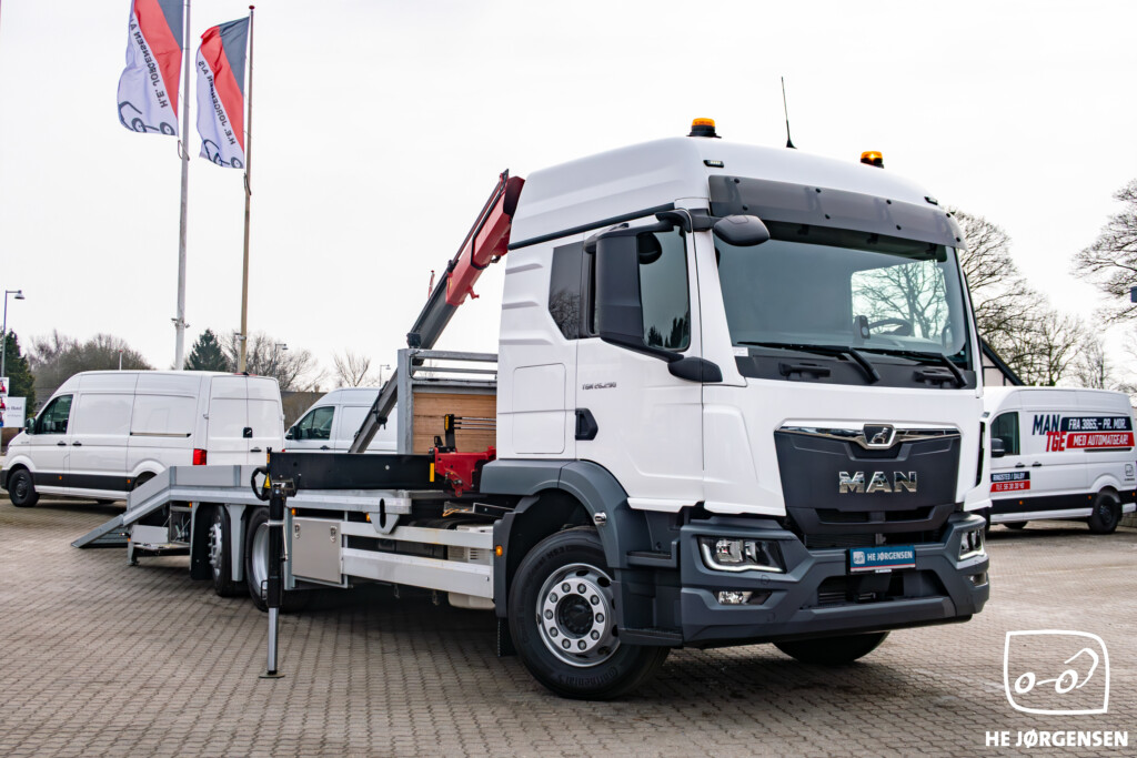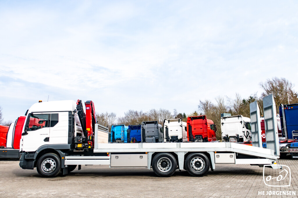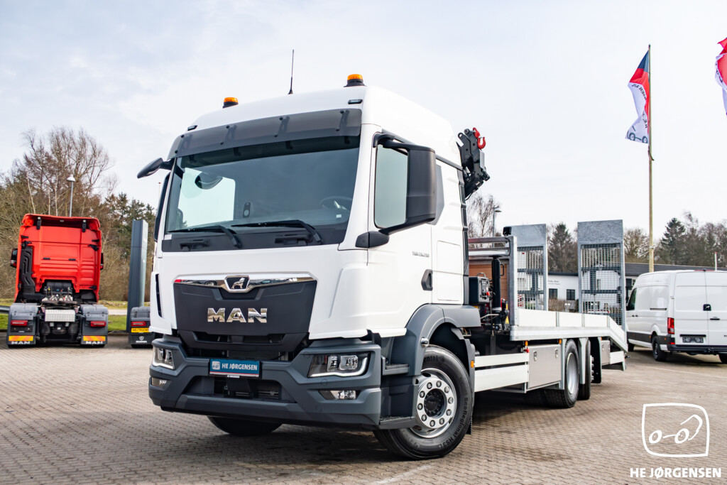 Fabriksny MAN TGM 26.290 6x2-4 BL CH med fejeblad, hydrauliske ramper og HMF 1320-K4 kran