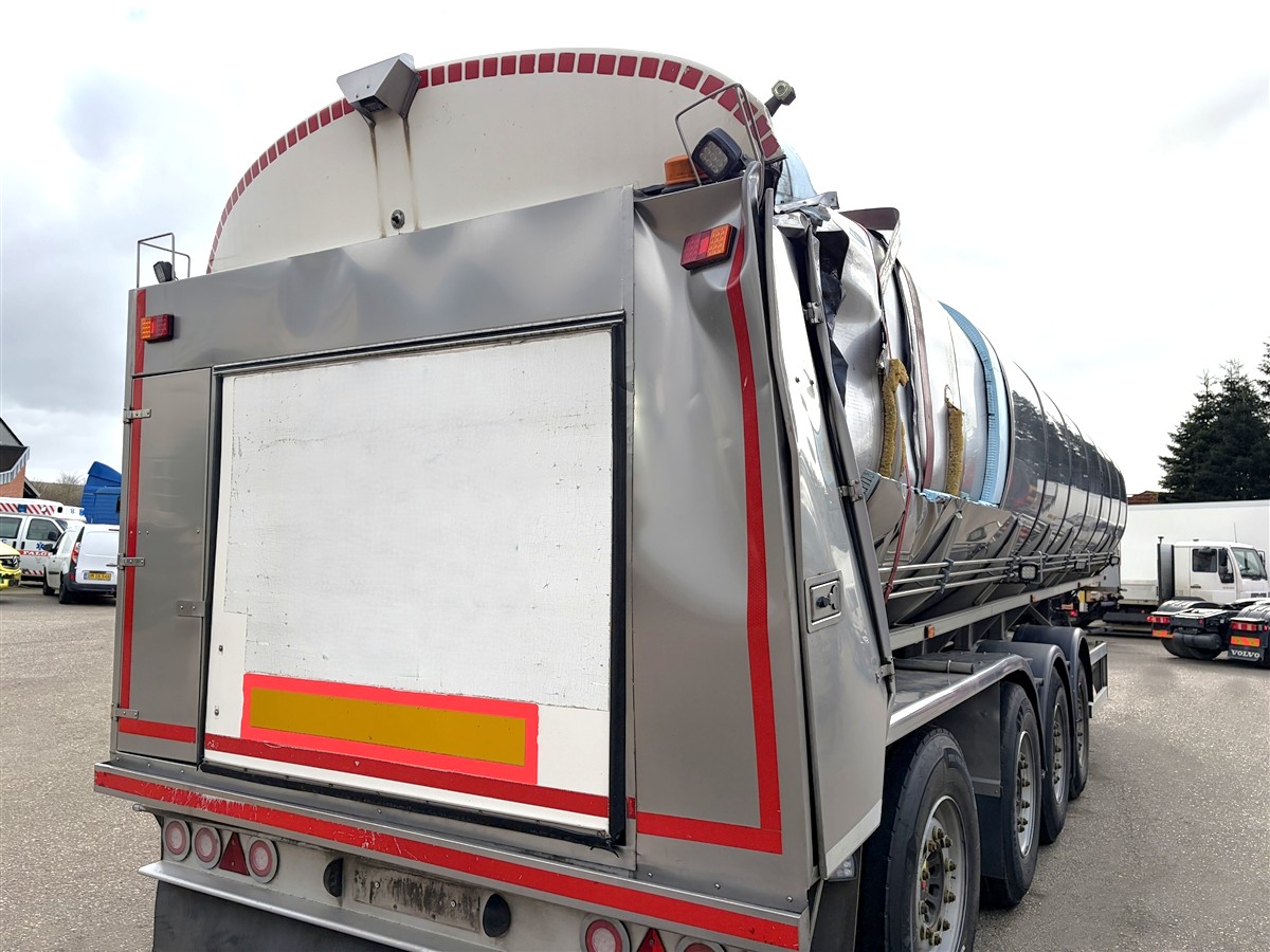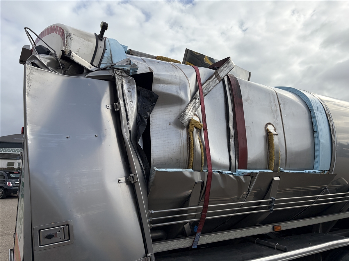 Skadet mælke tank trailer