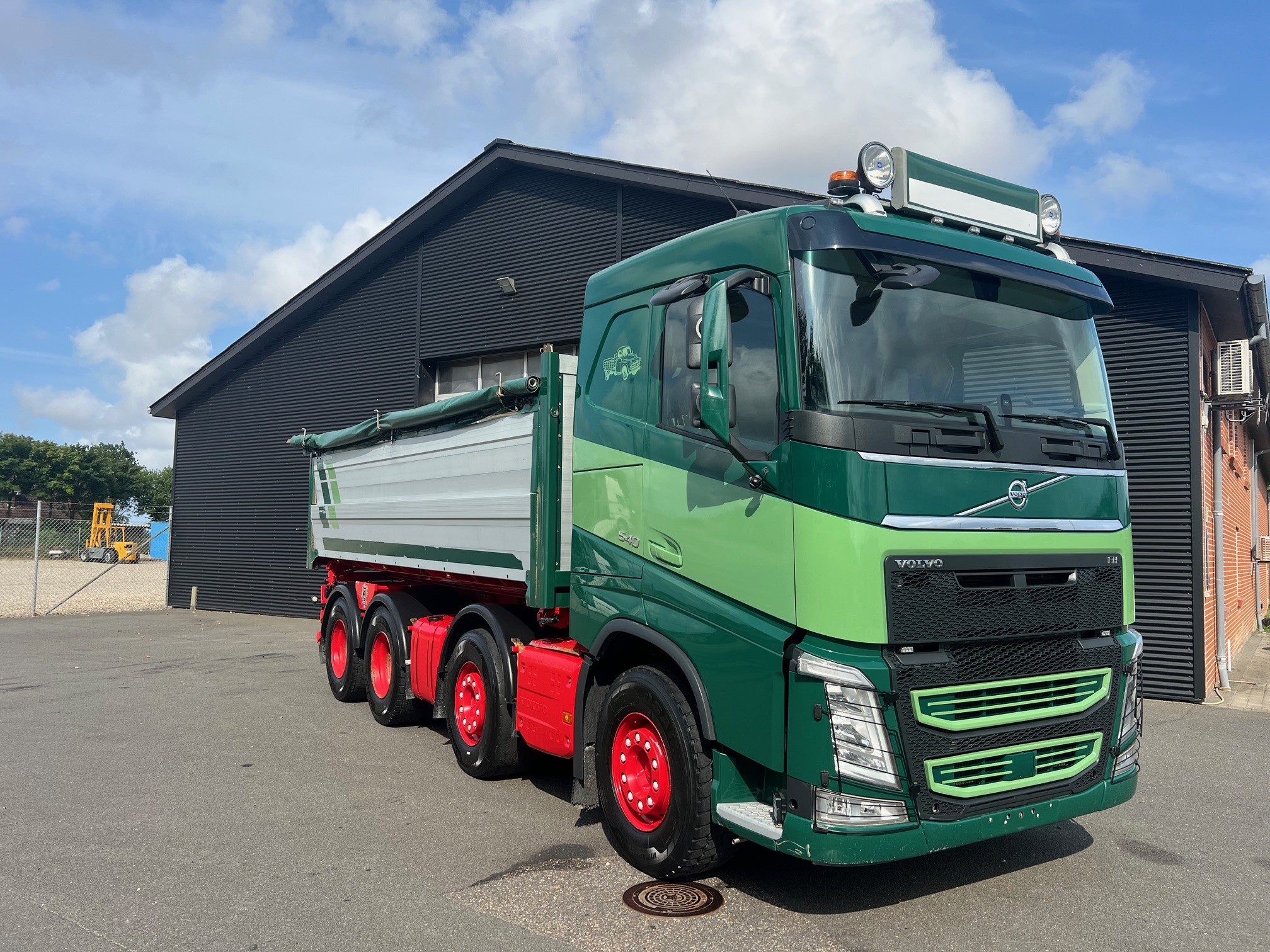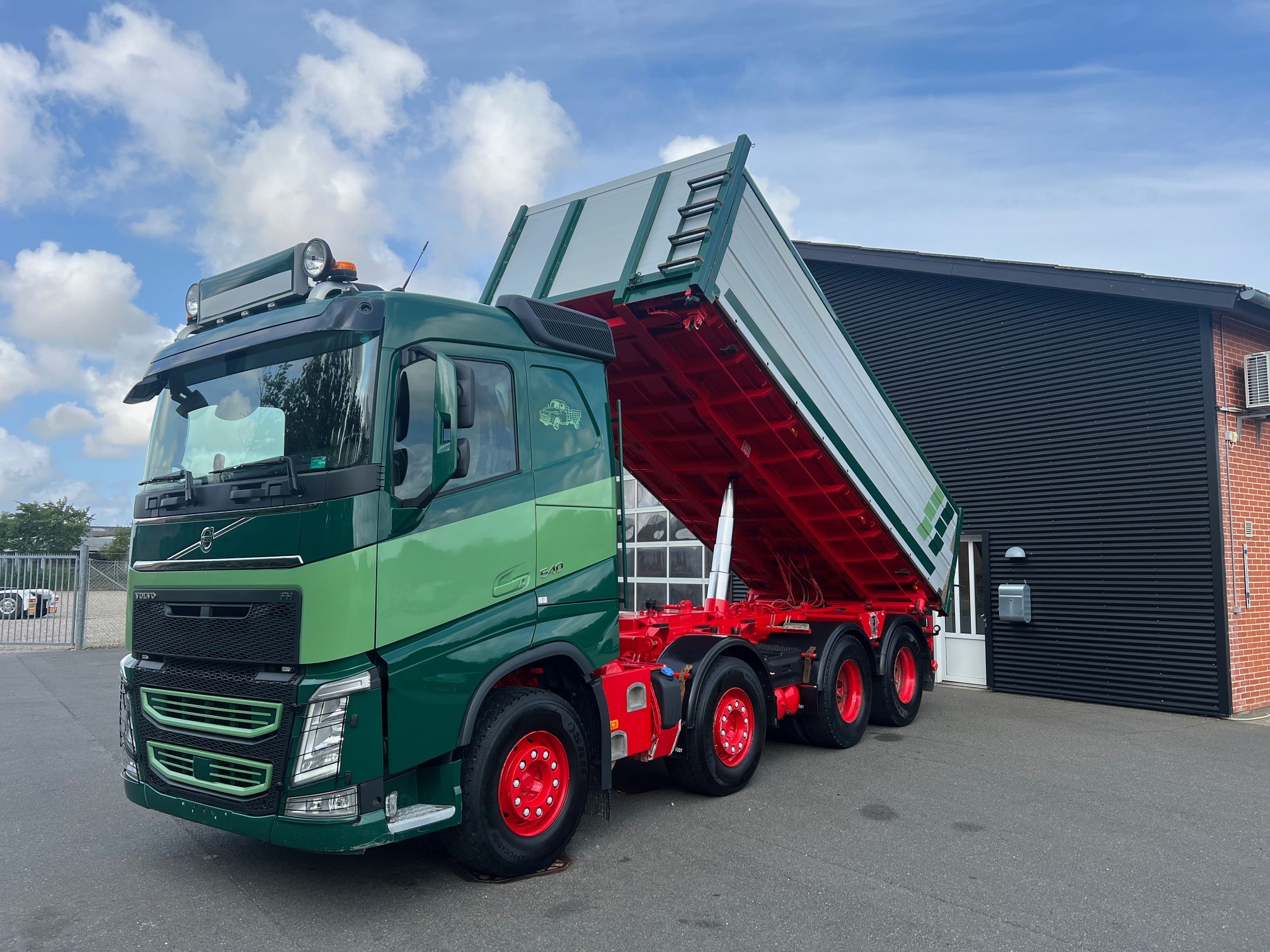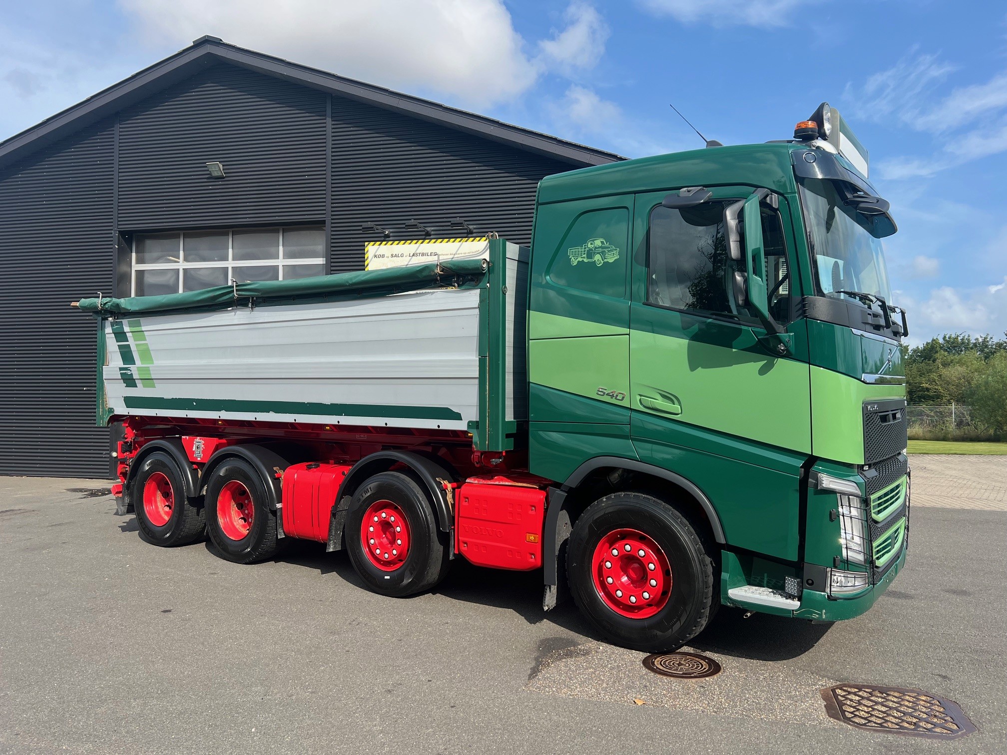 Meget velholdt tipvogn med Nopa tippelad med pendel i begge sider, luftstyret VBG kærretræk med olie ud, 8X4 tandem træk med løfte bogie, fuld luftaffjedret, Lysskilt, arb. lys, projektører, I-shift med anlægssoftware, VEB+ motorbremse, Volvo Dynamic Steering, LED, drivning Plus pakke, load indikator, læderrat og luksus lædersæde, adaptiv fartpilot, Navigation, Kameraer, oliefyr, køleskab, klima, regnsensor, fjernbetjent centrallås og masser af udstyr.. skal ses.