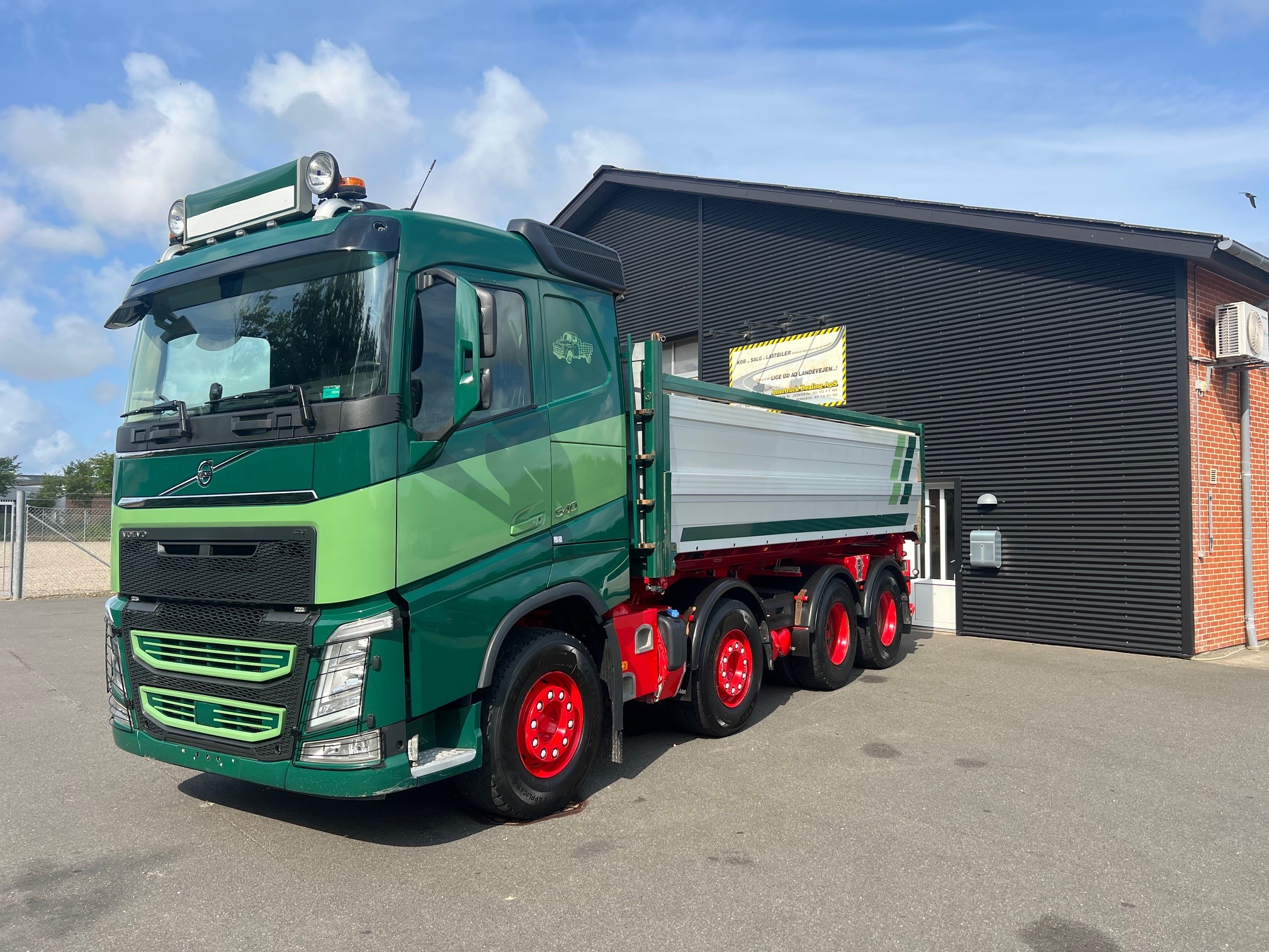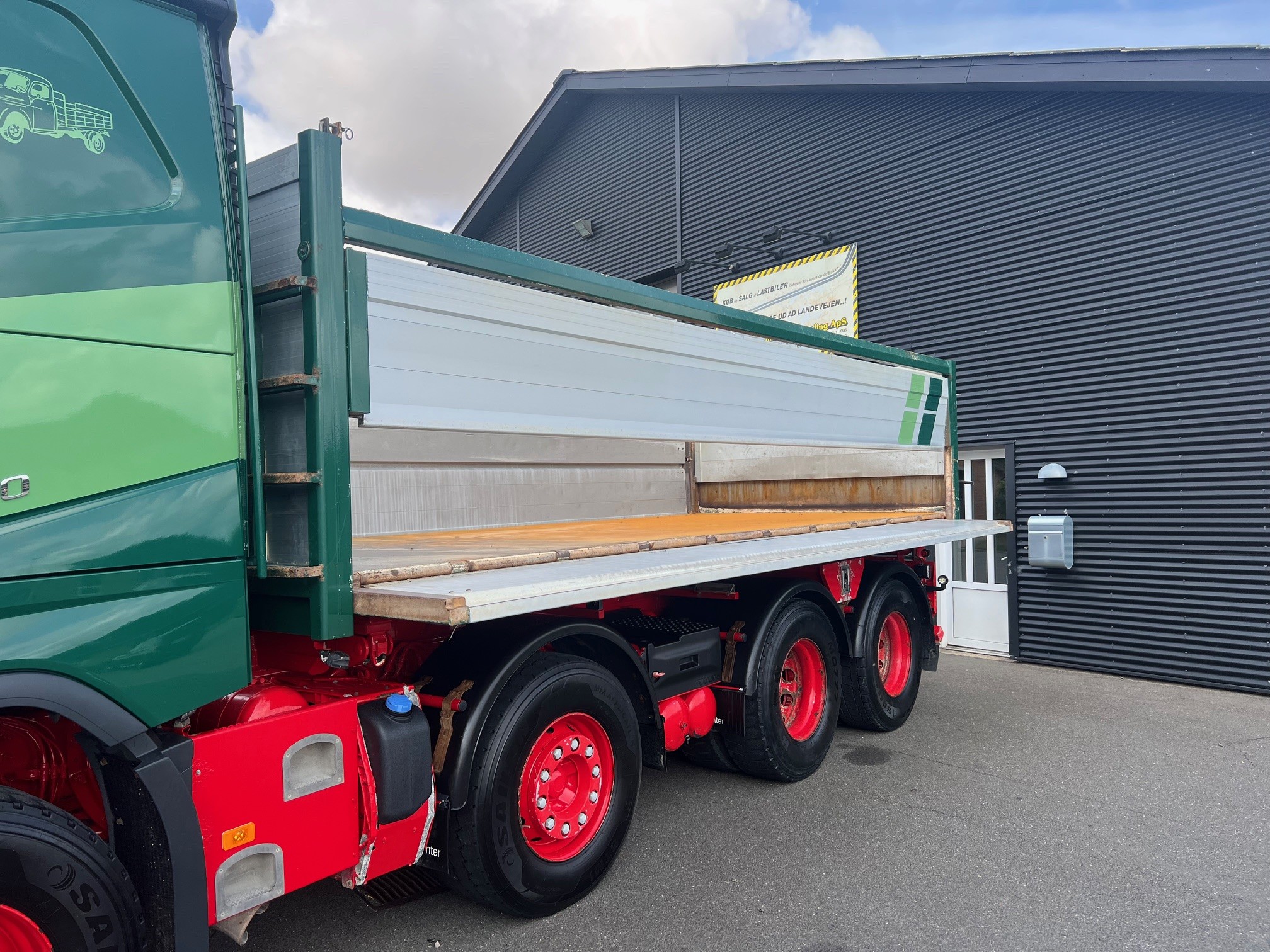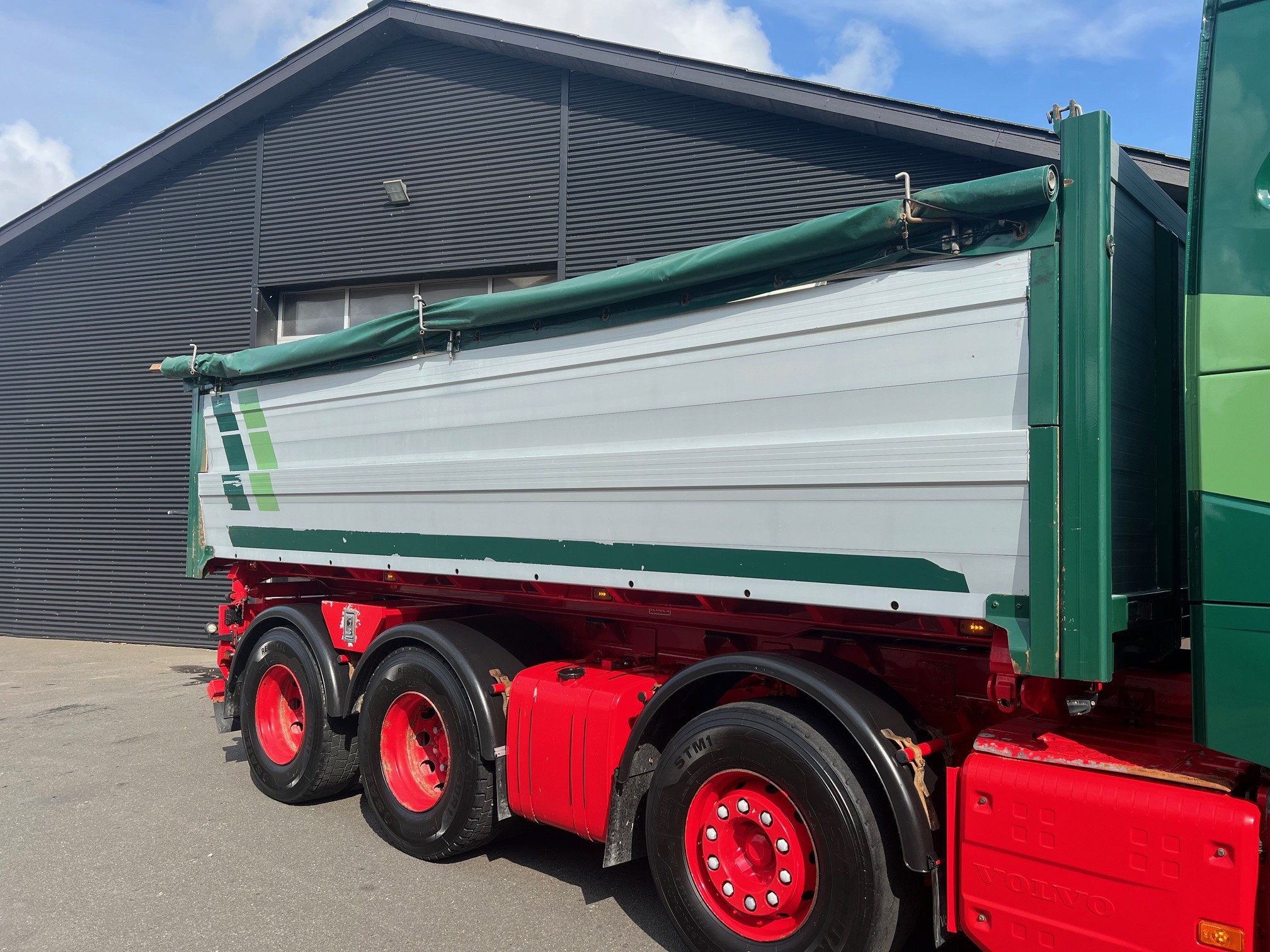Meget velholdt tipvogn med Nopa tippelad med pendel i begge sider, luftstyret VBG kærretræk med olie ud, 8X4 tandem træk med løfte bogie, fuld luftaffjedret, Lysskilt, arb. lys, projektører, I-shift med anlægssoftware, VEB+ motorbremse, Volvo Dynamic Steering, LED, drivning Plus pakke, load indikator, læderrat og luksus lædersæde, adaptiv fartpilot, Navigation, Kameraer, oliefyr, køleskab, klima, regnsensor, fjernbetjent centrallås og masser af udstyr.. skal ses.