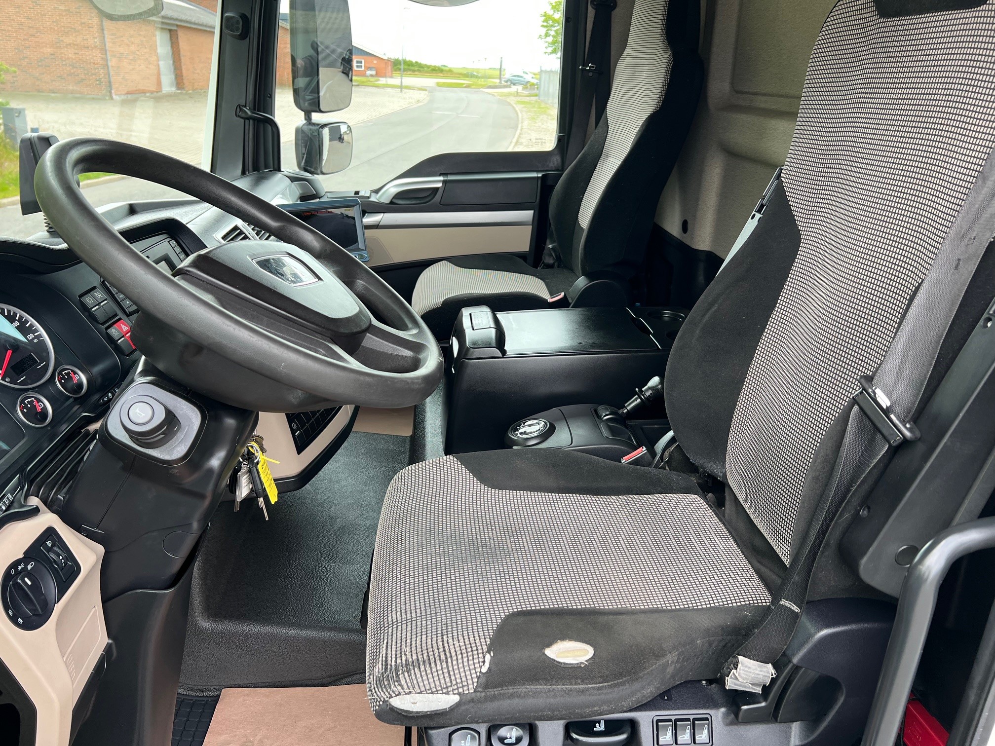 Miljøzonegodkendt Euro 6 - her kan du køre uden vejafgift - med spoiler, aut. gear, bak- og sidekamera, luftafjedret - med 8,25 m dansk opbygget alukasse og 2.000 kg. lift med stor aluplade og fjernbetjening. 1-ejers vogn med fuld service historik.