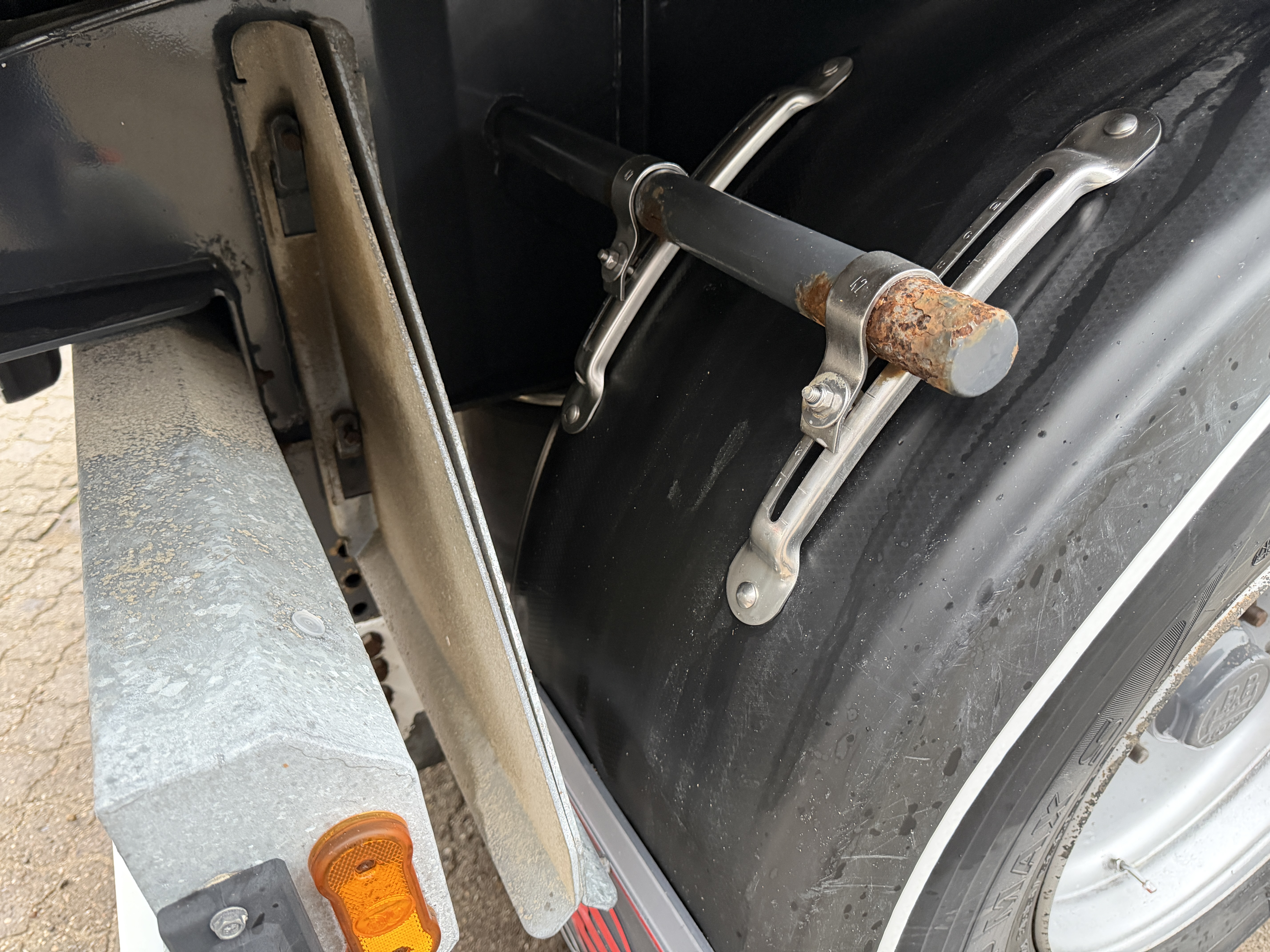 De opbevares på siden af chassiset, når de ikke er monteret bagpå.