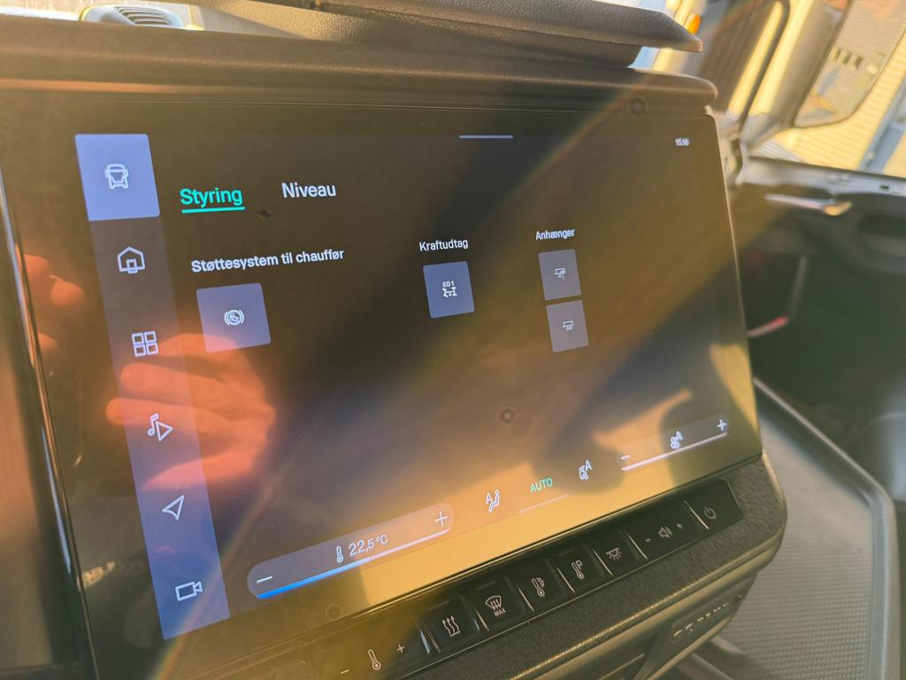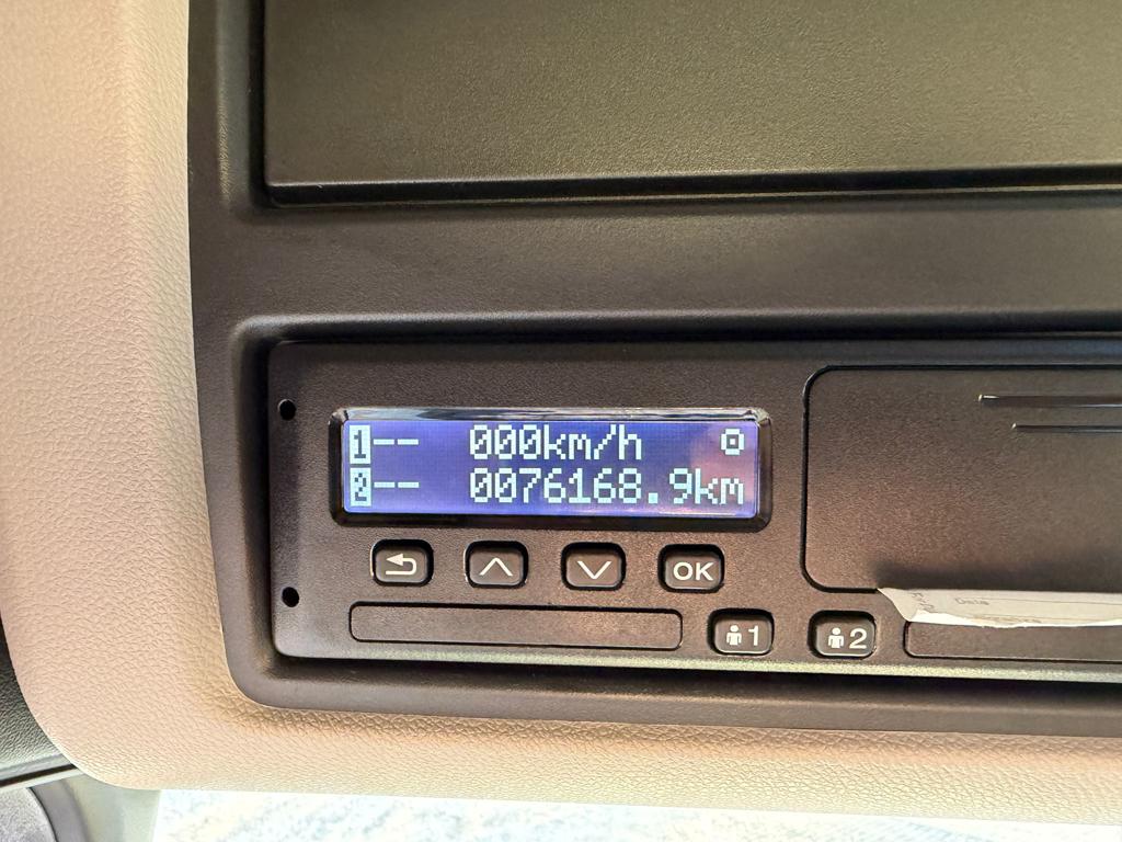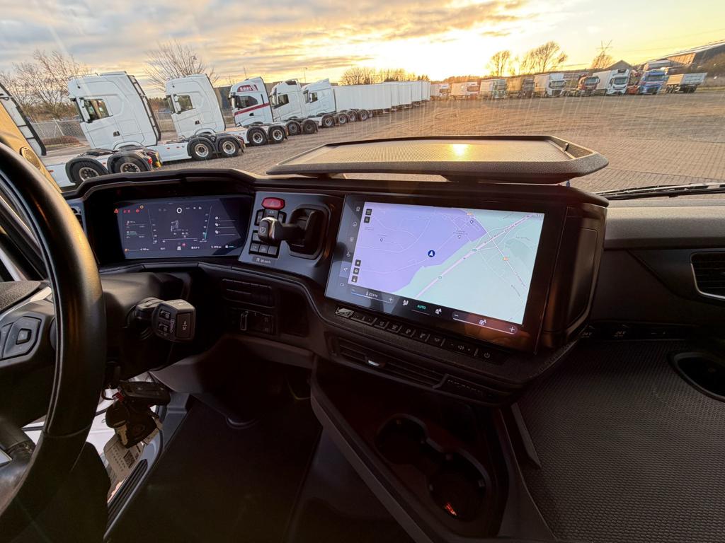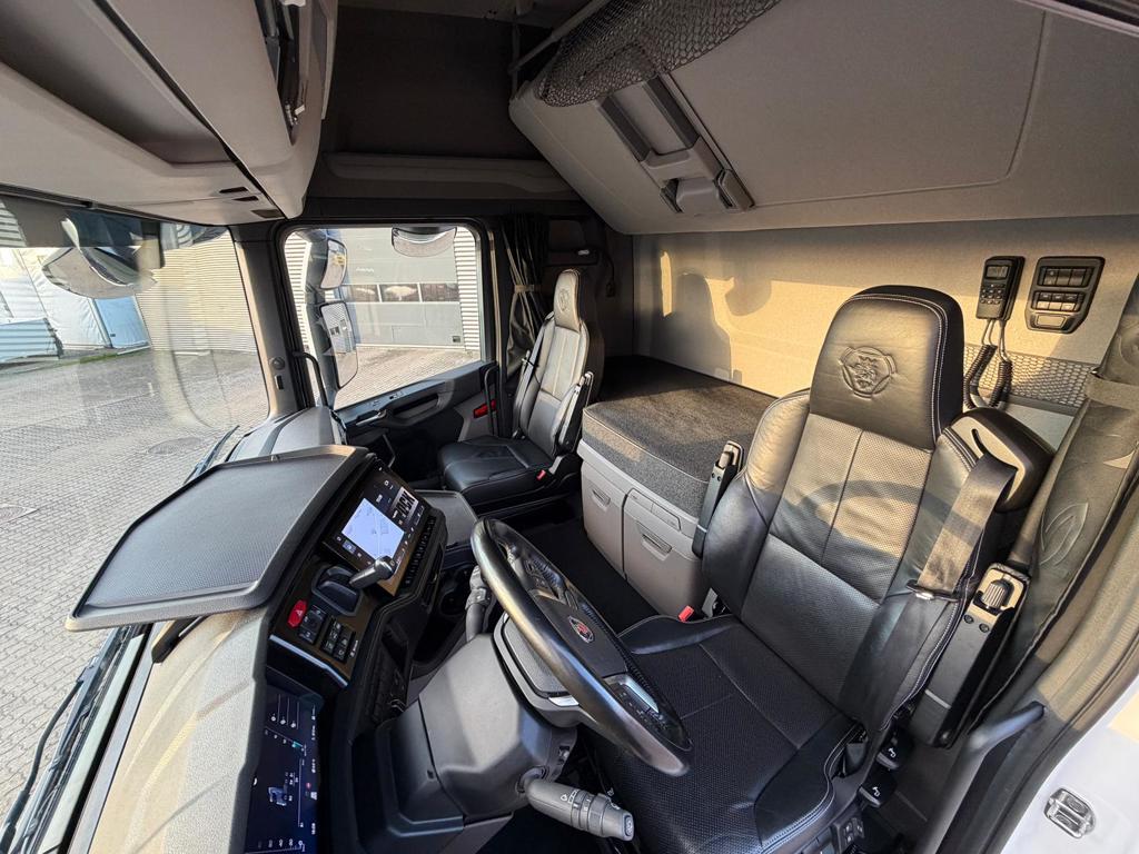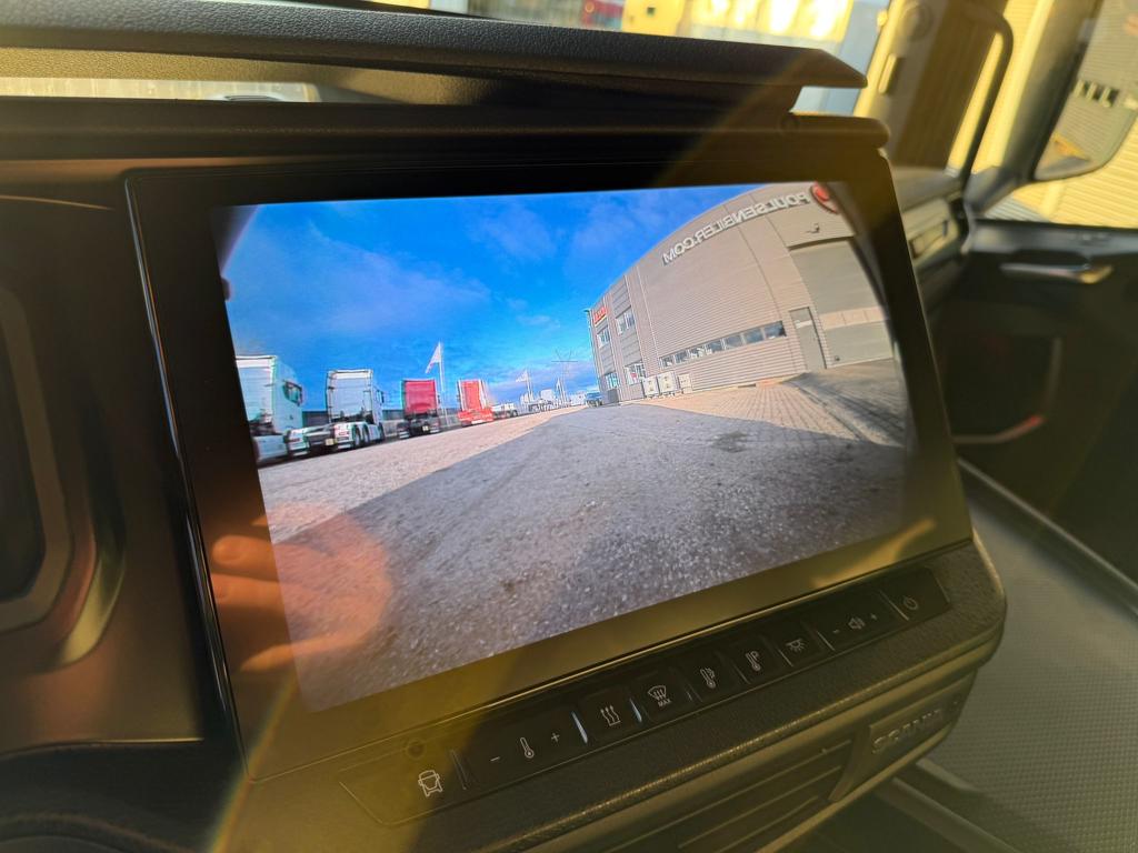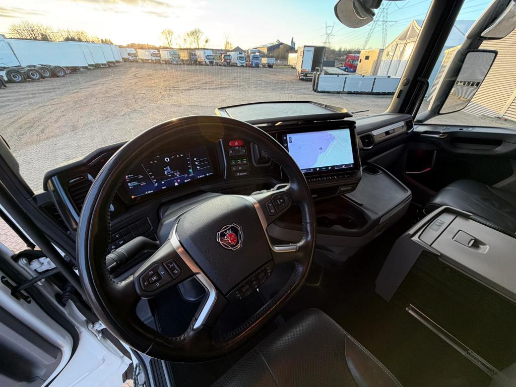 Der er LED arbejdslys og original Scania Air Cooler, som sikrer et behageligt indeklima. Kabinen er udstyret med luftaffjedrede lædersæder, hvor førersædet har både varme og ventilation. Derudover finder du lastindikator, ACC afstandsradar, sporassistent, køleskab, navigation og bakkamera