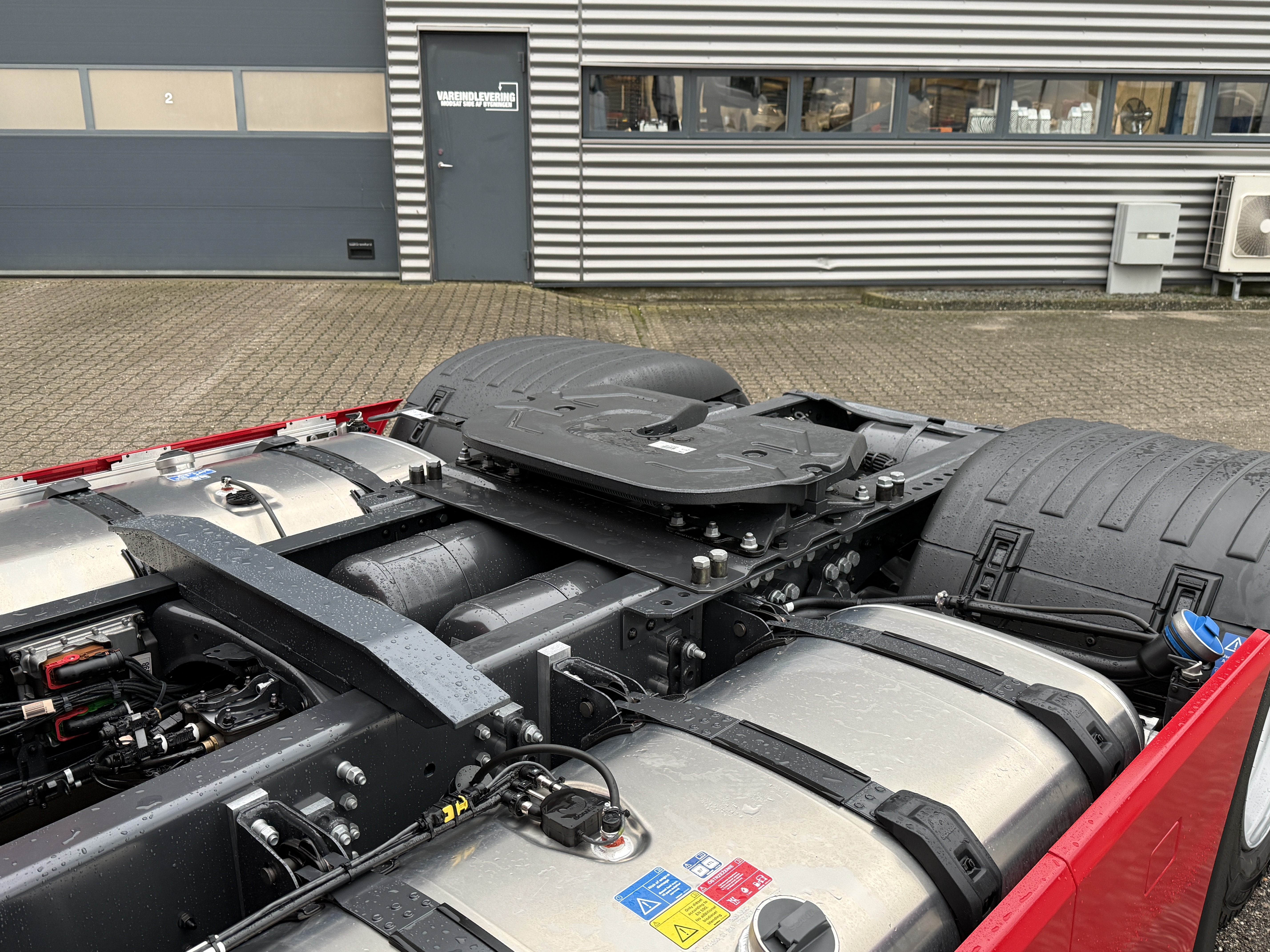 Scania S460 mega trækker står klar til nye opgaver. Den er fuldt luftaffjedret og udstyret med trailerbeskytter. Lastbilen har både ACC, sporassistent og retarder.