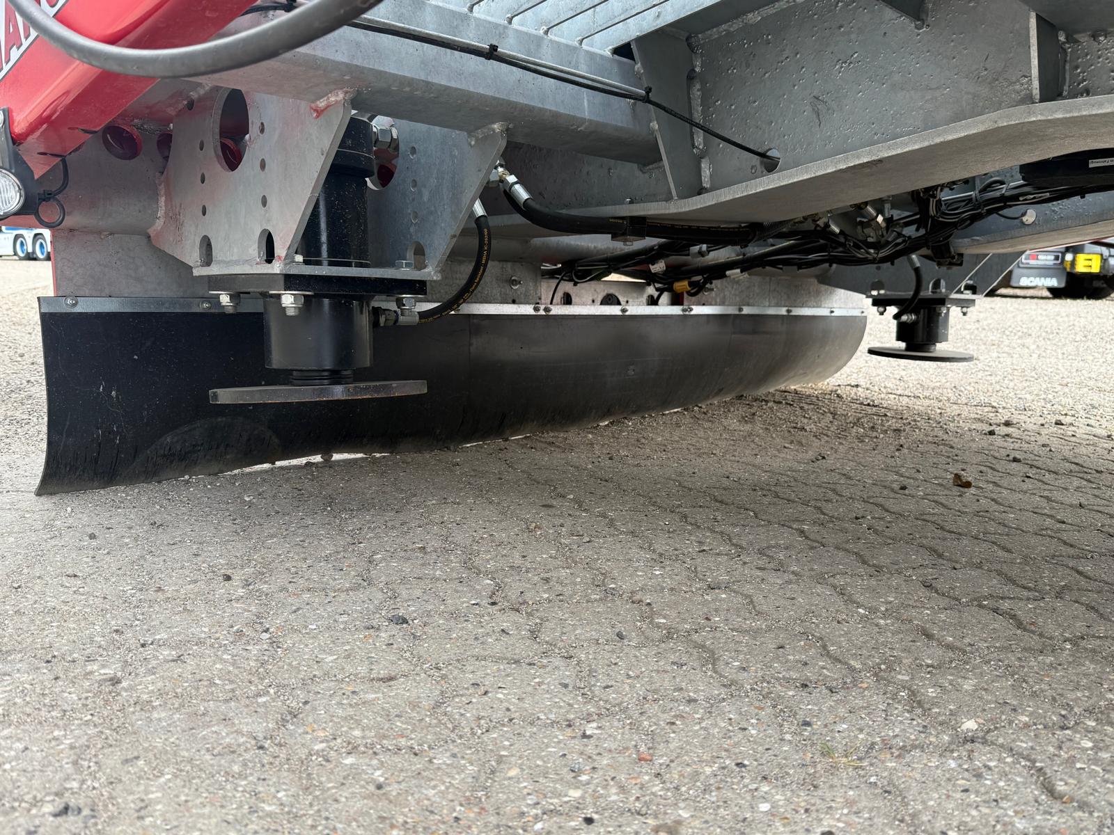 Traileren er desuden udstyret med forbredningsskilte for og bag, mange surringsmuligheder, sideskørter, værktøjsskabe samt en hydraulikstation. På rapoen findes et praktisk opbevaringsrum.