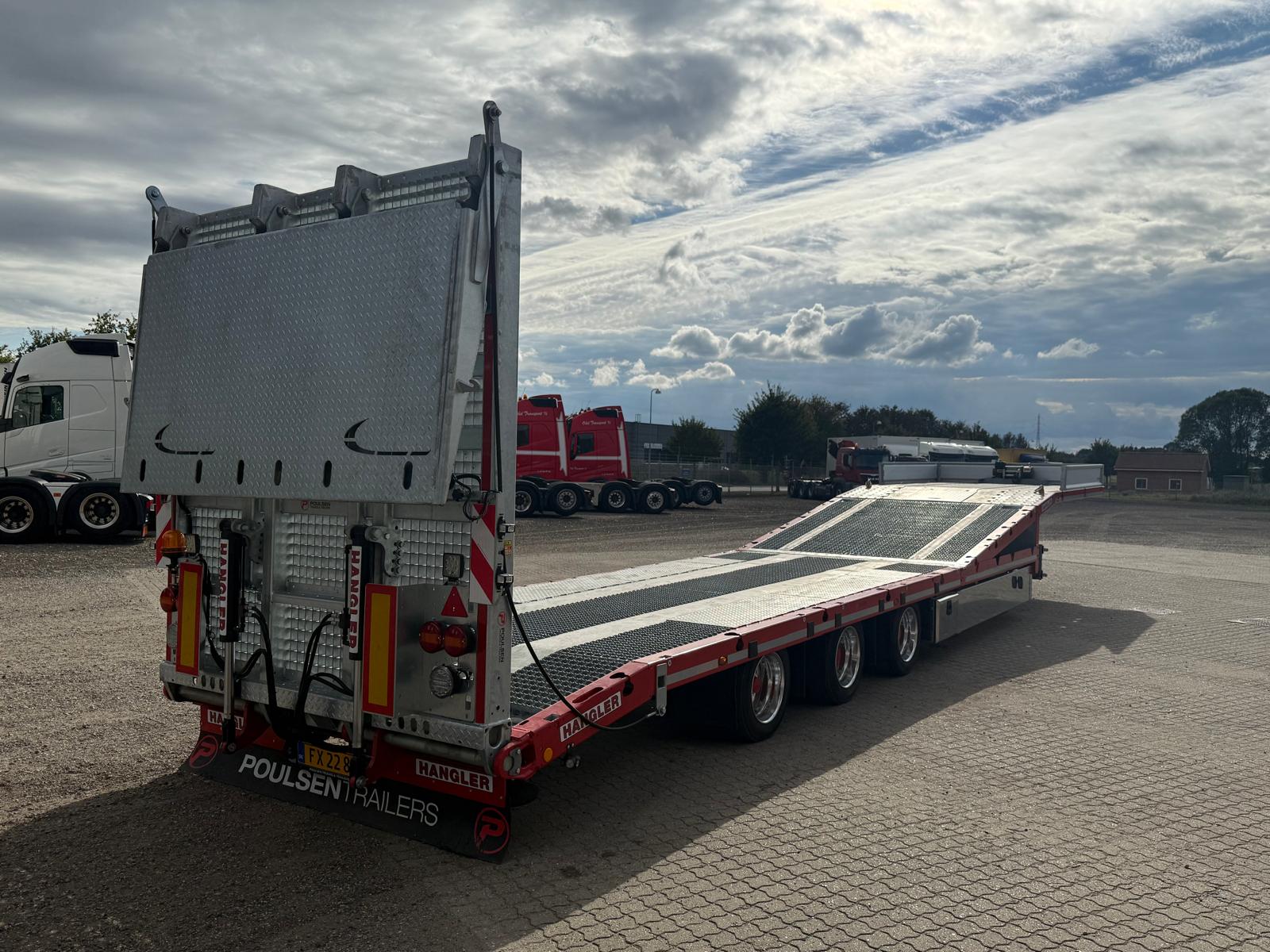 Hangler 3-akslet maskintrailer med Liftmaster og heldækkende hydraulisk rampe. Traileren er konstrueret med BPW-aksler med tromlebremser og monteret med Alcoa DuraBright alufælge. Den 4.000 mm heldækkende hydrauliske rampe samt 3.000 mm hydraulisk løft af bund til rapo gør traileren særligt velegnet til transport af lifte og andre maskiner.