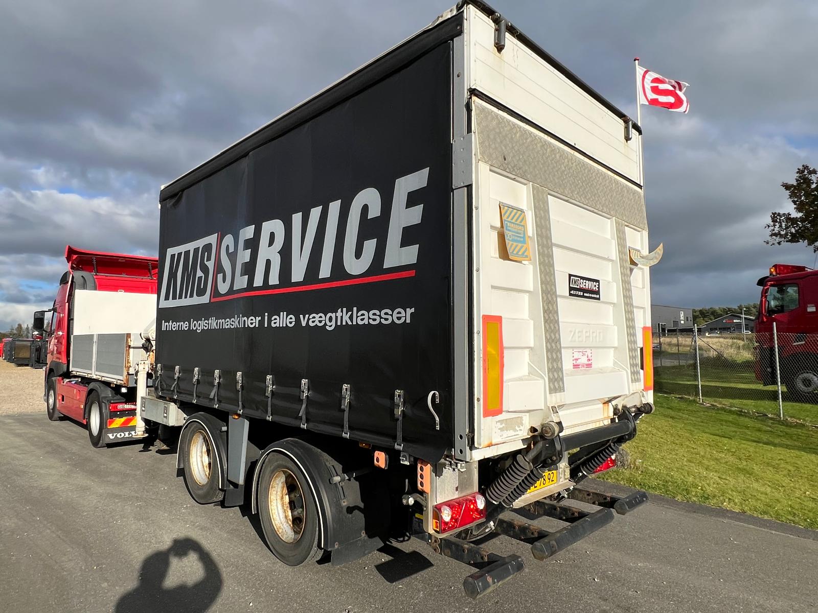 Denne HRD special citytrailer kombinerer et åbent lad med gardinopbygning og er udstyret med en kraftig HMF 1823K3 kran. Traileren har en Zepro-lift med en kapacitet på 2.500 kg, og både lift og kran betjenes nemt via fjernbetjeninger.
