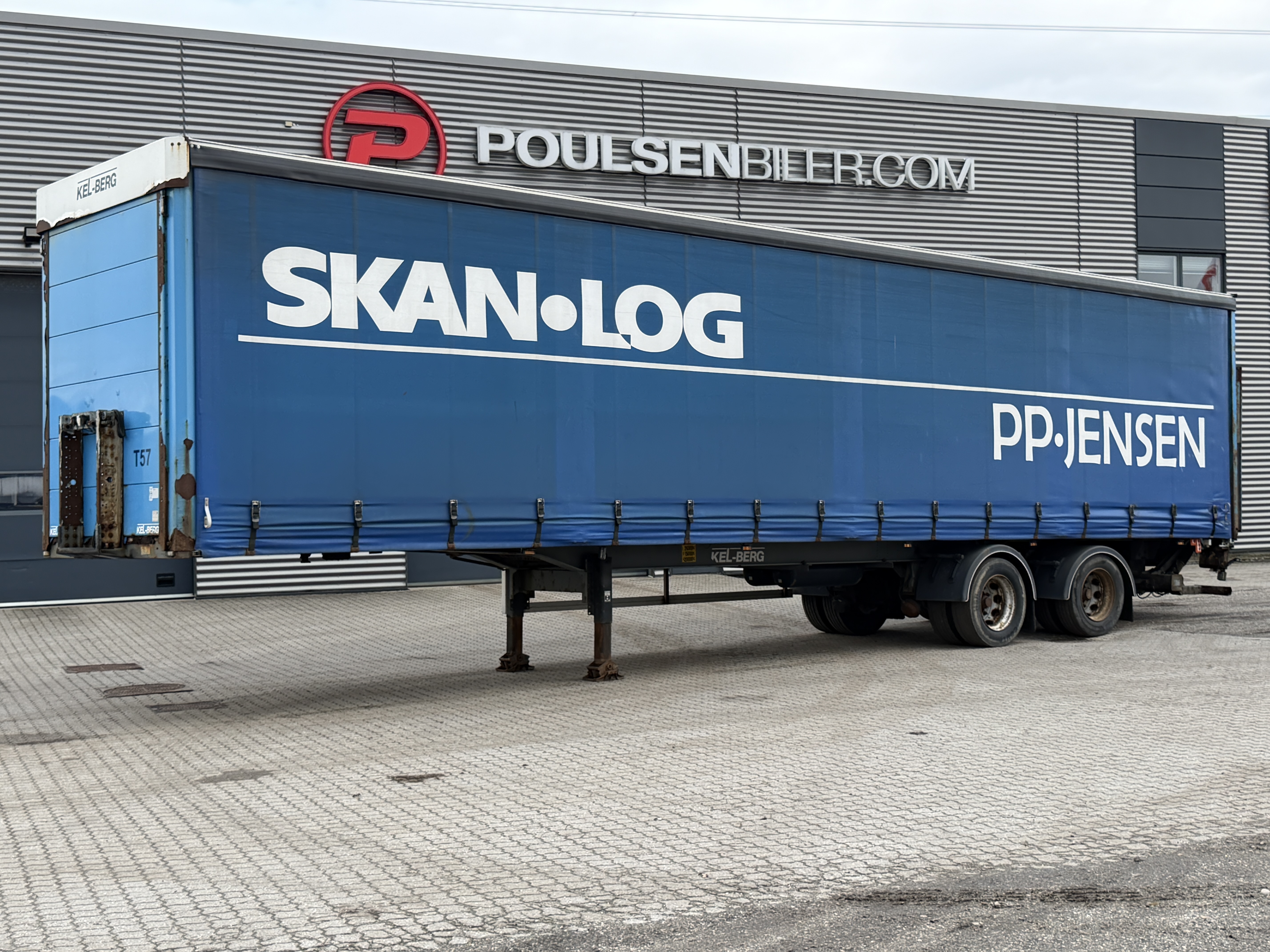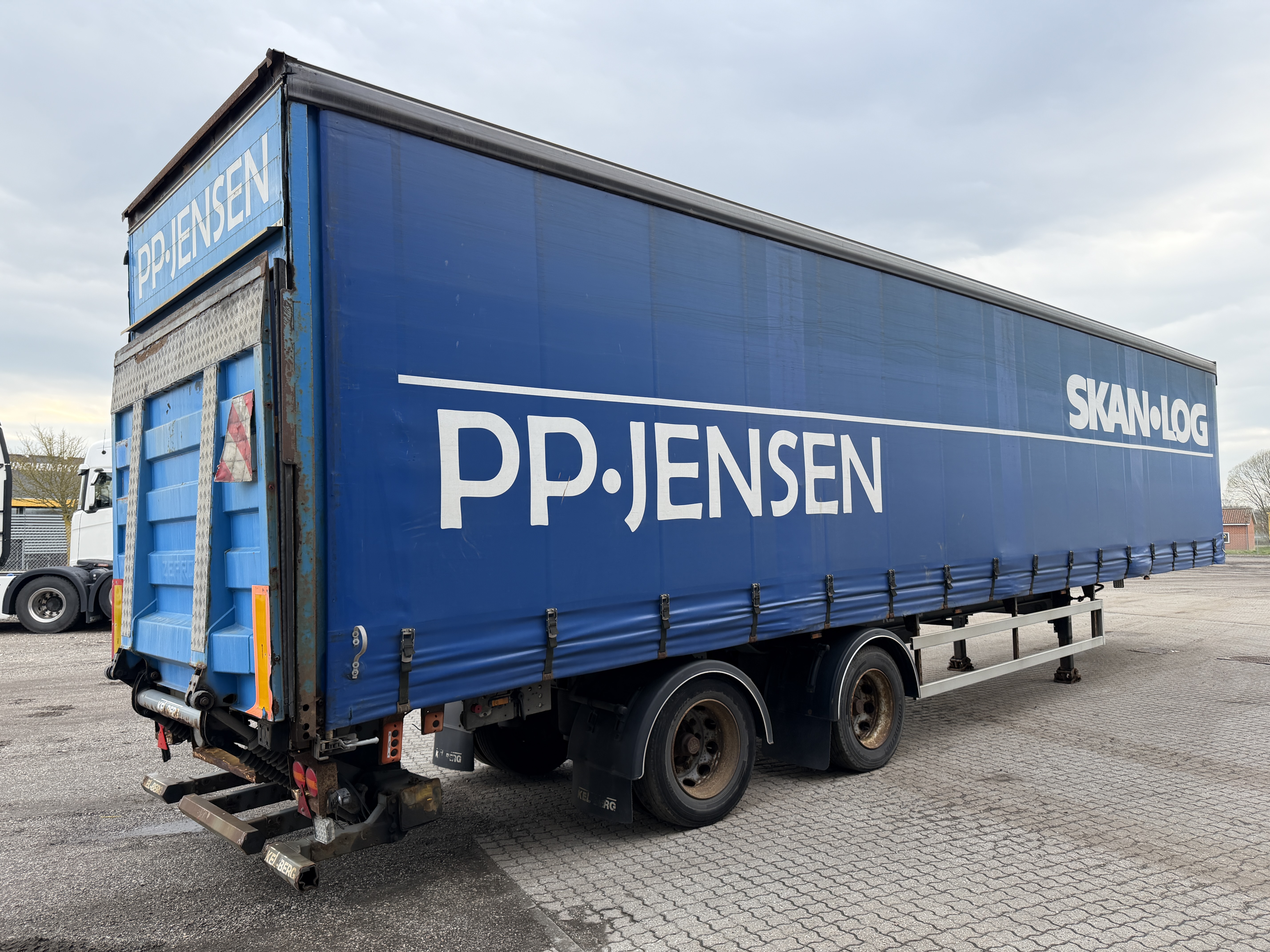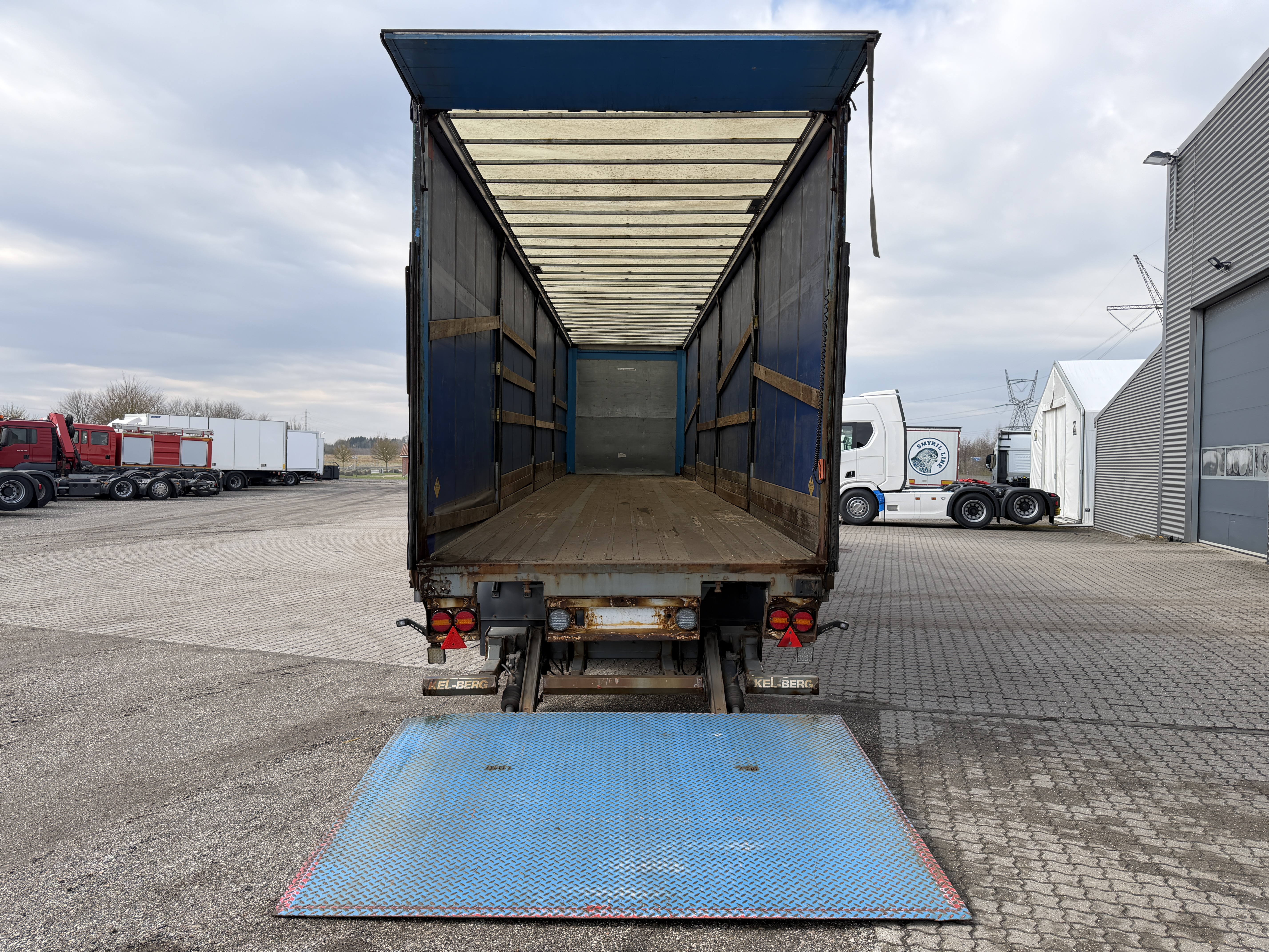 Her tilbydes en KEL-BERG 2-akslet city gardintrailer, som er udstyret med en 2.500kg Zepro-lift samt glasfibertag.