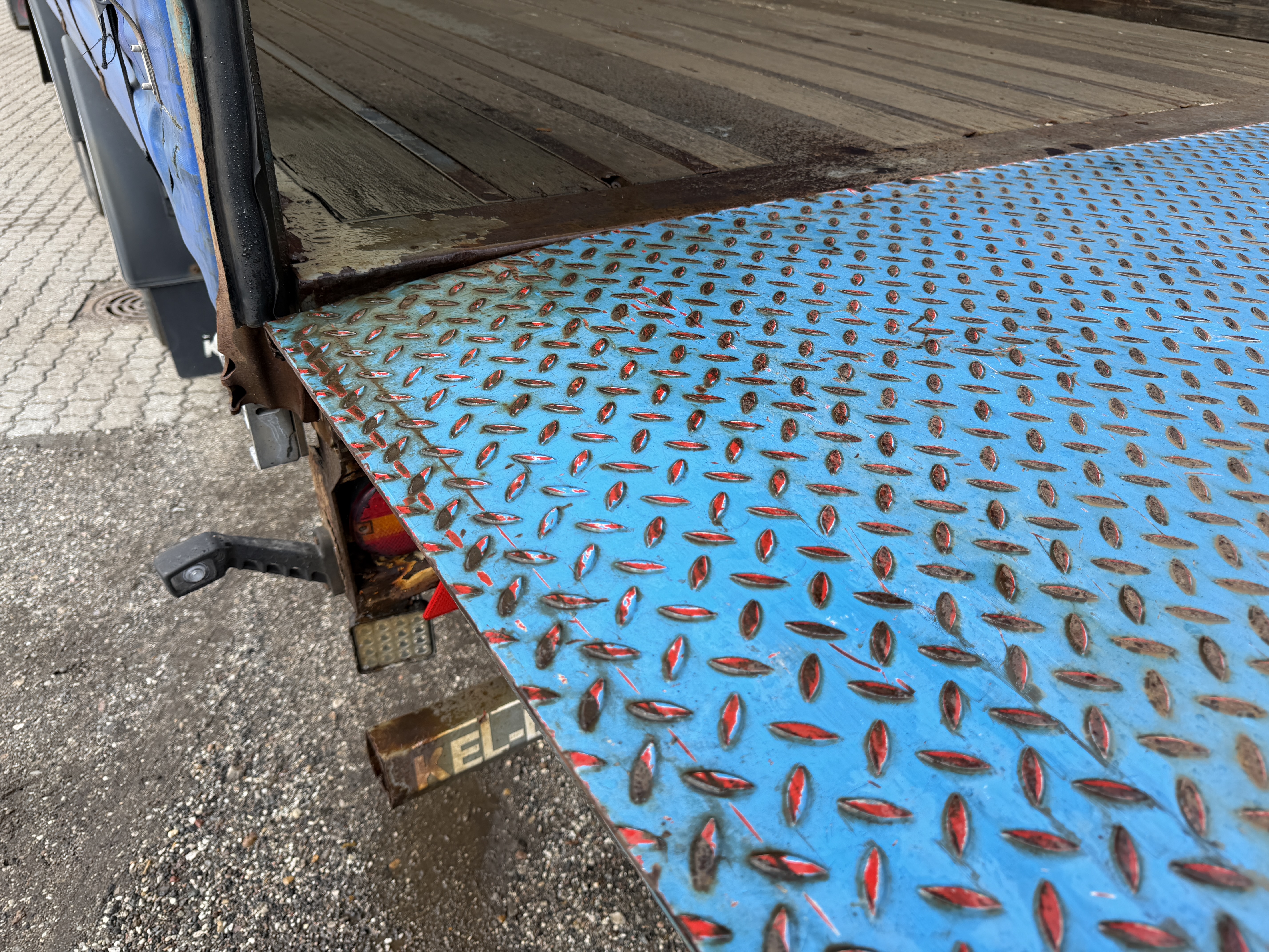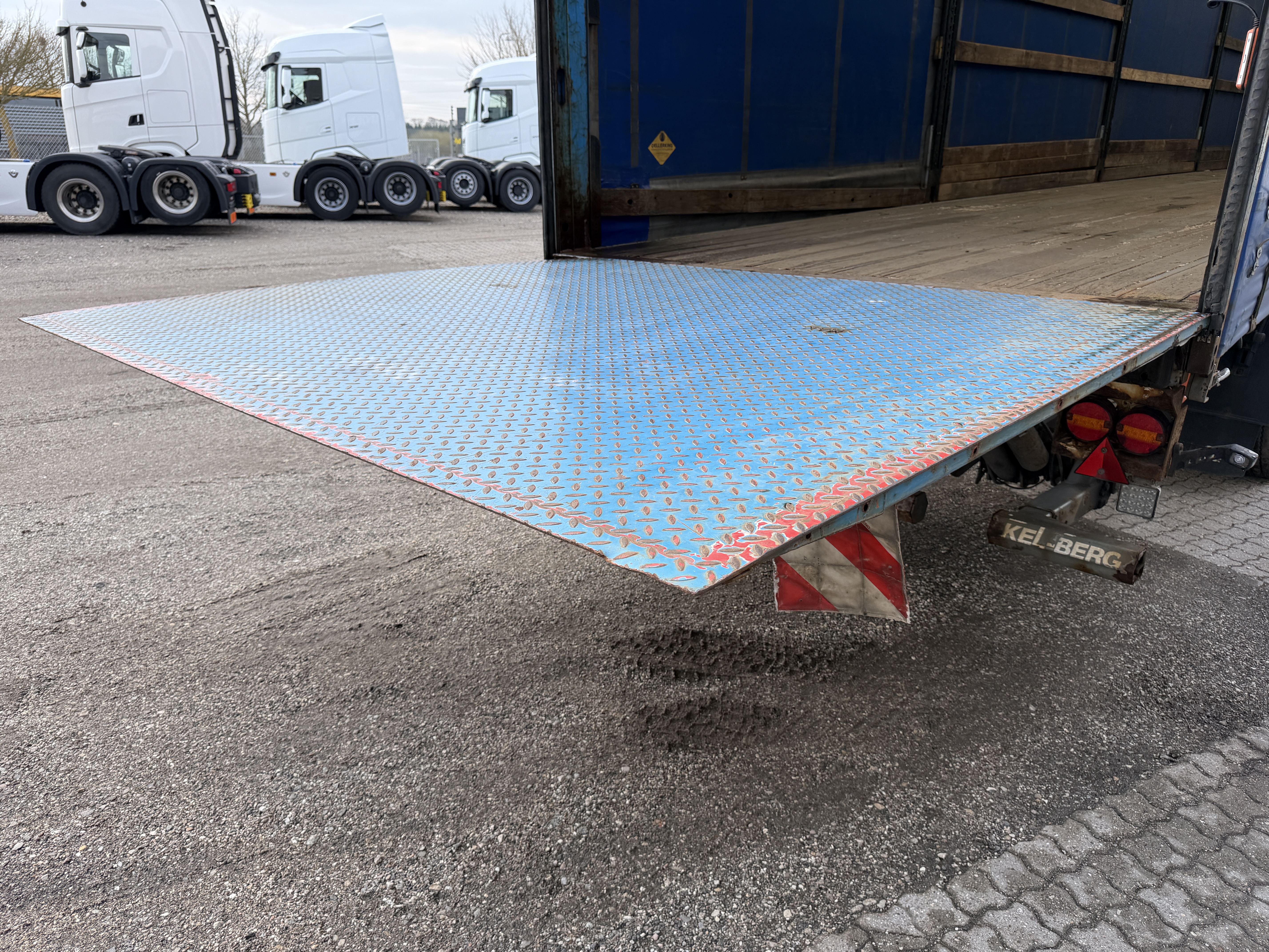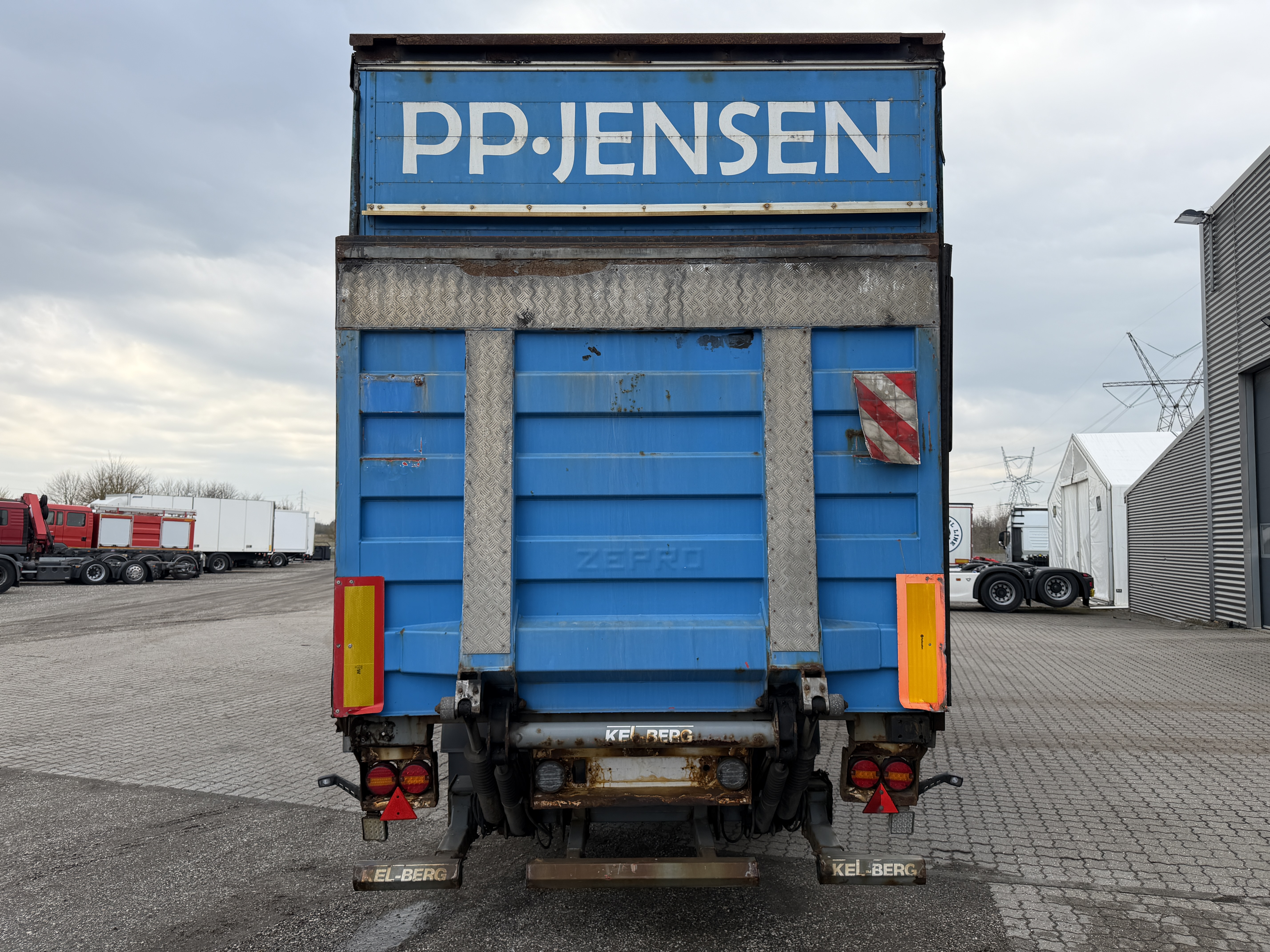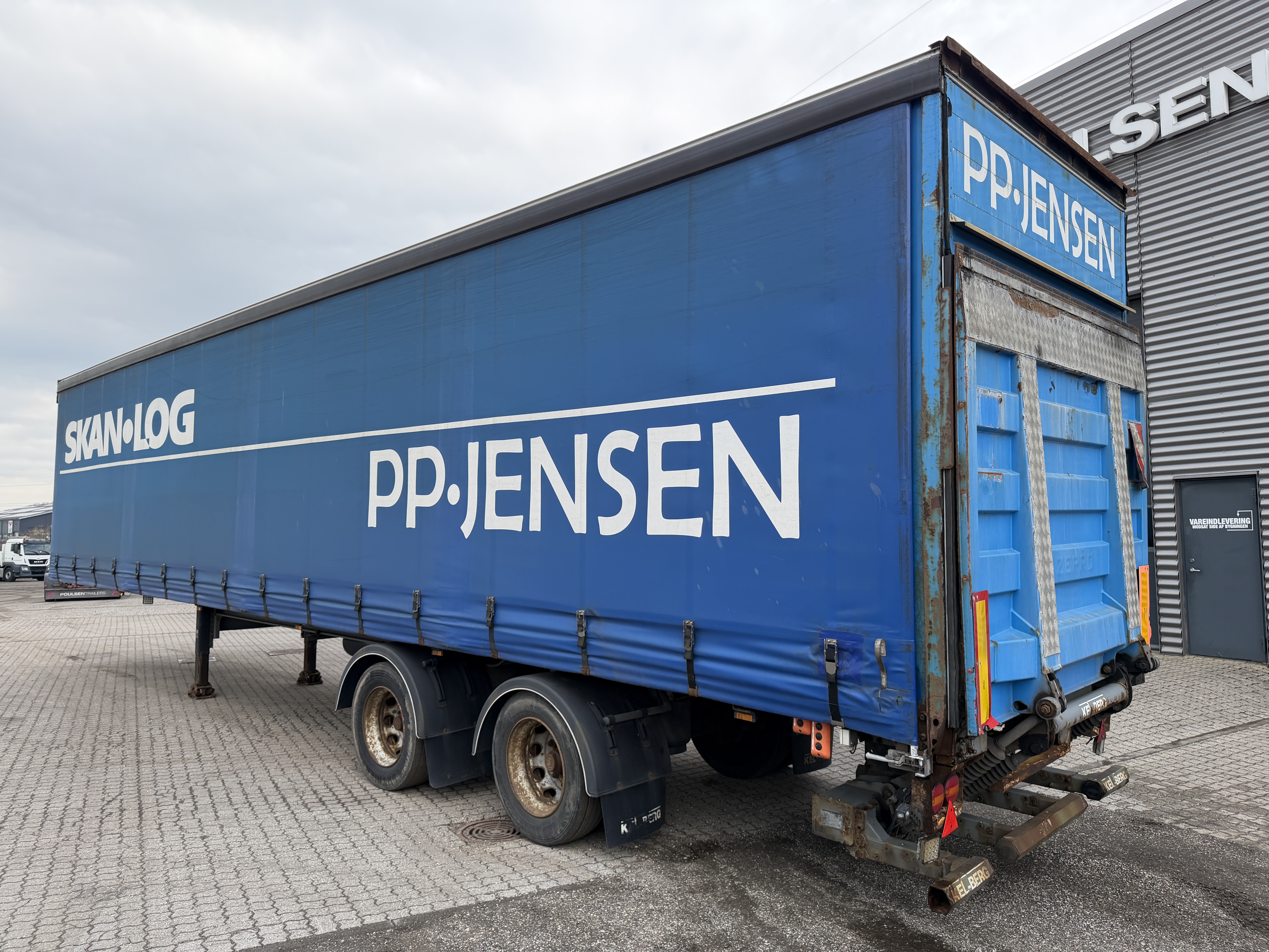 Her tilbydes en KEL-BERG 2-akslet city gardintrailer, som er udstyret med en 2.500kg Zepro-lift samt glasfibertag.