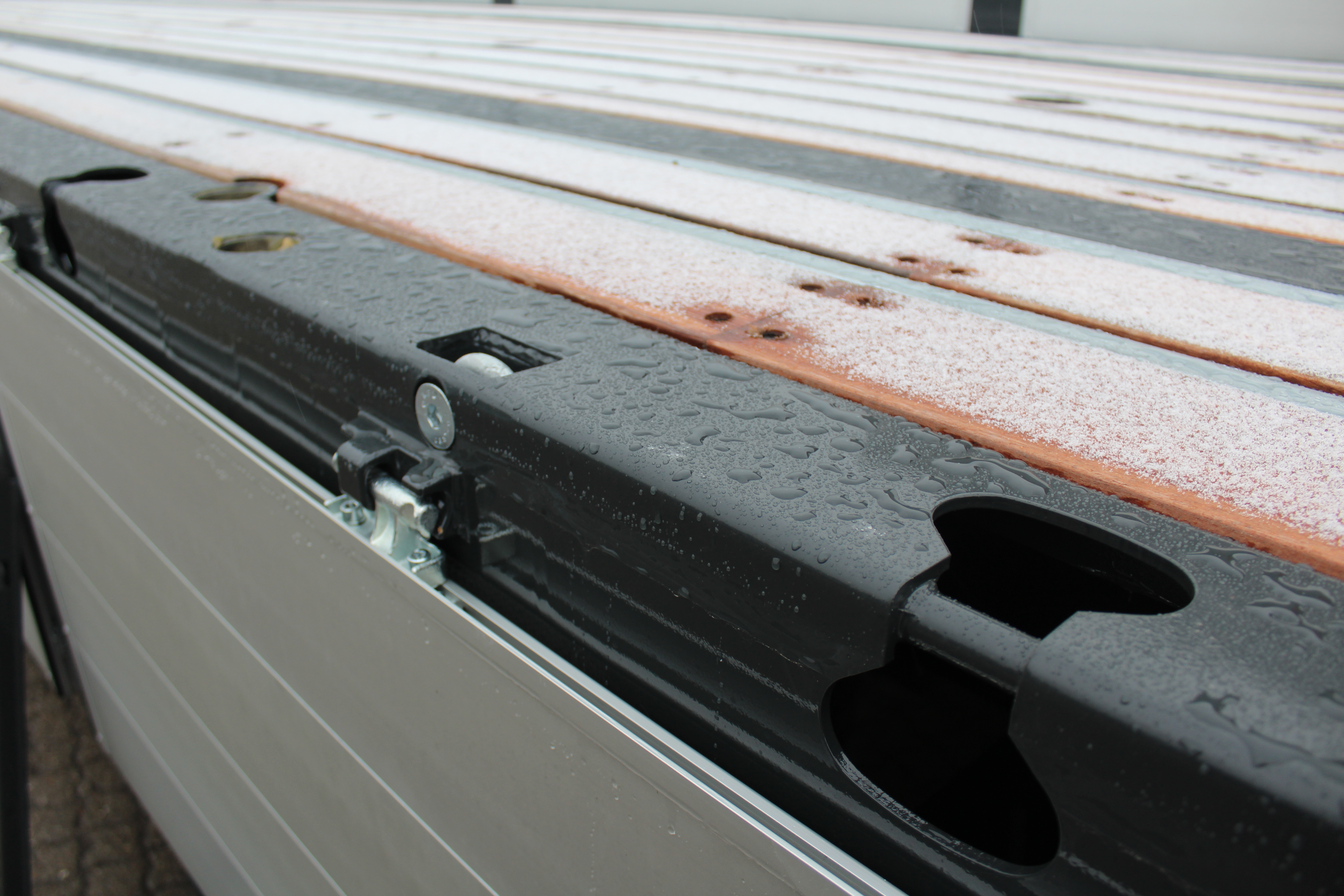 - 30mm hårdttræ bund med stål omegaprofiler imellem.