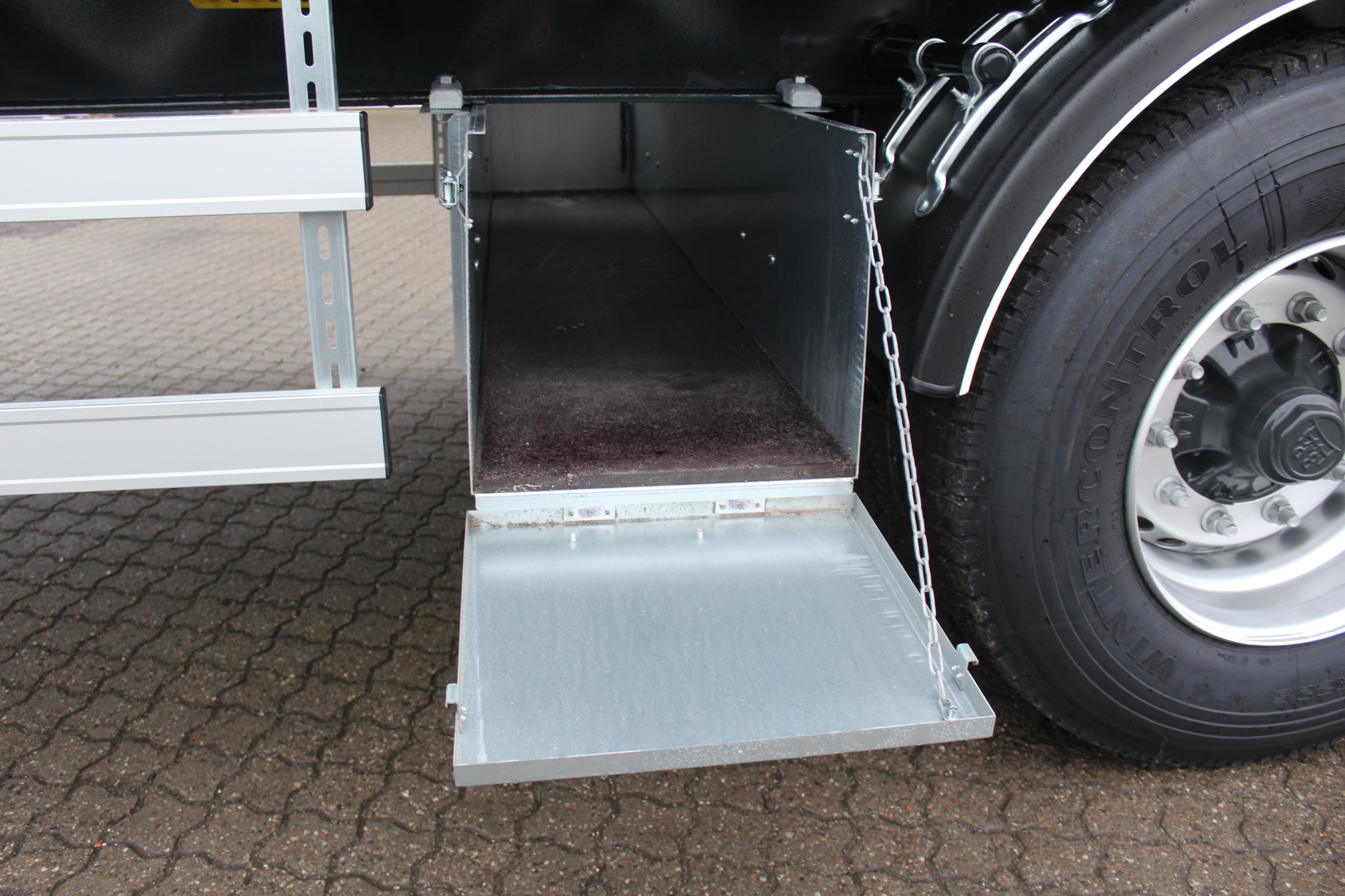 - 1 stk. gennemgående magasinkasse under chassis - låge på begge sider.