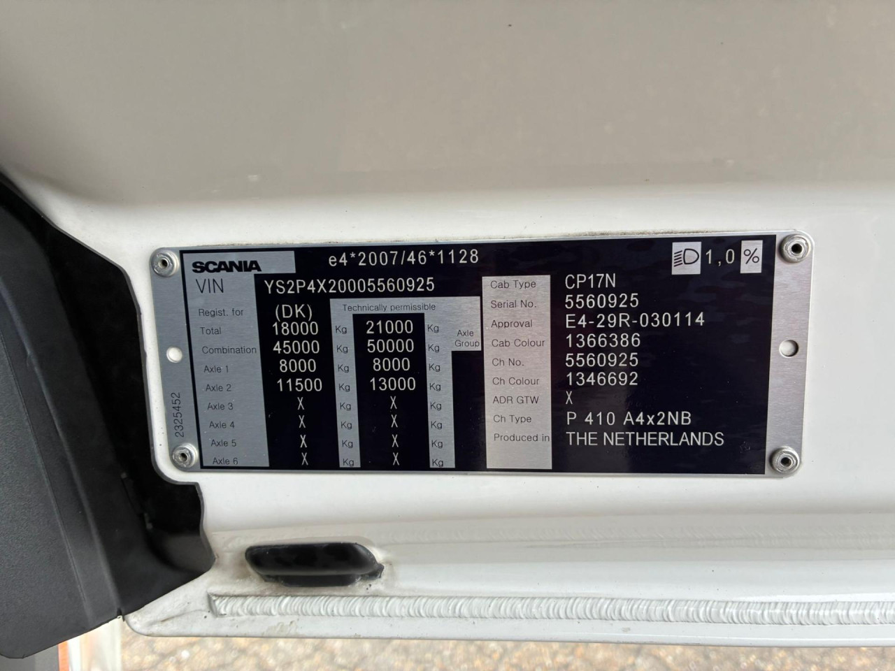 Nyttelast: 10.450 kg, Tilladt totalvægt: 18.000 kg, Brændstofstank: 500l, Akselafstand: 3.750 mm