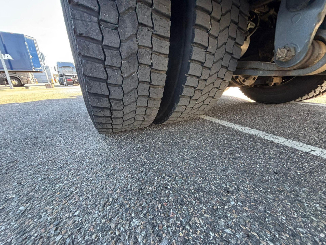 1. Achse:  385/55 R22.5, Profildybde: 12 mm / 12 mm, 2. Achse:  315/70 R22.5, Profildybde: 8 mm / 14 mm, 3. Achse:  385/55 R22.5, Profildybde: 6 mm / 8 mm