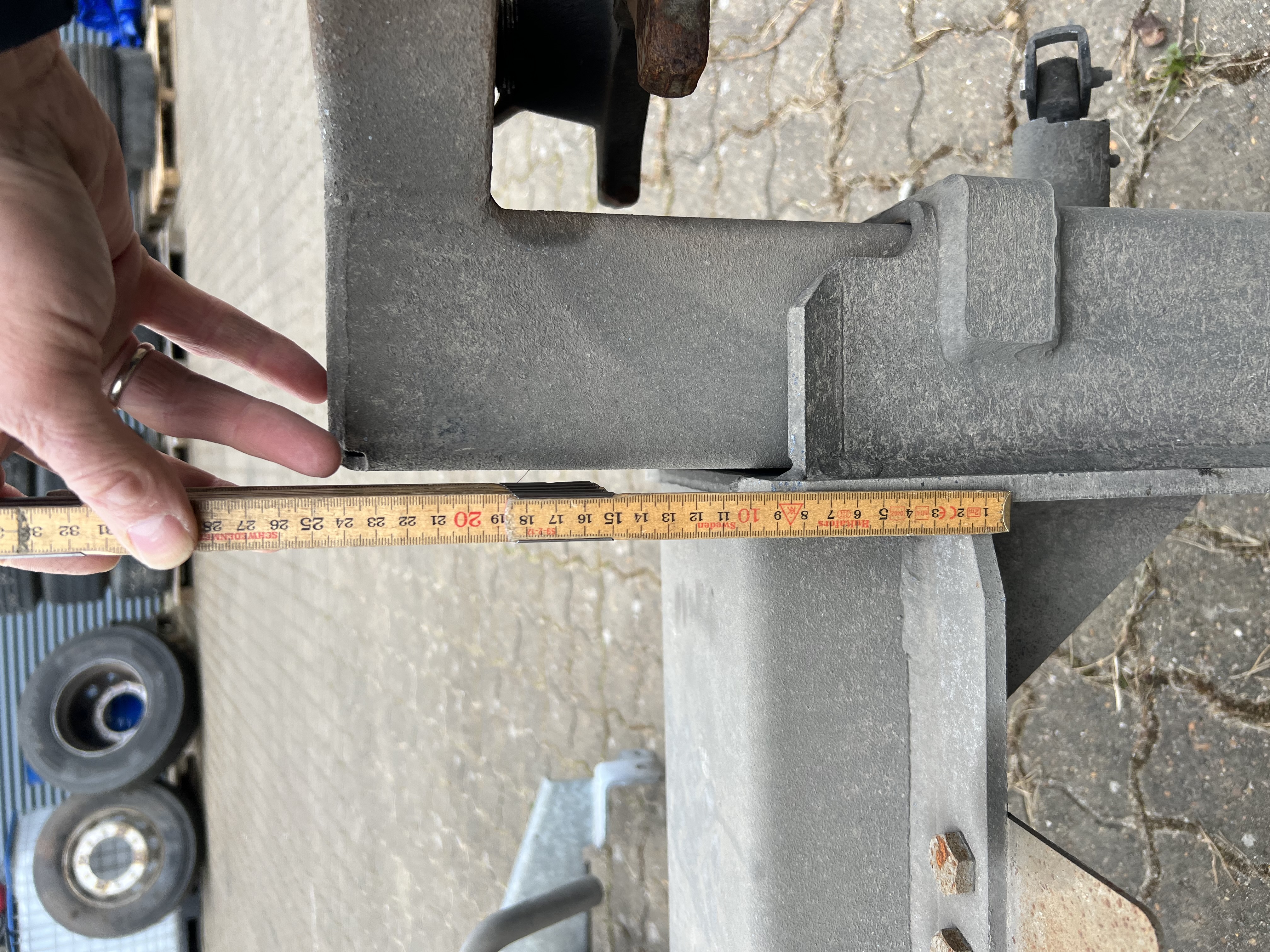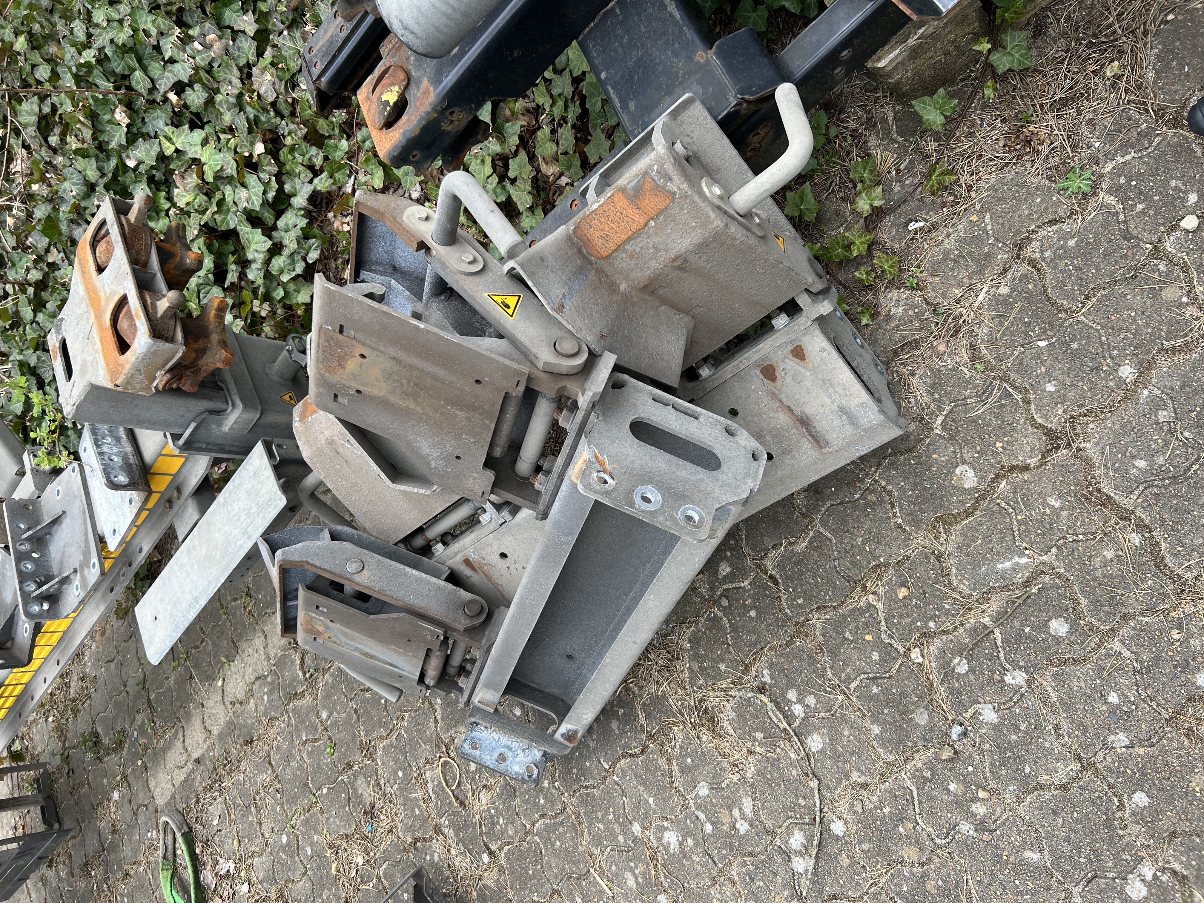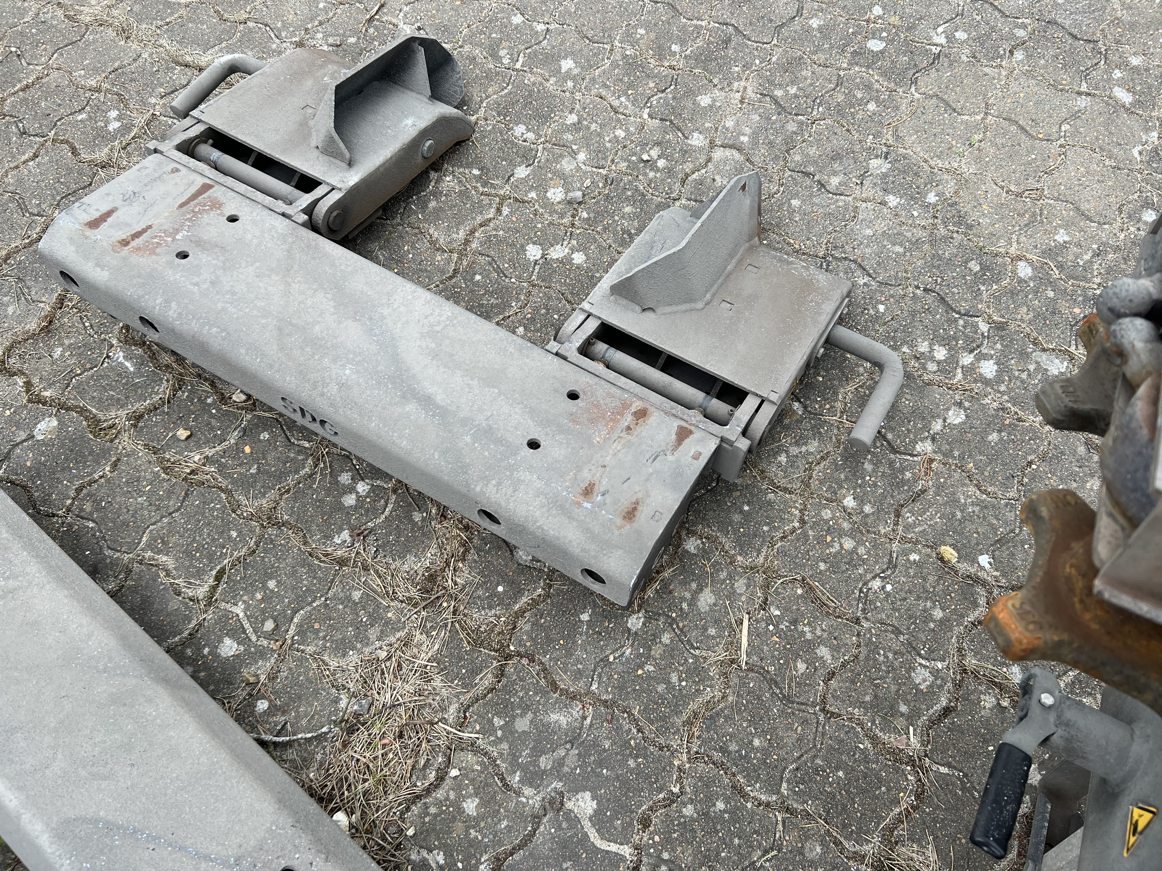 Afmonteret fra Scania chassis rammebredde 770 mm passer til 7820 - 7450 - 7150 mm multi låse som er dobbelt samt justerbar i højde fra 100 til 260 mm - tilhørende 2 stk midter bære bjælker som kan vippen ned i samme højde som de fast bjælker