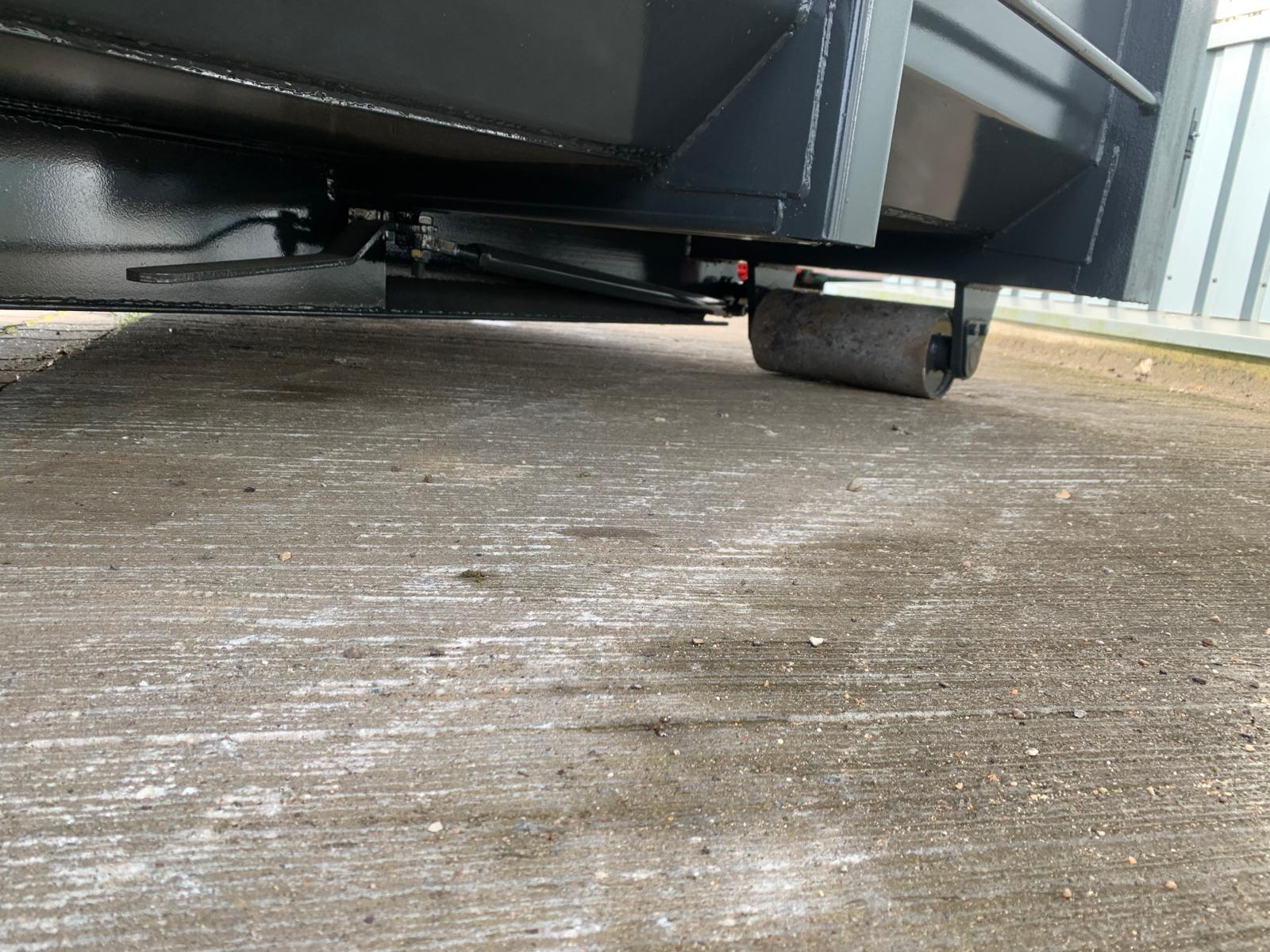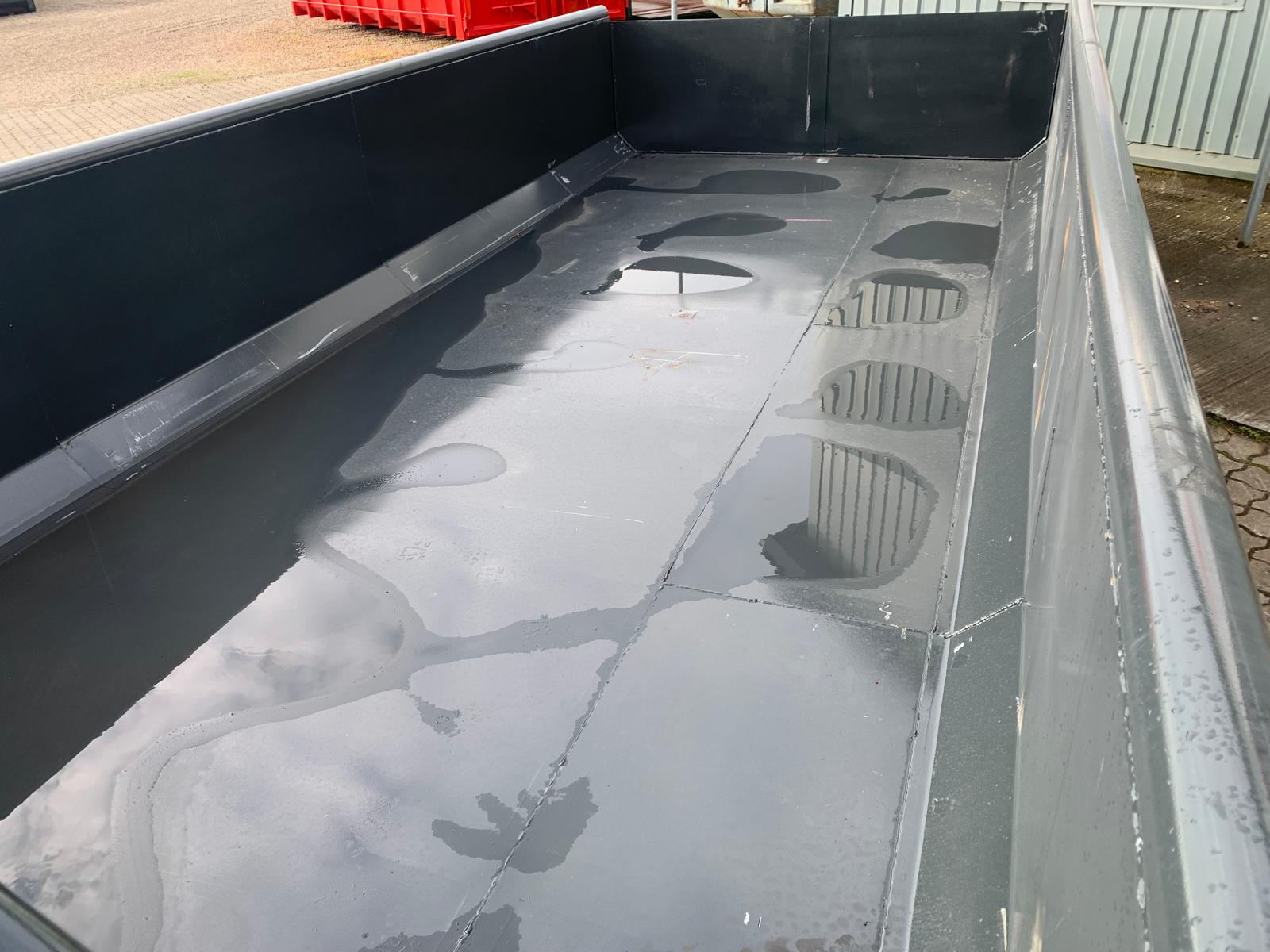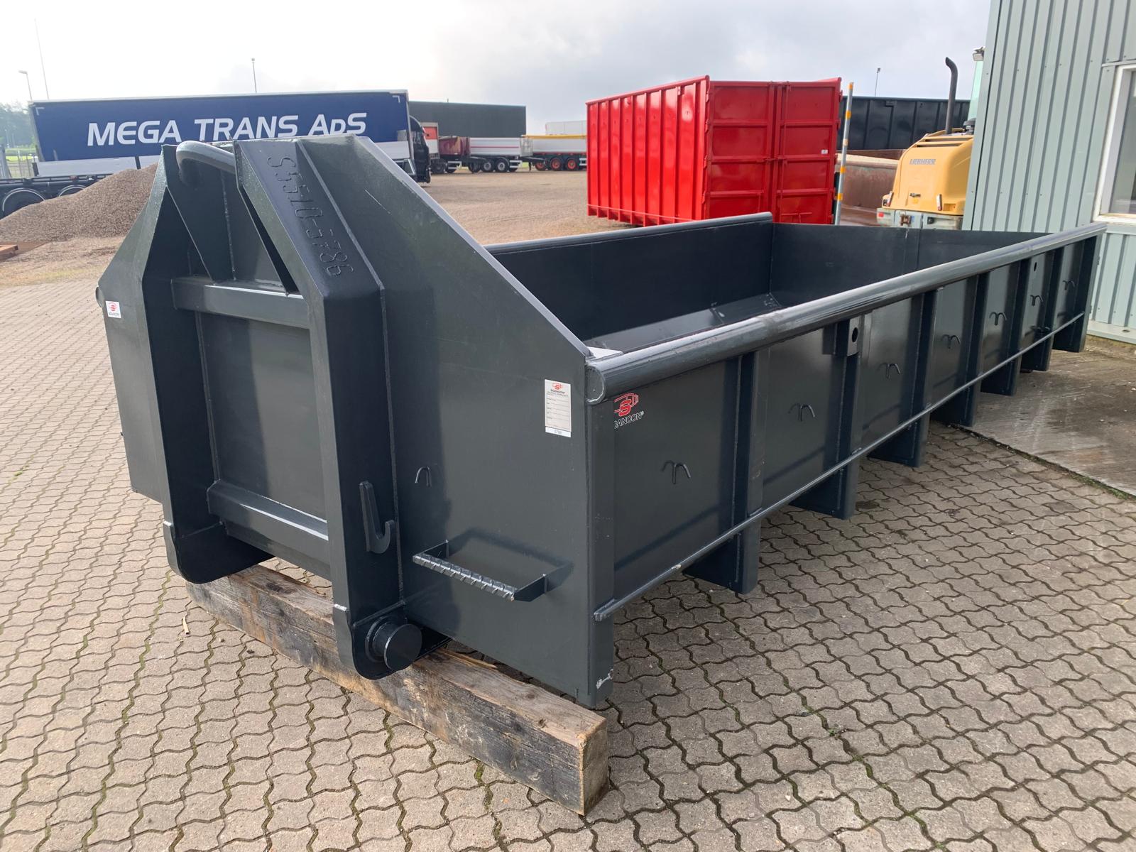 indv. mål 5500 x H 800 x B 2350 mm - 5 mm. bund og 3 mm i sider - optræk tårn til krog og wire hejs - Sidehængt bagdøre - rumindhold 10m3 - lakeret i RAL 3001 signalrød (Farve kan ændres frem til 2 uger før levering) - 750 mm. i vange afstand - 1849 kg egenvægt - Surrings stang lang yderside - fodtrin på forsmæk + 1 stk indv. i kassen