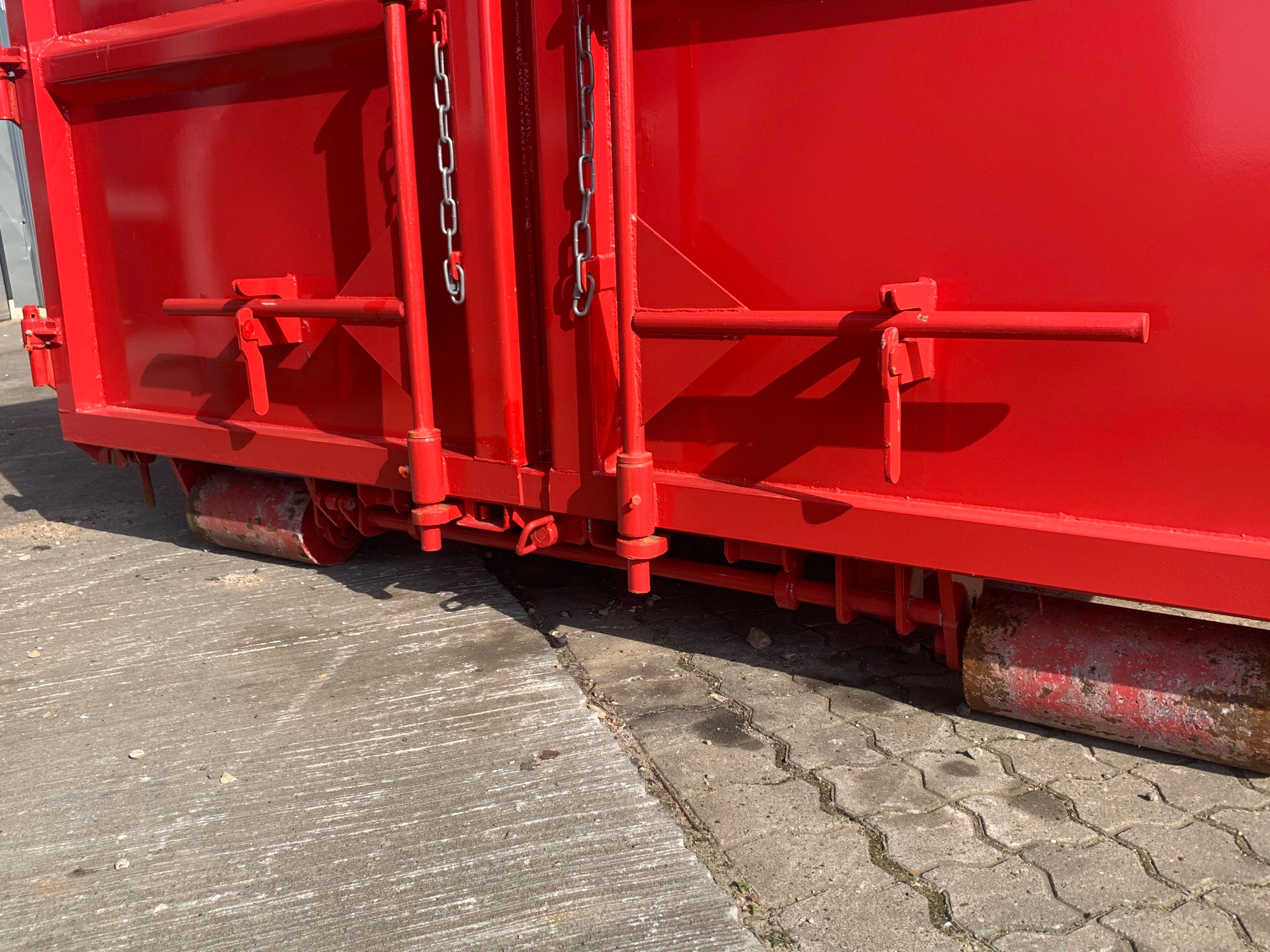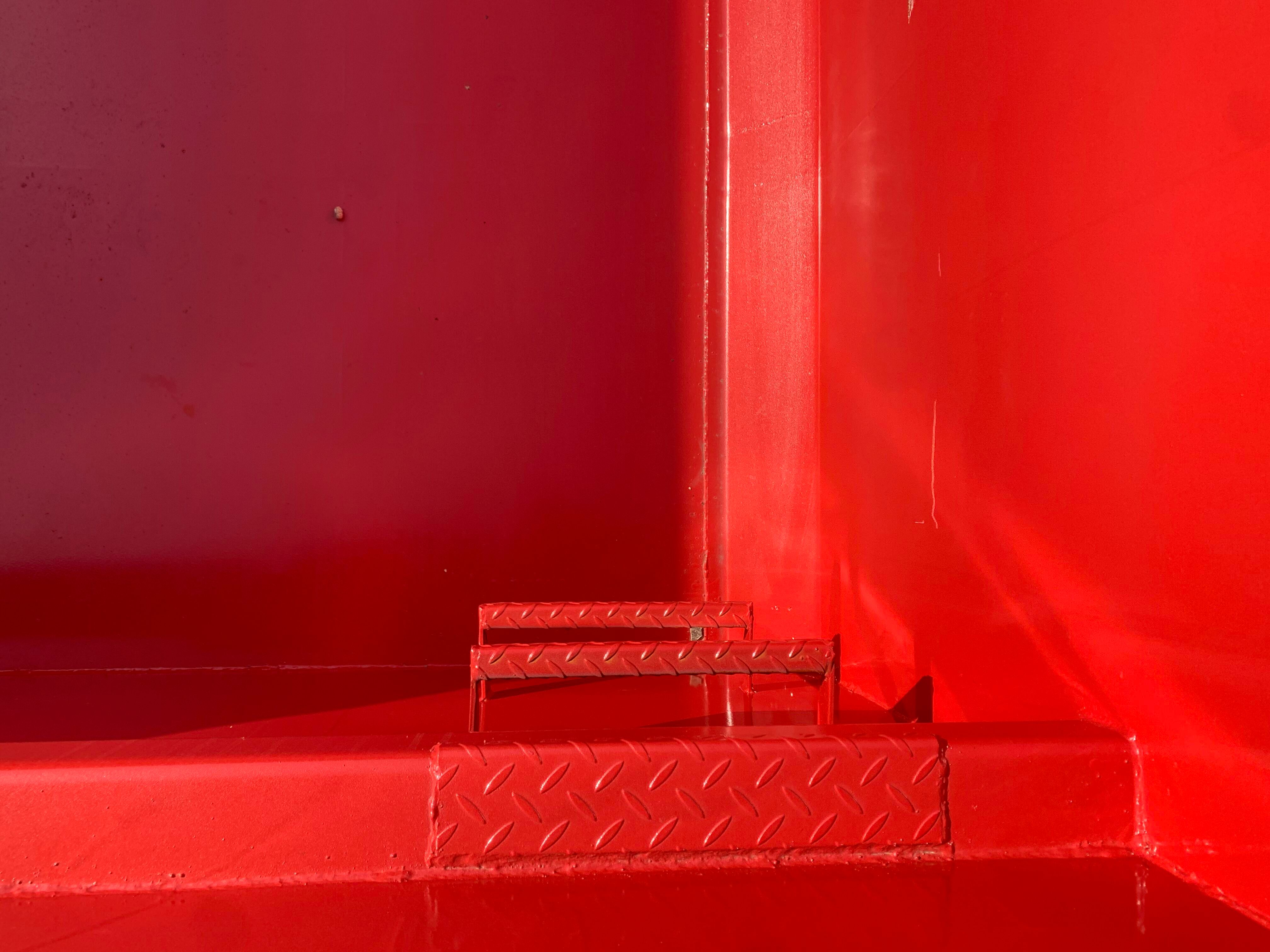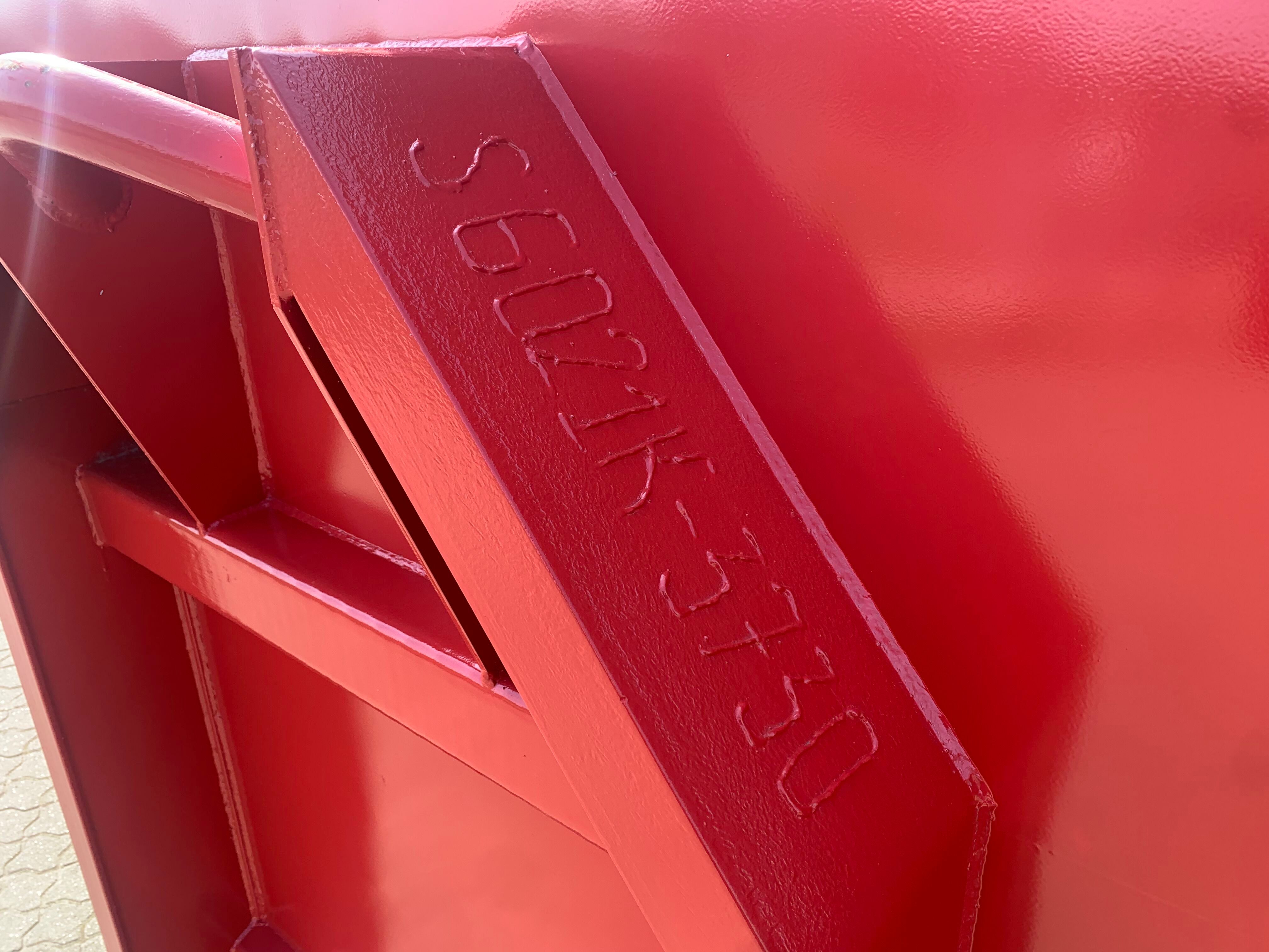 5 mm. bund og 3 mm. sider i S235 stål - Beslag til krog og wire - Lakeret i RAL 3001 Rød (Farve kan Ændres frem til 2 uger før levering) - 750 mm. i vangeafstand - Surringsstang lang yderside - Trin på forsmæk.