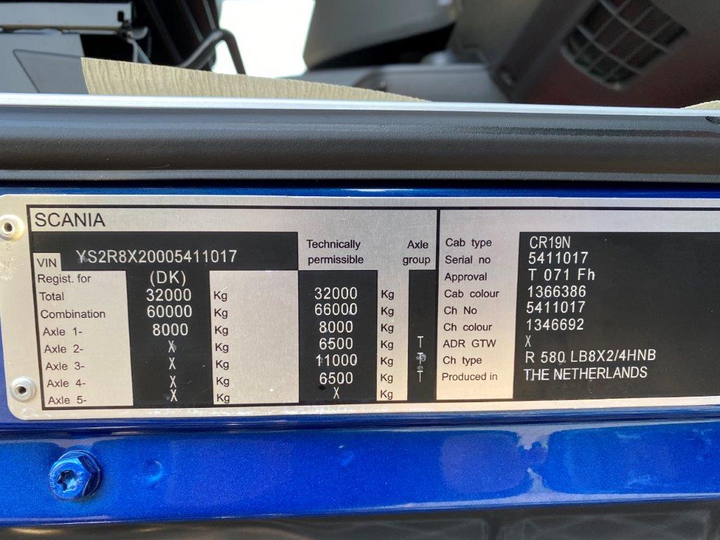 Afmonteret tip lad fra velholdt Scania R580 LB 8X2/4 HNB 4700 mm akselafstand år 2016 chnr YS2R8X20005411017