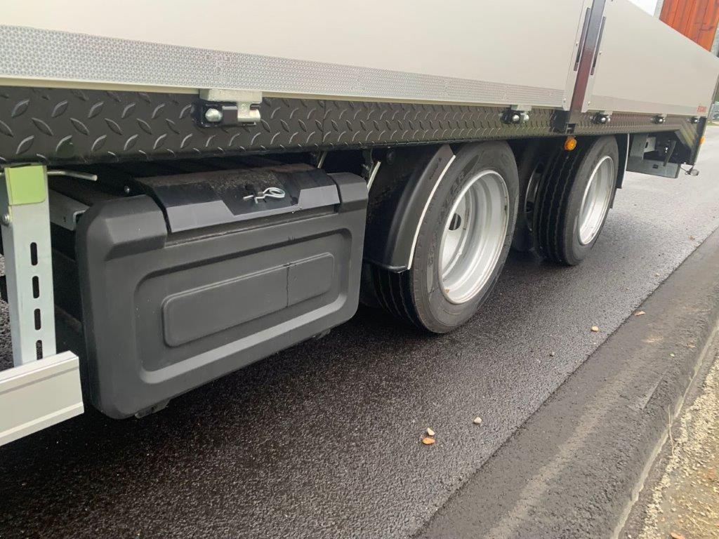 Lad længde incl. knæk 6.200 mm - 5300 mm på planstykke + knæk 900 mm - Jerndørk ladbund - Aftagelige 400 mm alu. sider