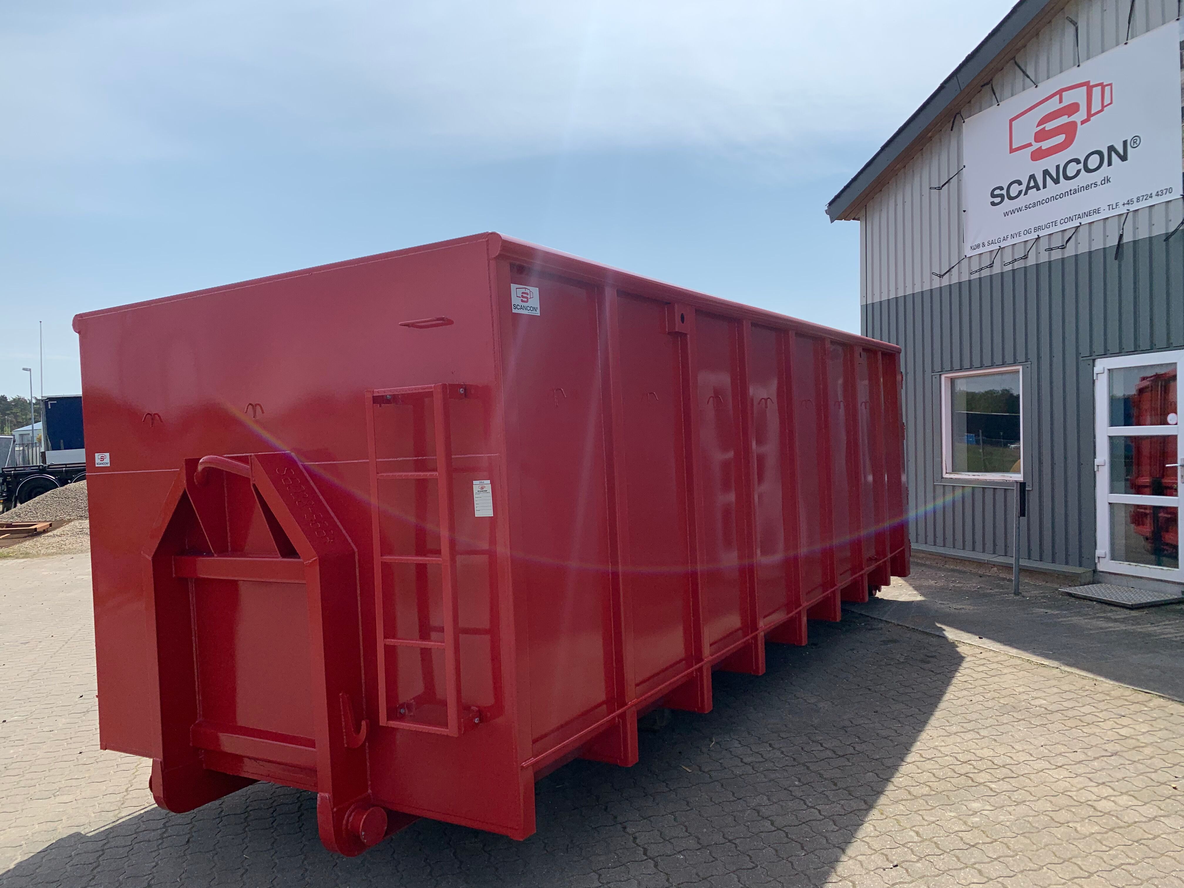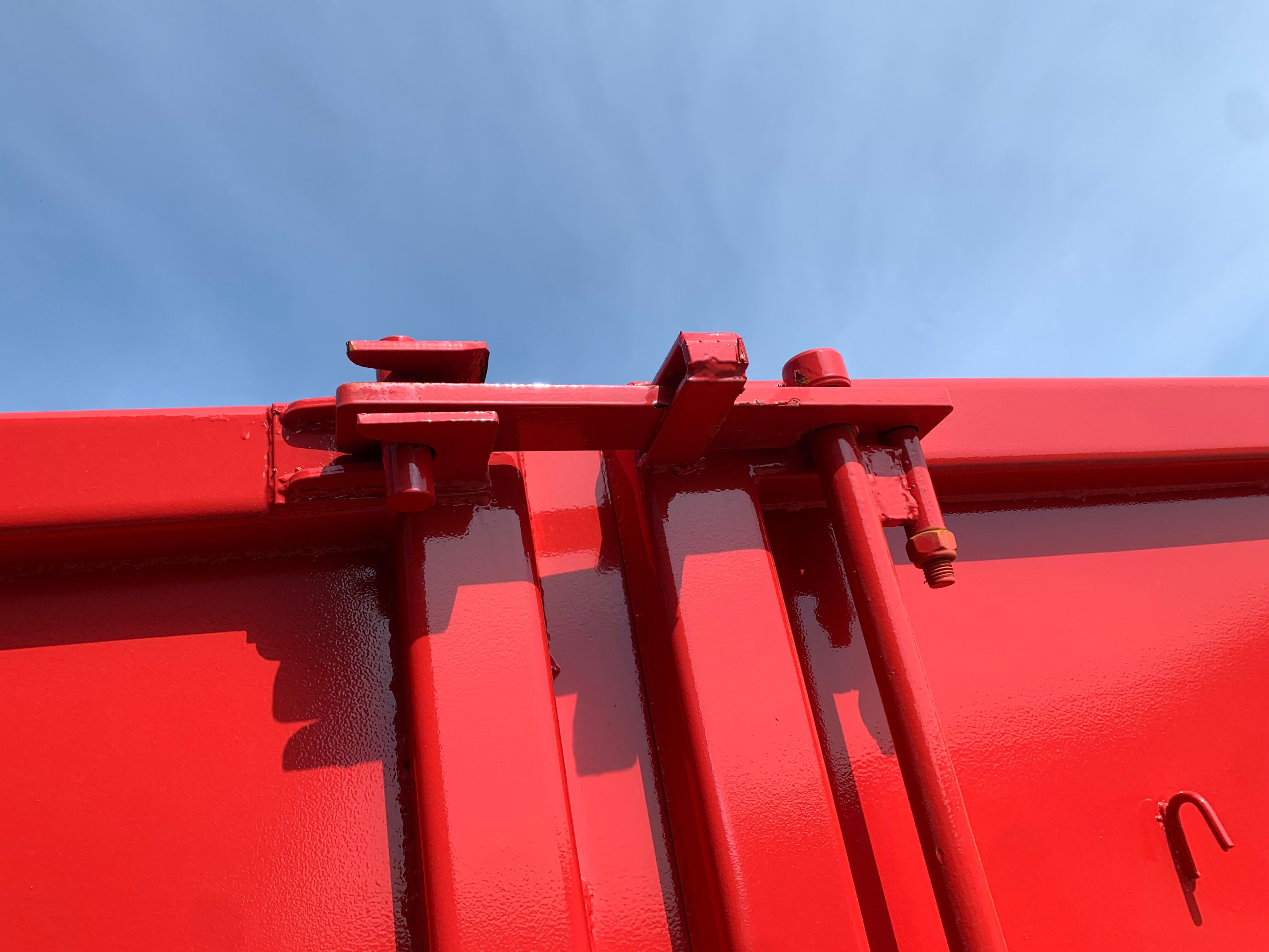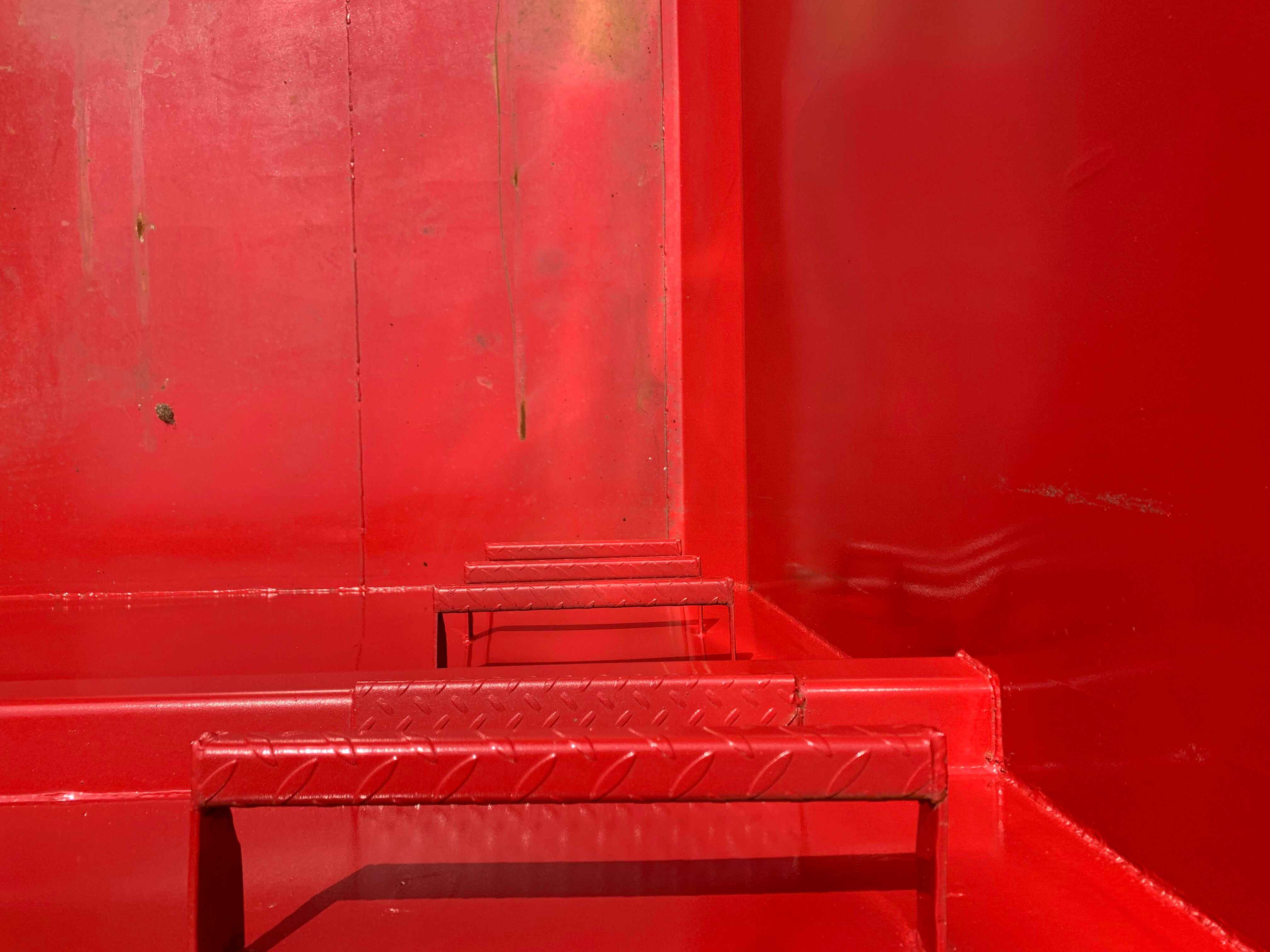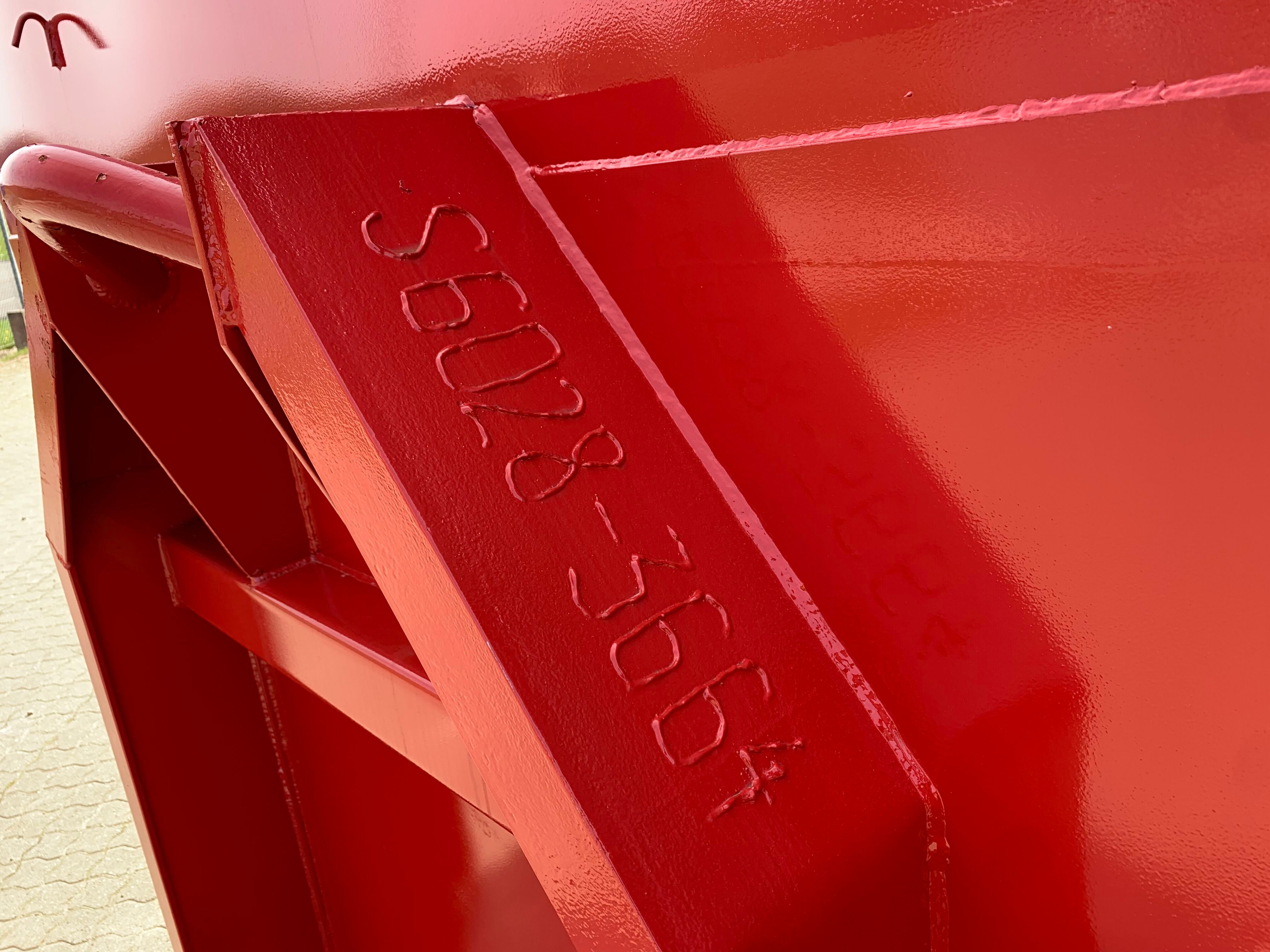 H:2000 mm x B:2350 mm x L: 6000 mm - udv. længde: 6300 mm - rumindhold 28m3 - 5 mm. bund og 3 mm. sider - optræks tårn til krog og wire hejs - Sidehængt bagdøre - Lakeret i RAL 3001 signalrød (Farve kan ændres frem til 2 uger før levering) - 750 mm. i vange afstand - kraftig surrings stang lang yderside - fodtrin på forsmæk ind- og udvendig.