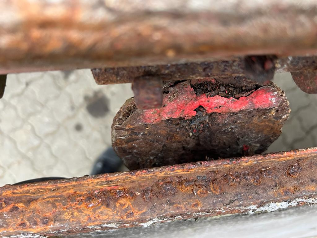 Har overfladerust på vanger, men ej gennemtæret.