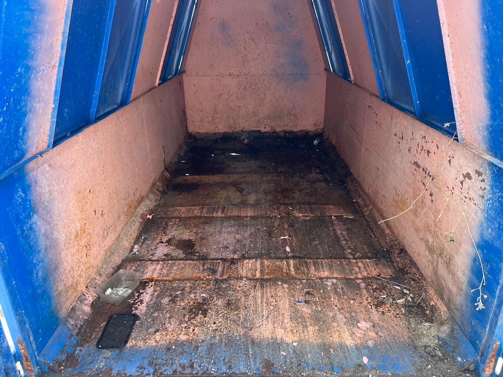 Ladbund er rimelig god stabil stand har lidt rust i den forrest 1/3 del men kan nemt bruges som den er eller man vælger at svejse / skrue en plade i