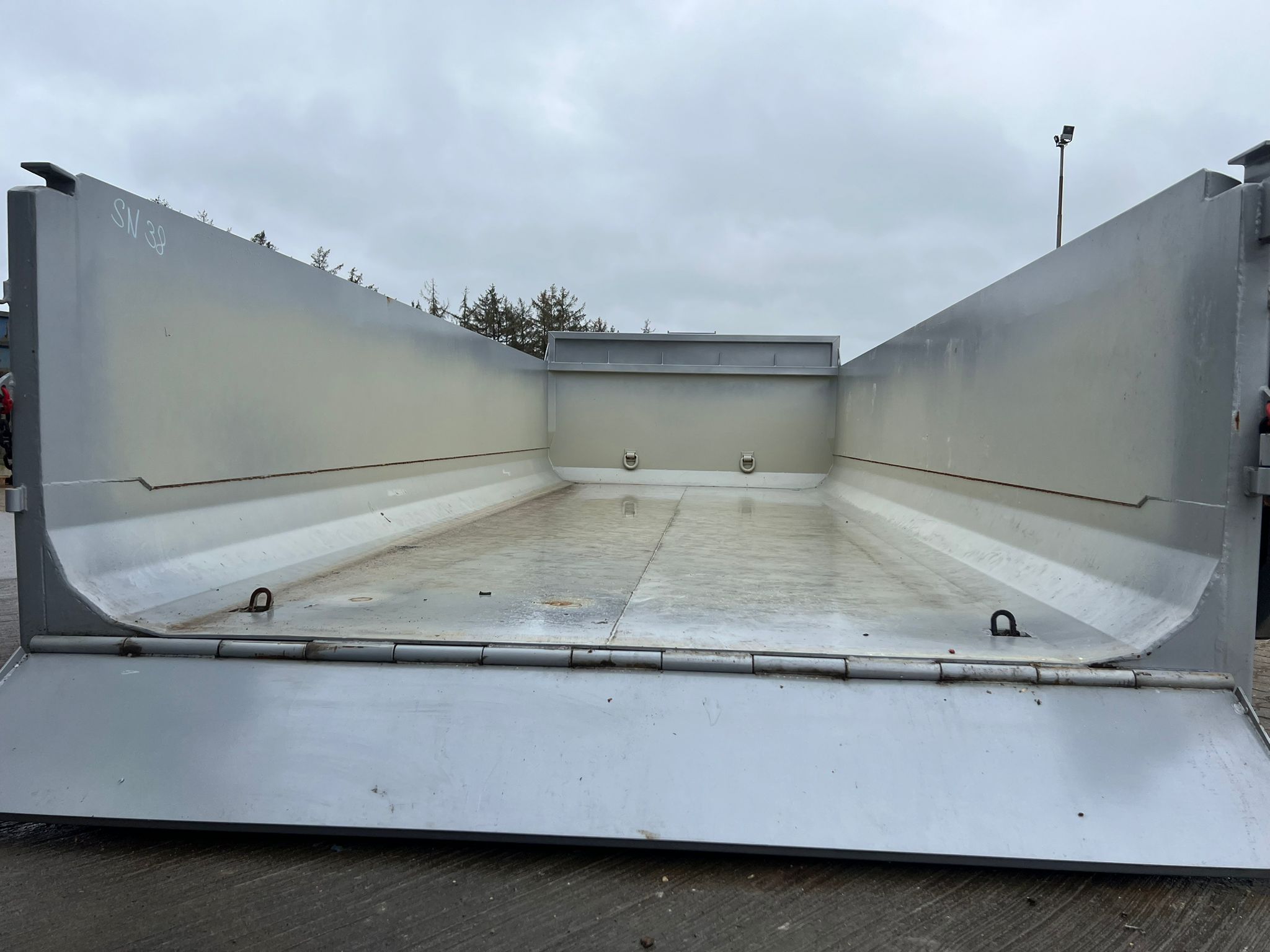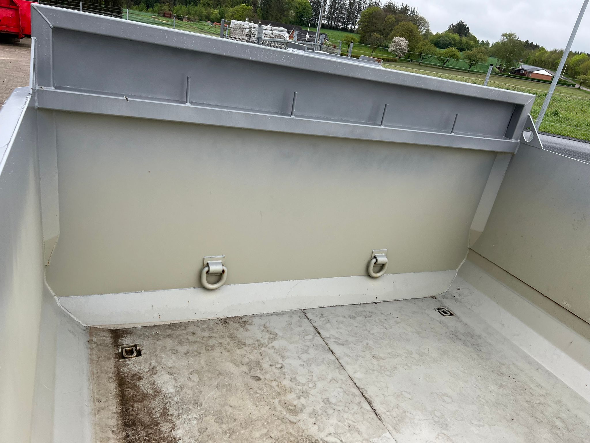 Opbygget med følgende indv. mål: L 6000 mm (5900 mm ex. tophængt bagsmæk) X B 2370 mm X H 1000 mm - udvendig længde: 6400 mm - rumindhold 14 m3