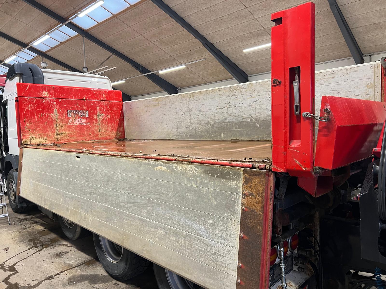 Indvendige mål: L 6100 x H 1000 x B 2420 mm - udvendig totallængde 6350 mm - 1300 mm forsmæk Rumindhold 14,7 m3 - egenvægt egen vægt ca. 2500 kg