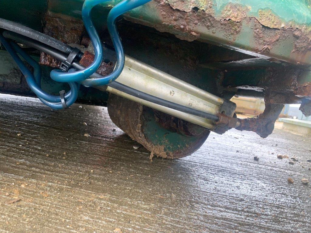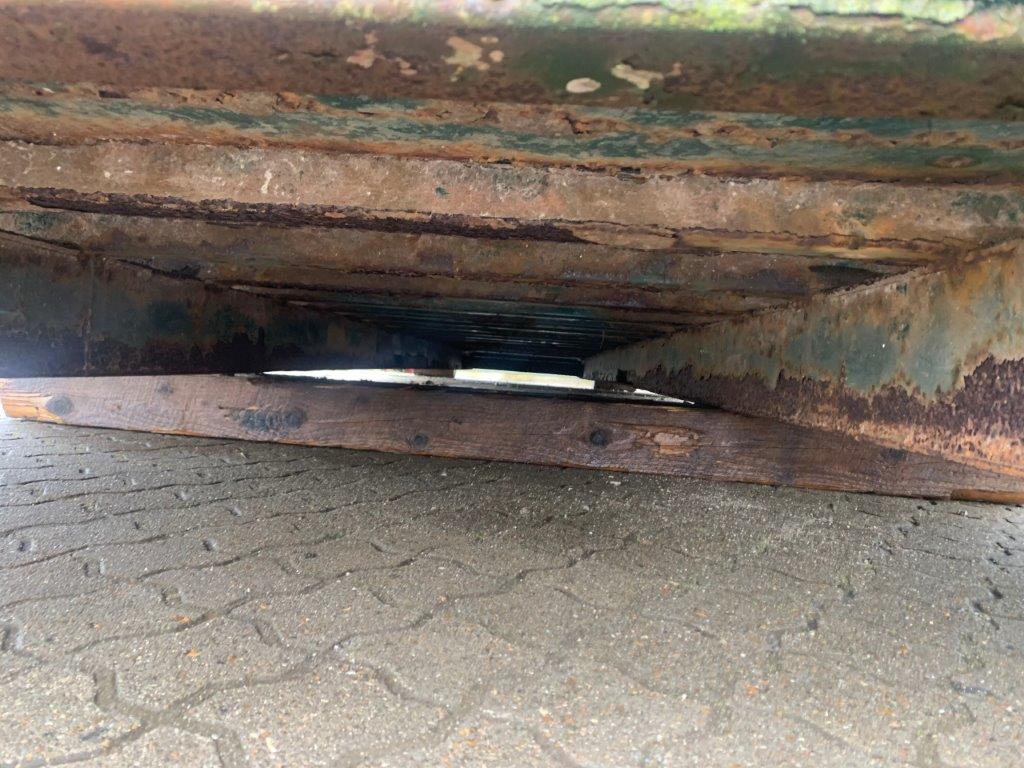 Optræk til wirehejs - Tophængt bagsmæk med lukkefunktion i bunden som kører via luftcylinder (ikke testet) - Sideruller - Bund er god og jævn - Rullepresenning - Stopmål: Ca. 6100mm