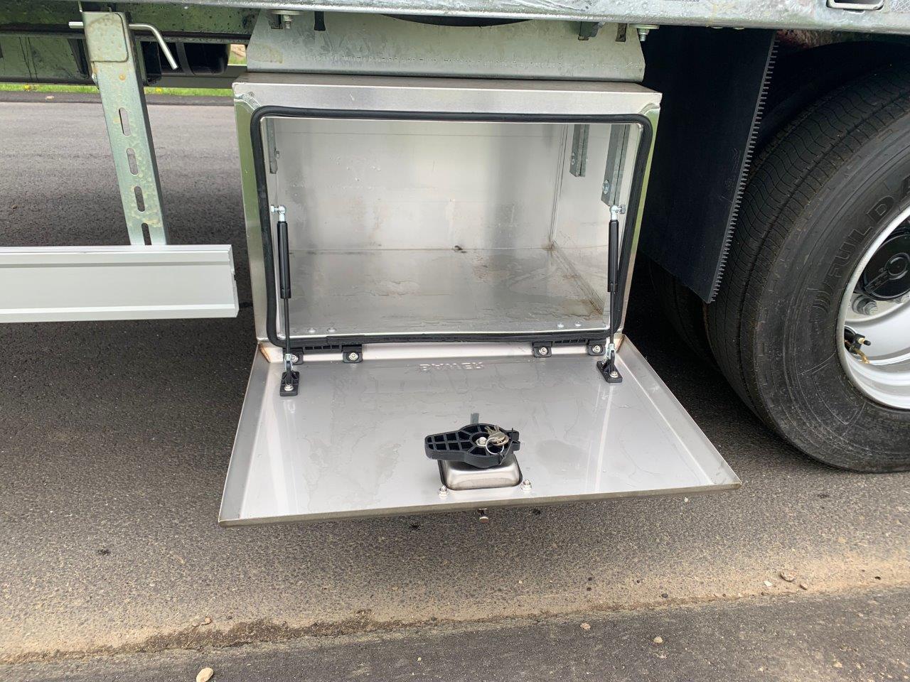70 mm træplanker i bund, samt riflet stål over hjulkasserne