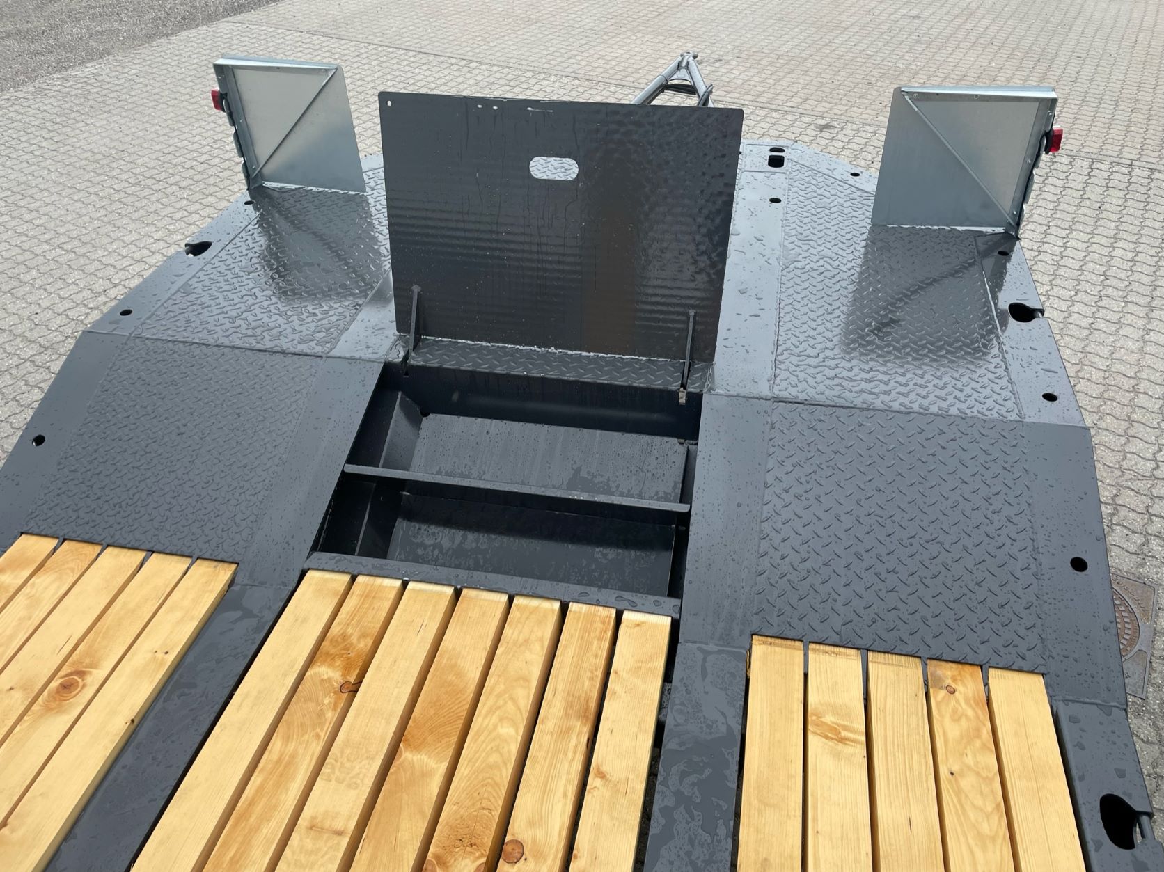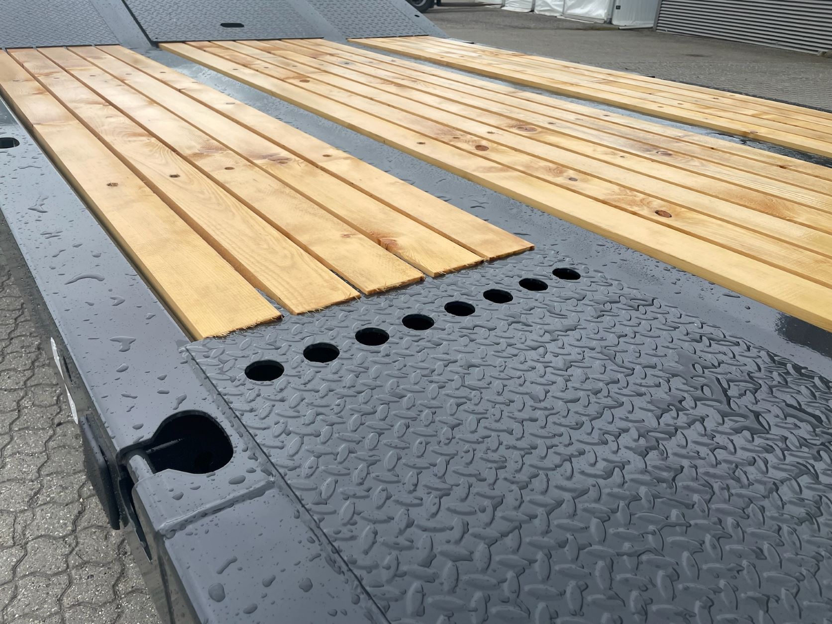 - 2 x galvaniseret mekaniske ramper 2.800 x 750 mm - manuel side forskydning - beklædt med 70 mm træplanker
