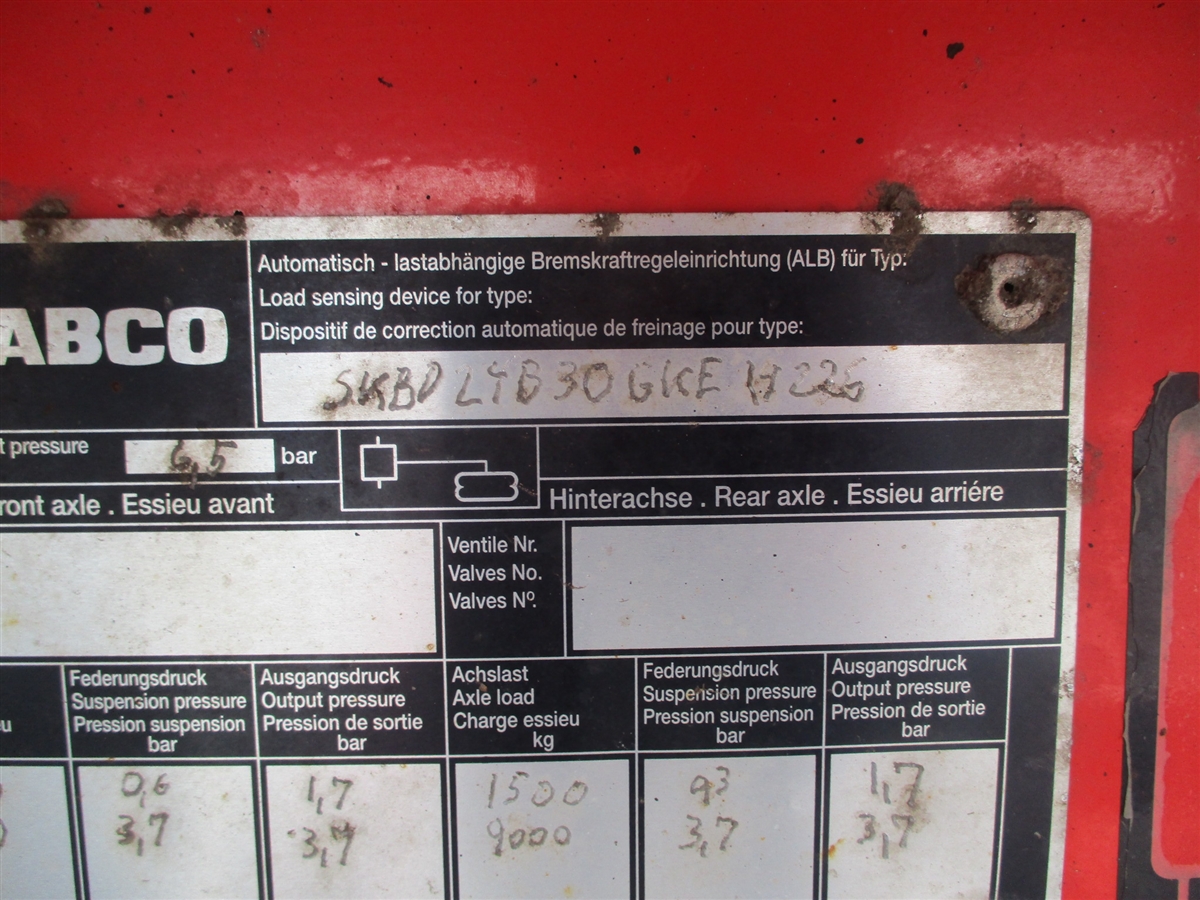 BPW aksler - luftaffjedring med hæve/sænke ventiler - aksel løft på 2. aksel - tromlebremser- 265/70R19,5 med god dækstand
