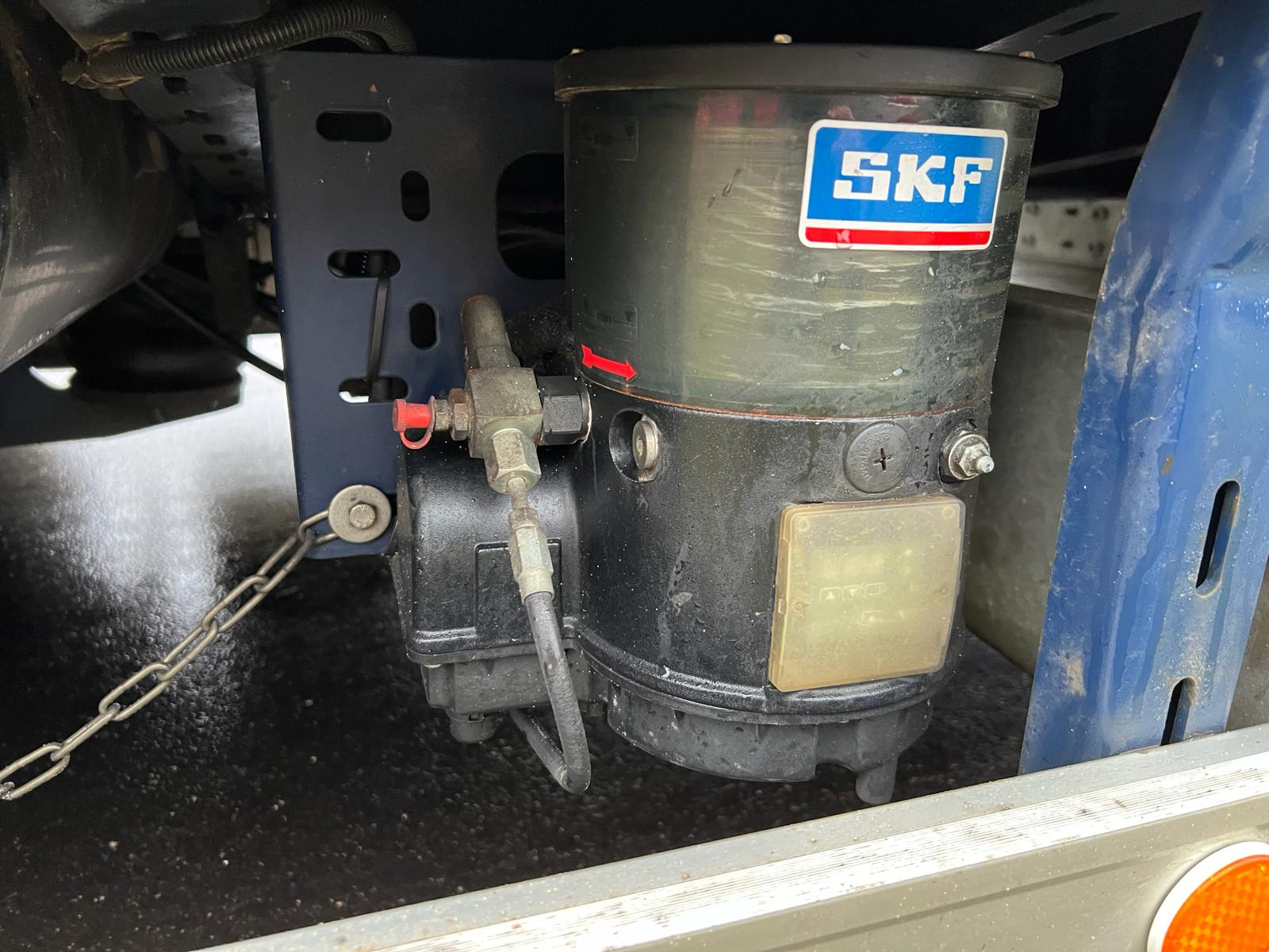 galvaniseres strøbakke kasse under chassis rammen + værktøjskasse imellem 1. og 2. aksel i venstre side