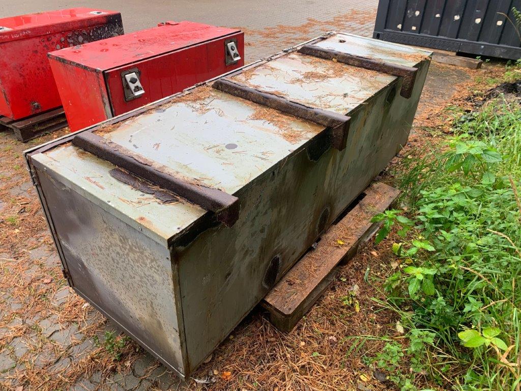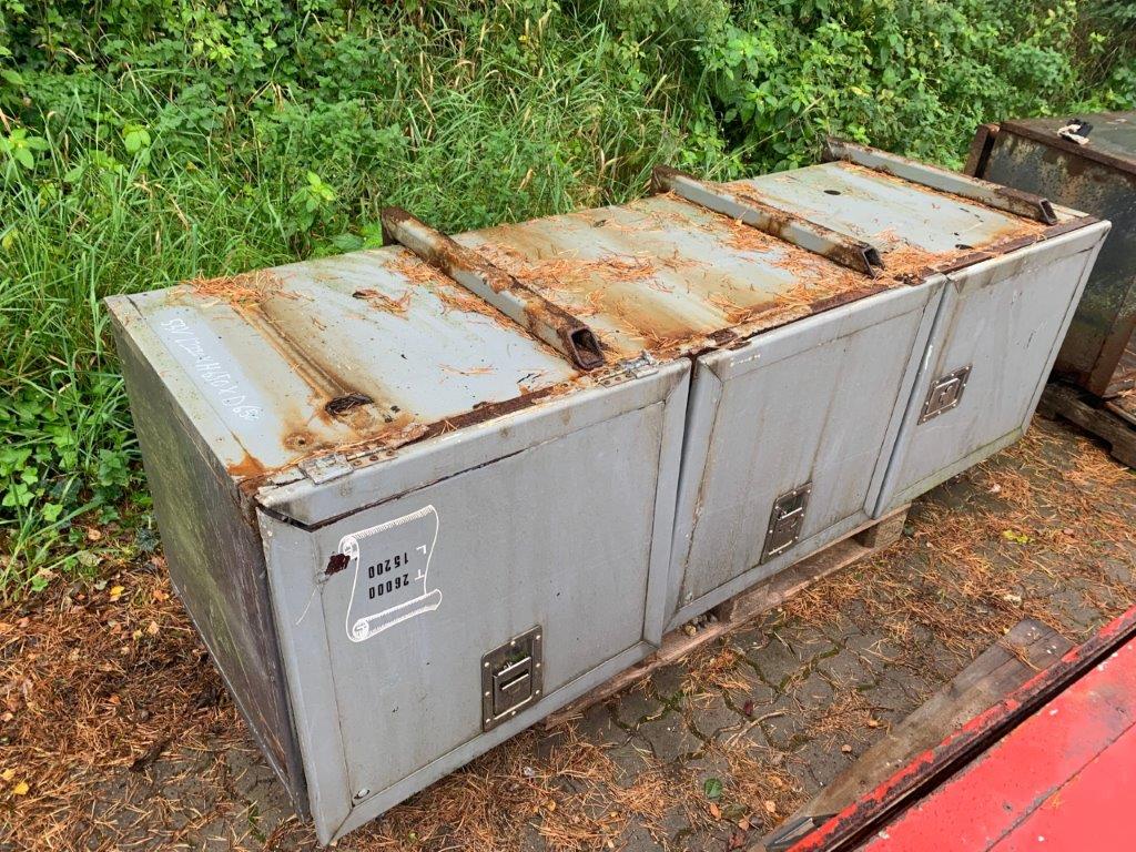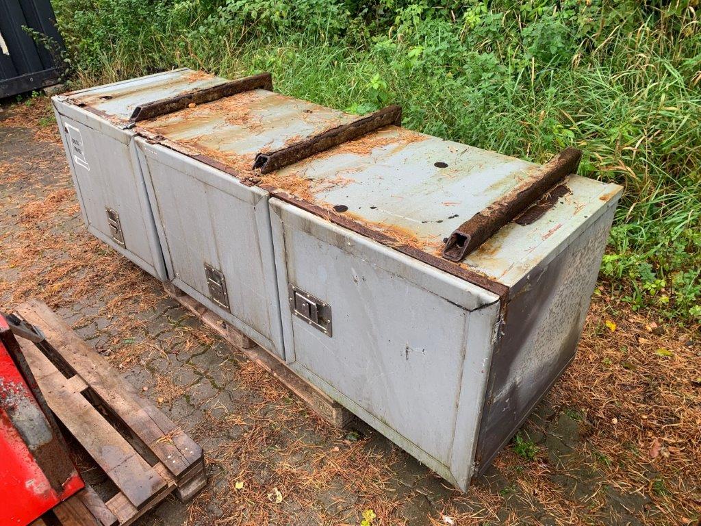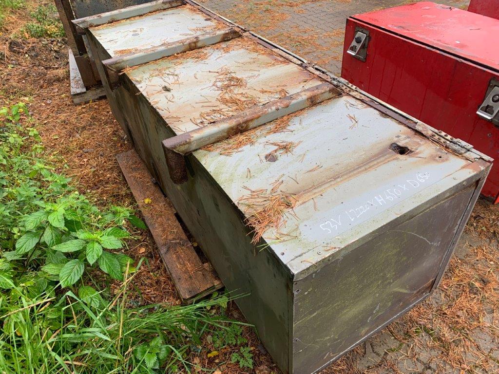 Opbygget med følgende udv. mål (Ex. Ophæng): Længde 2220 mm x Højde 650mm x Dybde 650 mm (Målt inde i kassen) bundhængt værktøjskasse med 3 låger.