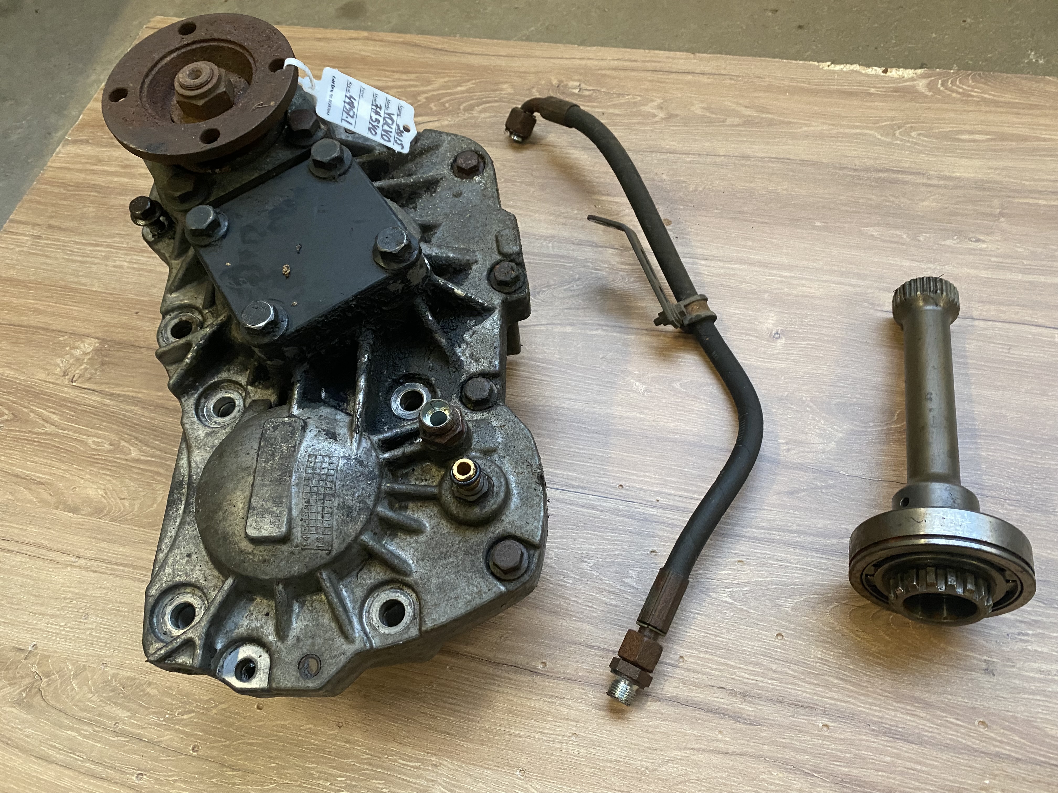 Afmonteret brugt Volvo Dobbelt gearkasse kraftudtag model PTRD-F - max moment 870 Nm - kontinuerlig drif 75 kW med oliekøler = 120 kW vægt 22,5 kg - afmonteret i 2018 fra Volvo FH540 årg 2015 SPO2812 I-shift gearkasse