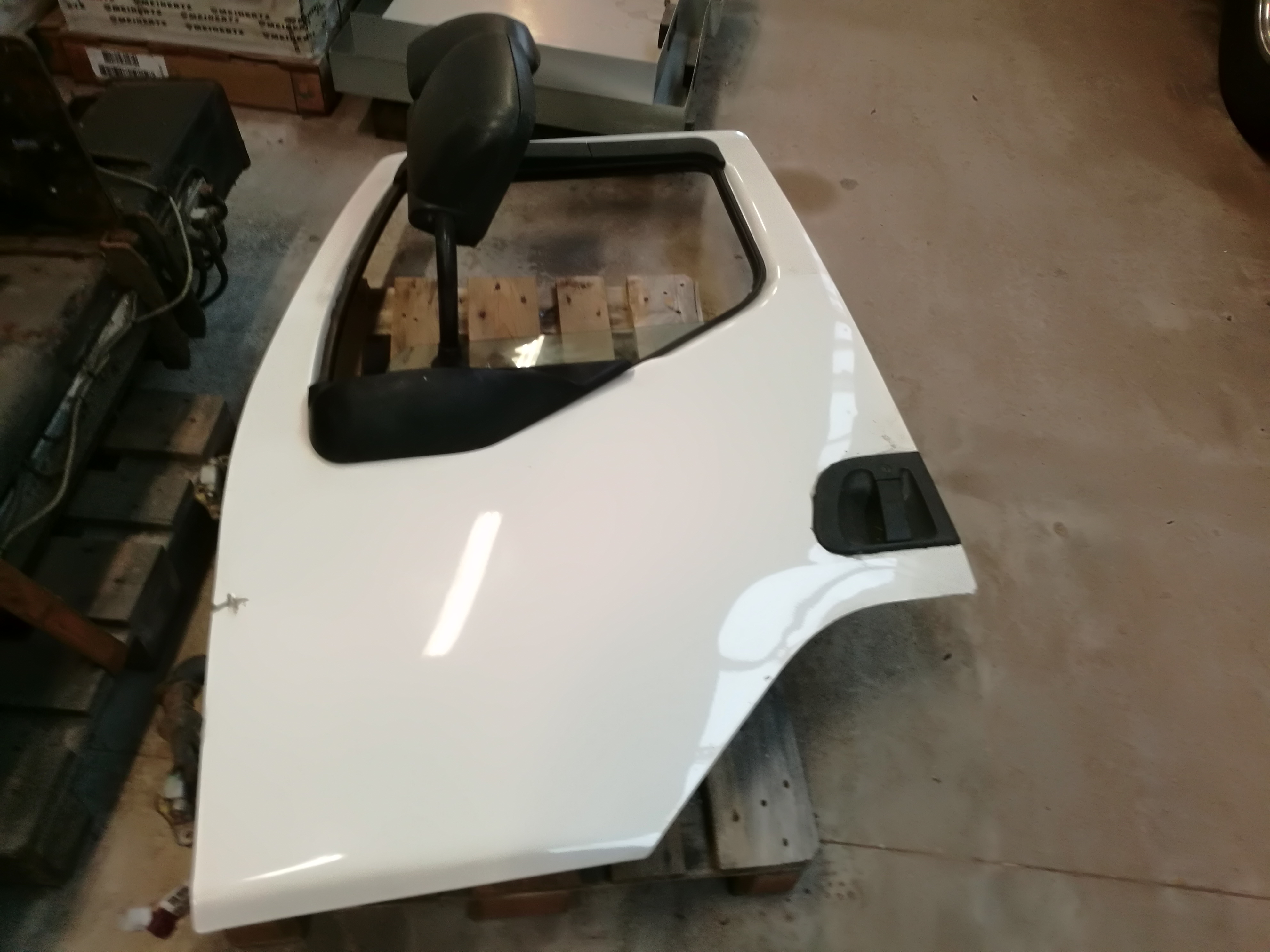 Komplet afmonteret venstre dør fra Volvo FE280 YV2VBL0A47B466481, med spejl og hvor alt indmad er indtakt.
