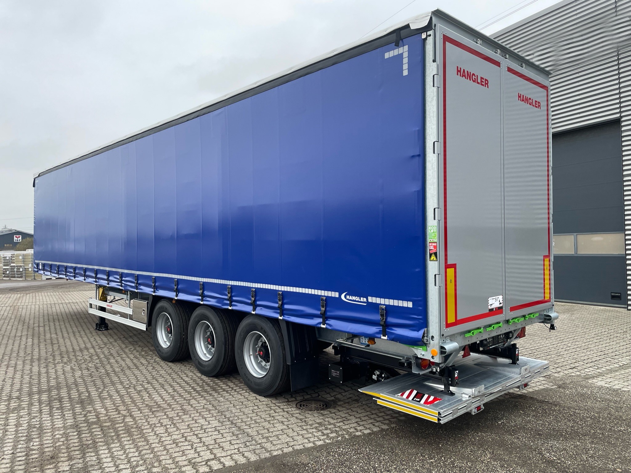 Sidehængte bagdøre - Gardinsider som er XL godkendt (EN 12642 Code XL) - Ecolift hævetag ca. 380 mm - Skydetag (Åbnes bagfra og skydes frem) - Finer træ bund - Galvaniseret kæpstokke - Kæpstokkehuller langs siderne + midten.