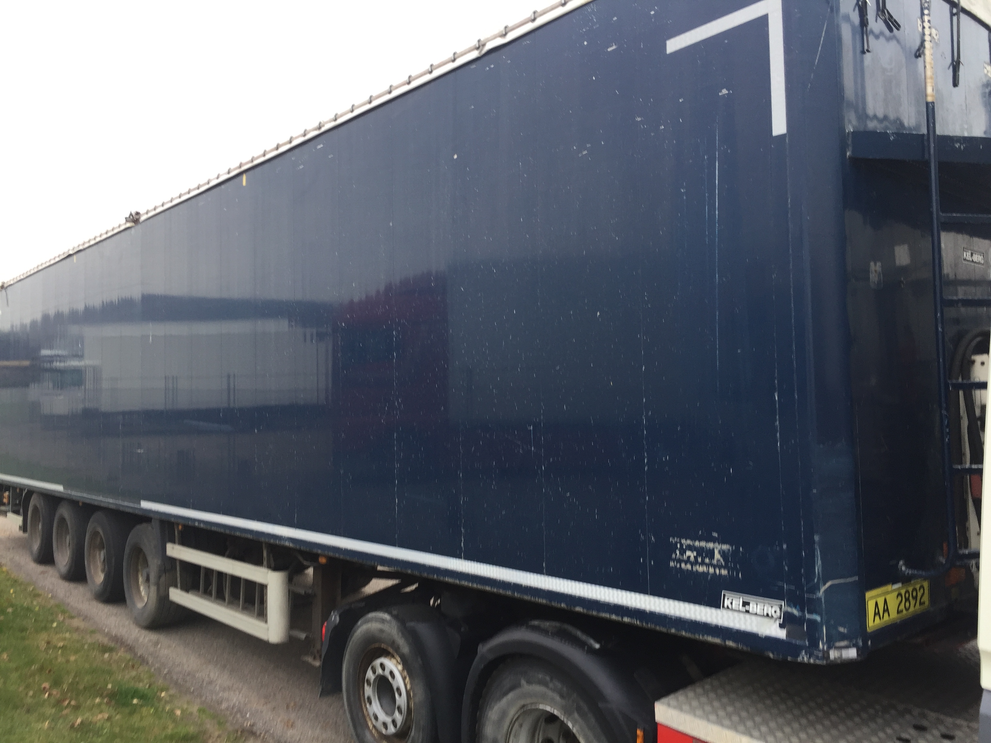 indv. mål 13,3 mtr x B 2460 x H 2800 mm (lysmål i bag 2700 mm) - cargo floor alu gulv - bagdøre - inspektions lem i forvæg - rulle presenning - BPW tromle bremser - luftaffjedring - aksel løft 1 . aksel - 385/55R22,5 dækmontering - eftermonteret med Dhollandia 2000kg folde /slæde lift - engros/afhentnings pris kan leveres med klargøring for merpris