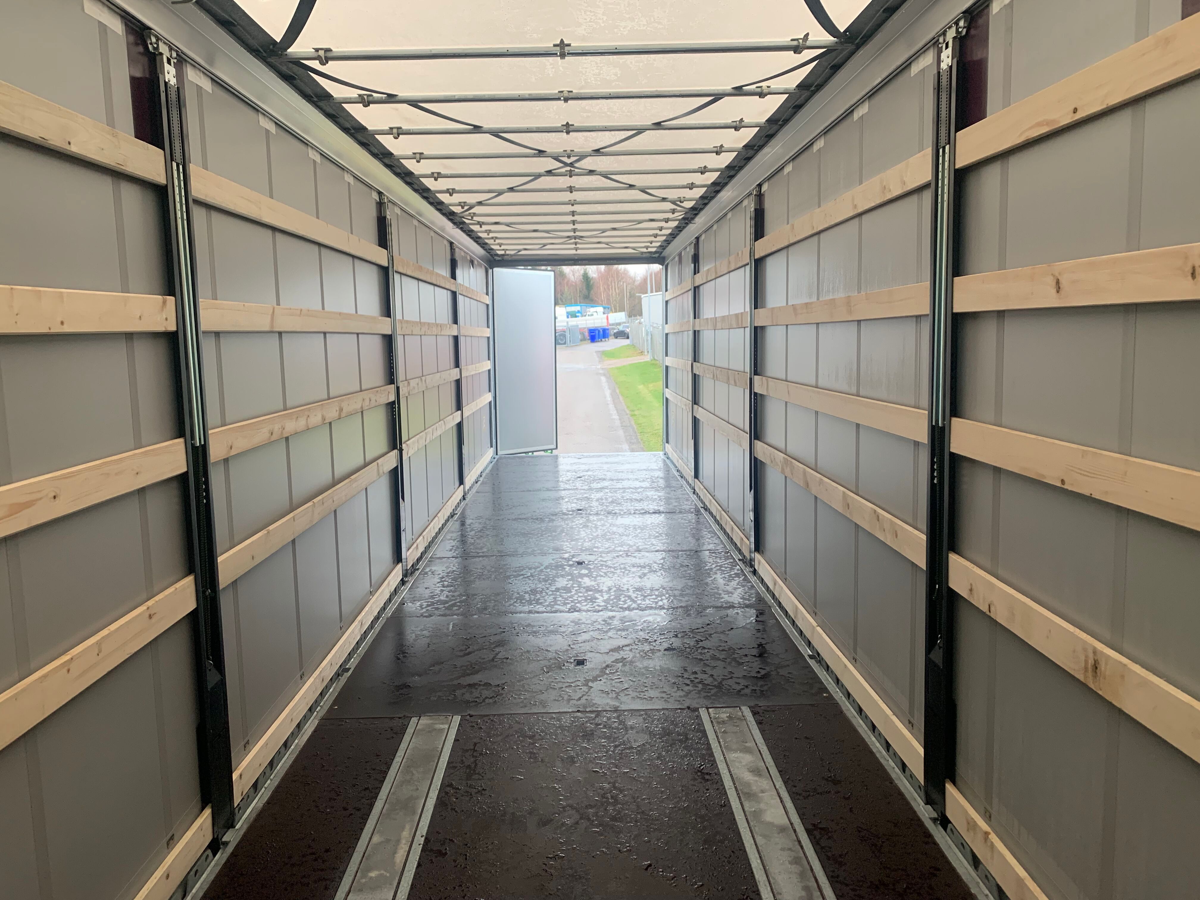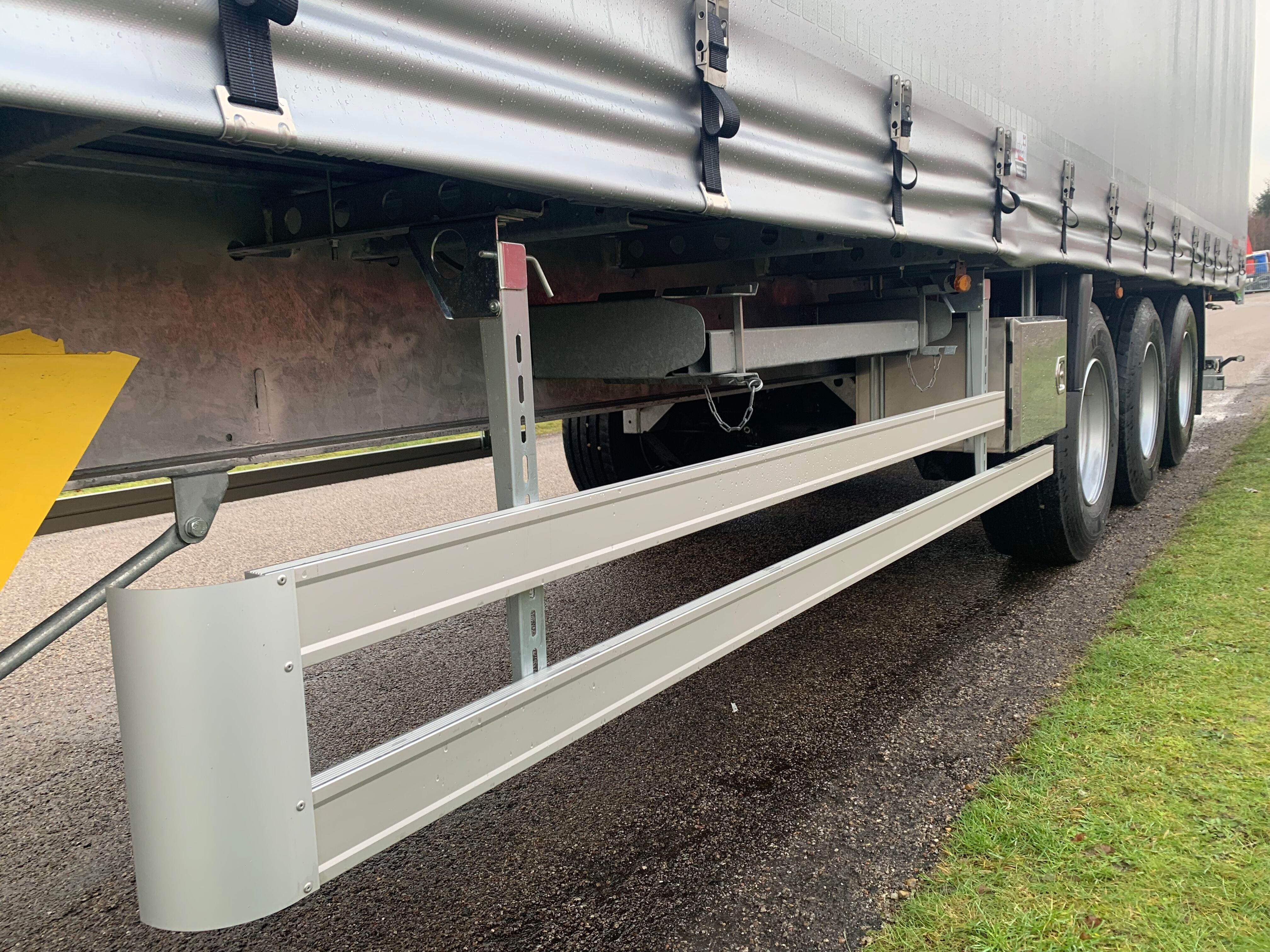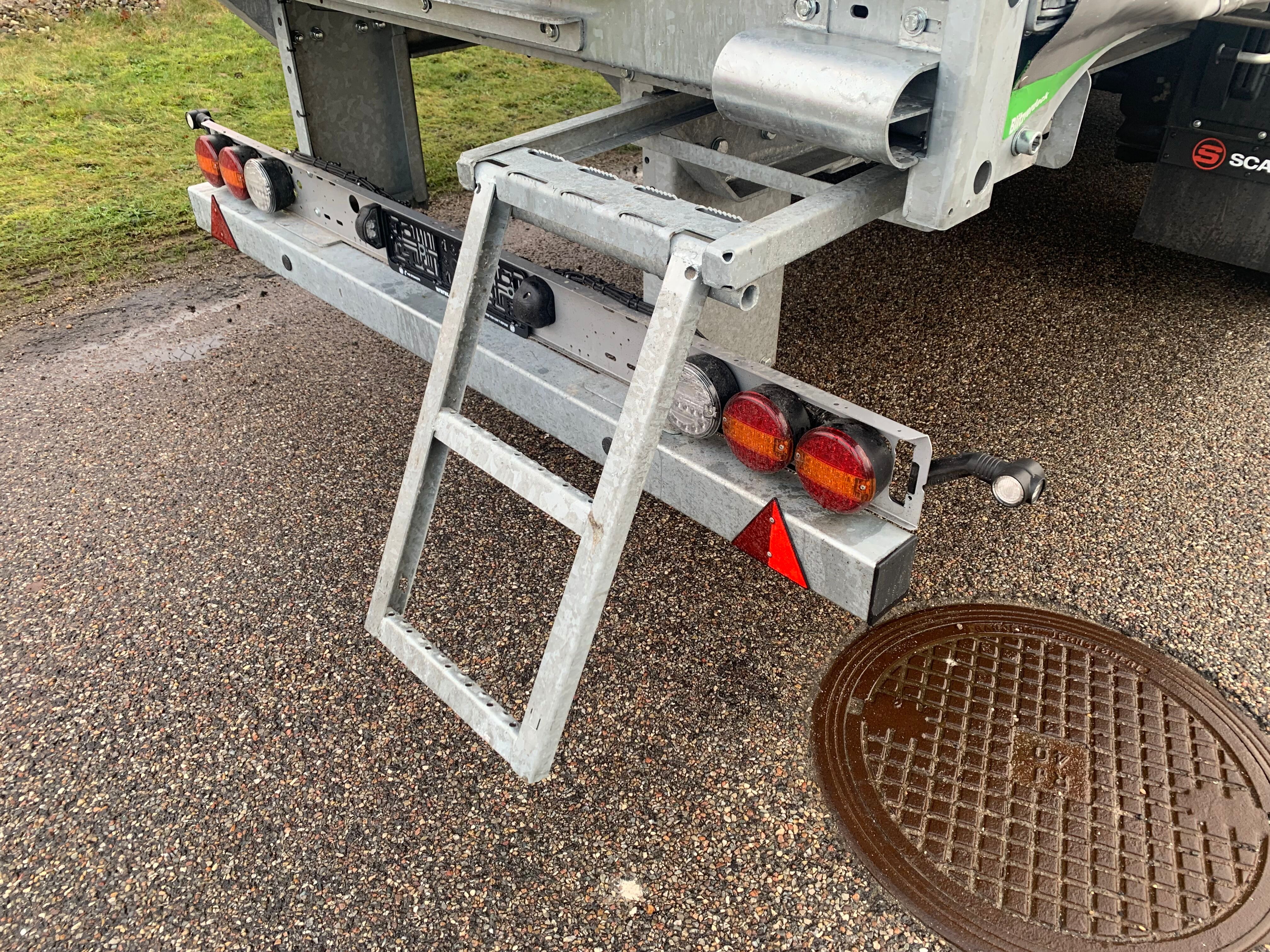 18.000 kg kingpin og lang svanehals som giver mere frigang til bagskærme på trækkeren - XL-godkendelse EN12642XL med RAL 9006 sølv gardiner - 3 skydestolper pr. side med 5 planker imellem hver - kæpstokke huller i midten samt i kantskinnerne - udtræksbar stige bagerst - Loadlock profil monteret i kantskinne med utalligere surrings huller langs hele kantskinnen inkl. truckværn - skydetag - truckværn ved bunden af forvæggen som beskytter mod pallegafler - SAF aksler med tromlebremser - rustfri værktøjskasse - 4 stk færgekroge under chassis - LED bag lygter + baklygter og slinger lygter - galvaniseret chassis ramme - og meget mere. Leveres med sølv metallic lakeret bagdøre - RAL 9006 sølv gardin sider