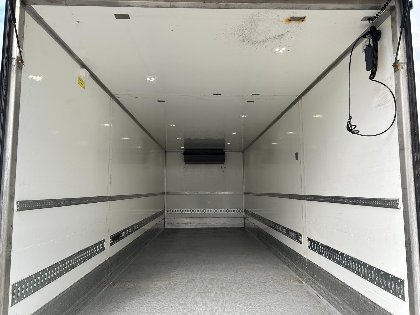 Igloocar kvalitets glasfiber kølekasse indvendige ladmål : Længde 7870 x Bredde 2460 -*/2430 x Højde 2340 mm - fordampren til kølemaskinen stikker 610 mm ind i kassen og der er en frihøjde på 1970 mm under fordamperen - indfældet binderække + */ekstra alu skinne som reducerer bredde 2430 mm
