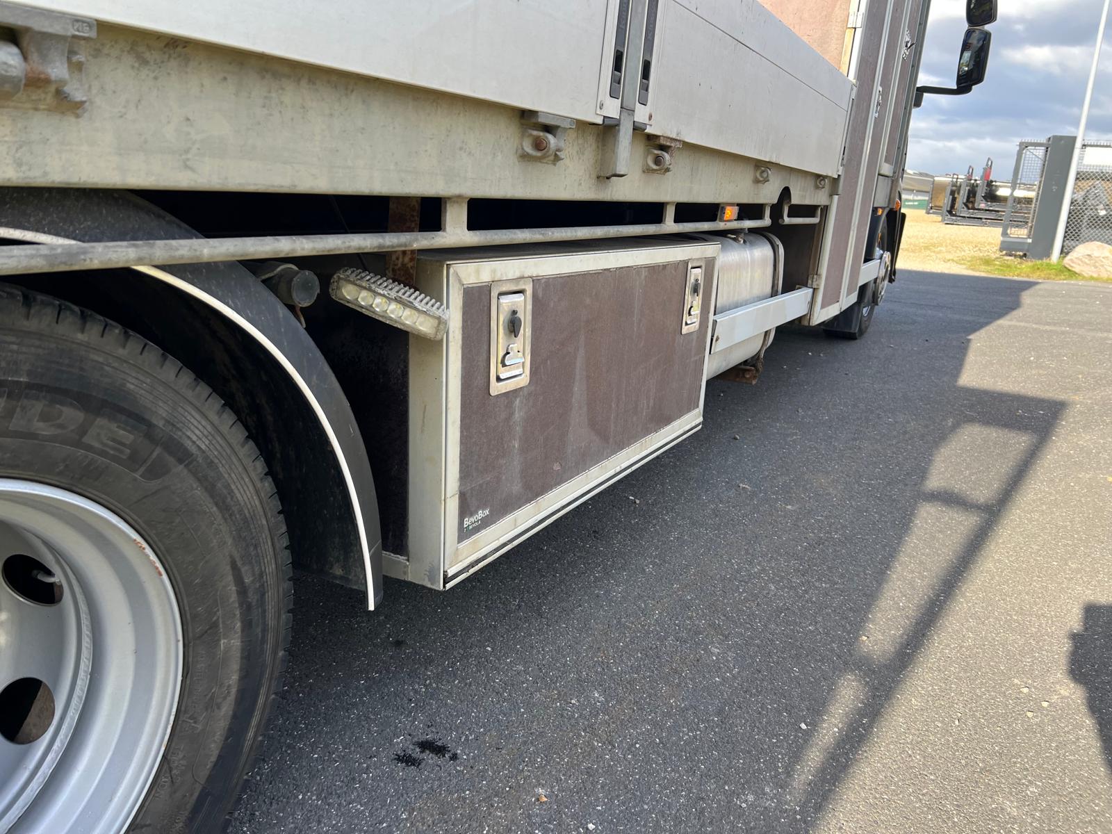 Værktøjskasser i begge sider forrest i laddet - 3 delte låger med forskellig indretning mål:  L 1500 mm x H 1200 mm x D 680 mm