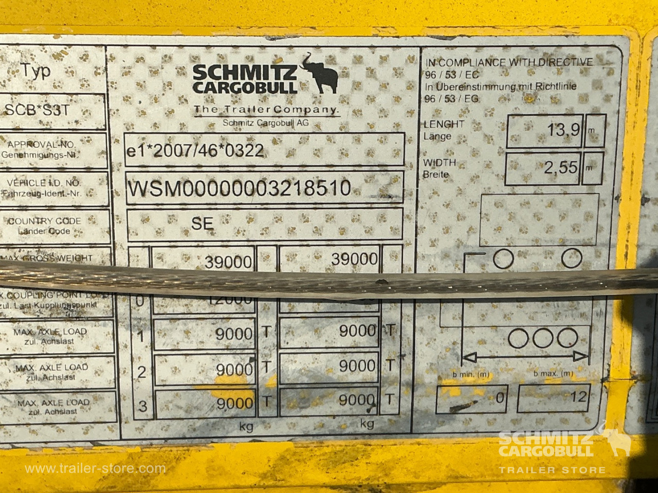 1. Achse: 455/40 R22.5, Profildybde: 10 mm / 13 mm, 2. Achse: 455/40 R22.5, Profildybde: 12 mm / 13 mm, 3. Achse: 455/40 R22.5, Profildybde: 13 mm / 13 mm