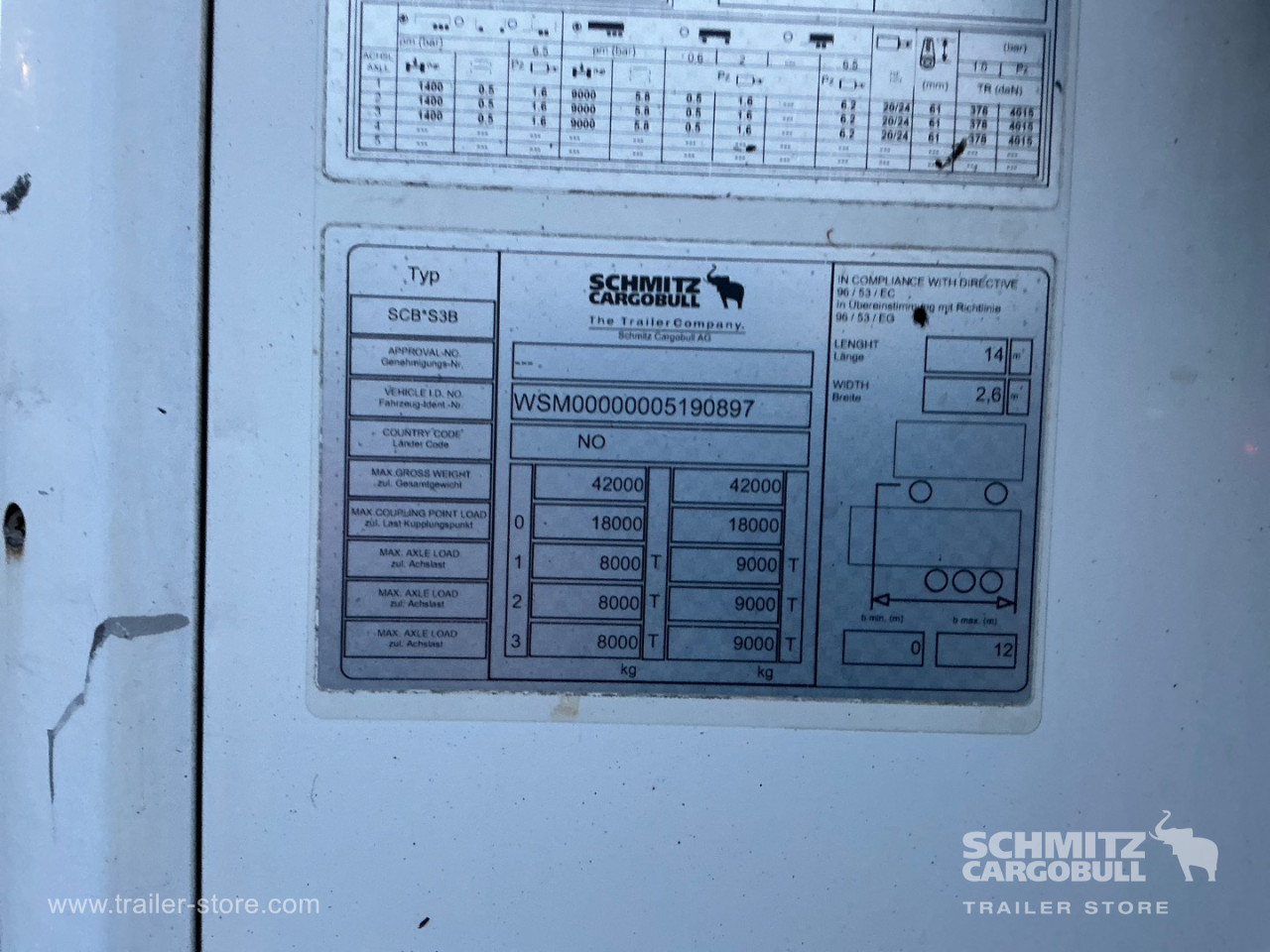 Længde 13.410 mm, Bredde 2.490 mm, Højde 2.700 mm, Volume 90 m³