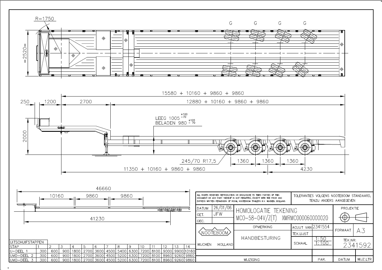 Total længde fuldt udtrukket 46.660 mm.