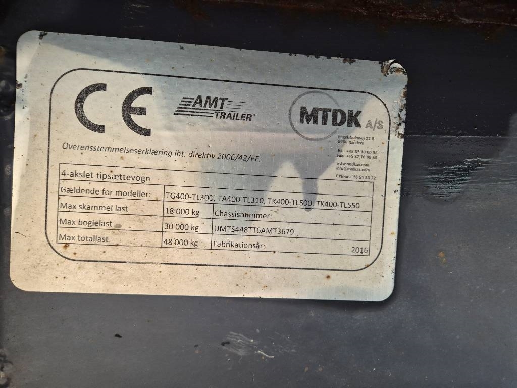 Mærke [Other]. Model MTDK TK400 4 akslet/axle tipper / 61m3. Årgang 2016.
